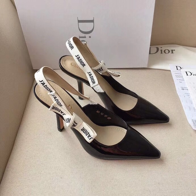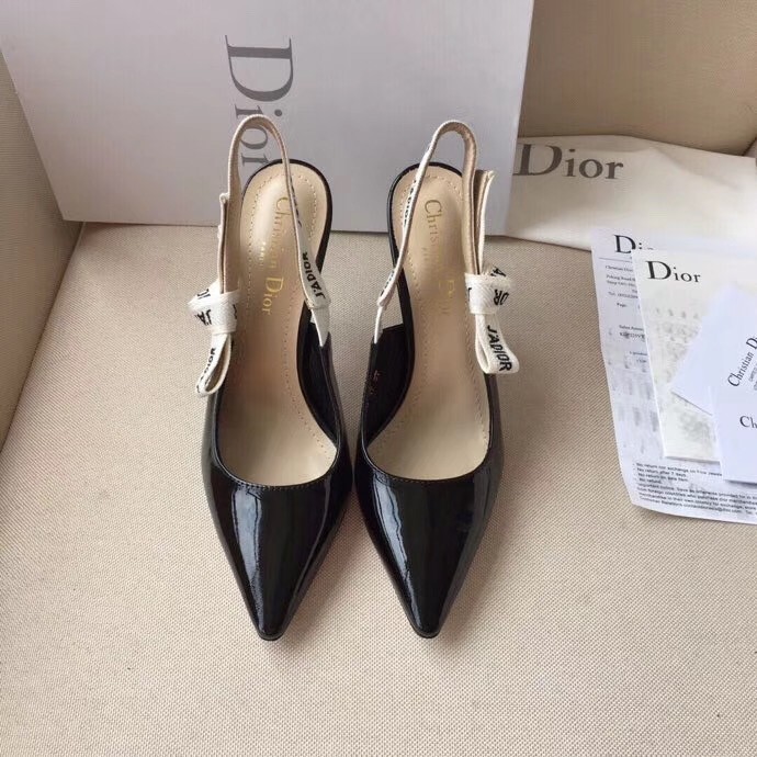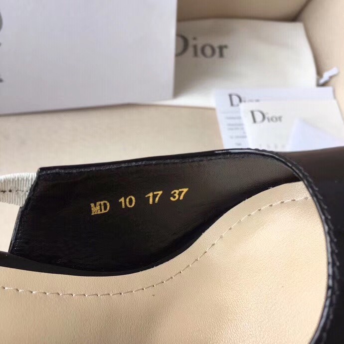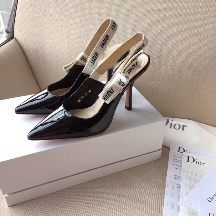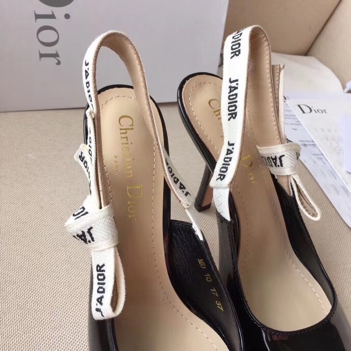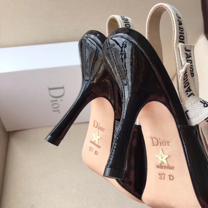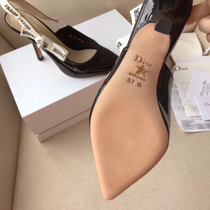 The J'Adior slingback pumps are now offered in a retro black patent version. The Parisian fashion house's savoir-faire is easily recognizable thanks to the model's iconic comma heel and Dior-embroidered ribbon that gracefully showcases your ankle. A discreet gold metal star decorates its exterior sole.