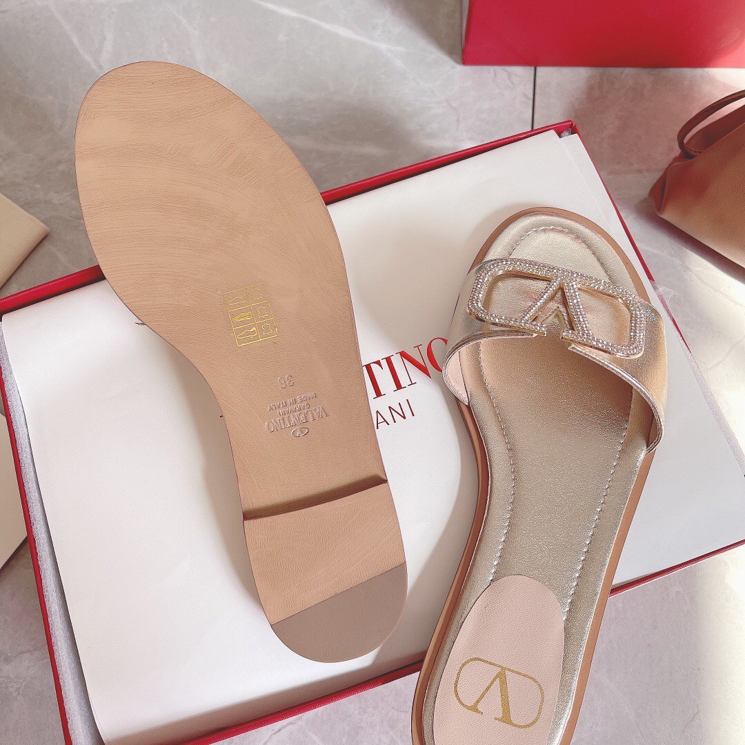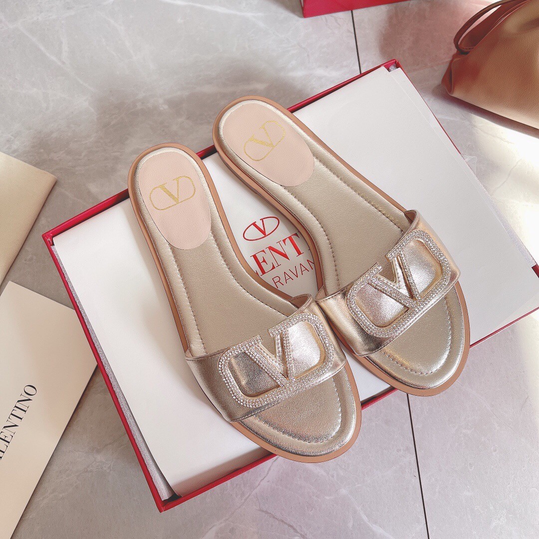 Valentino VLogo Glow Slides In Metallic Nappa Leather