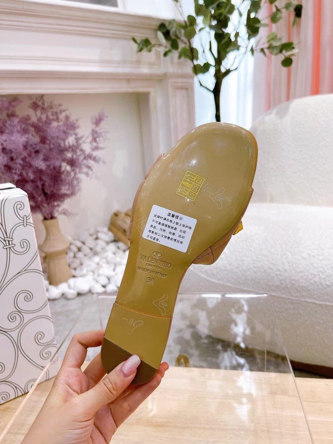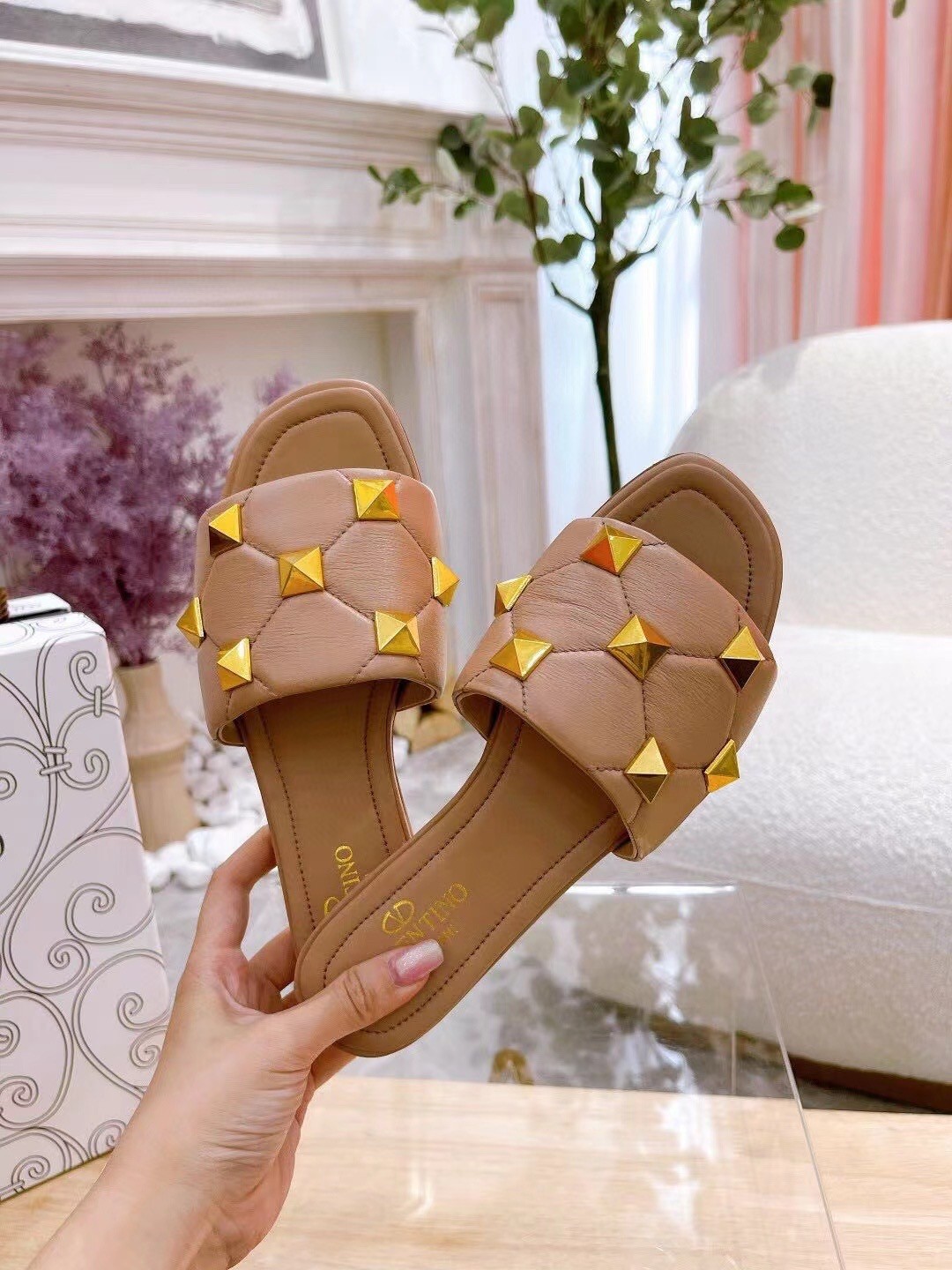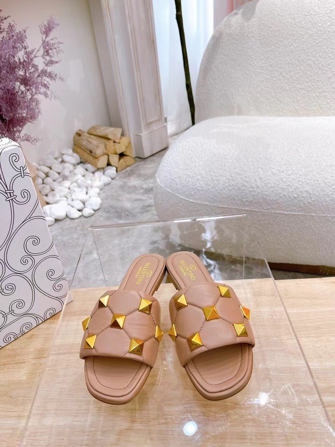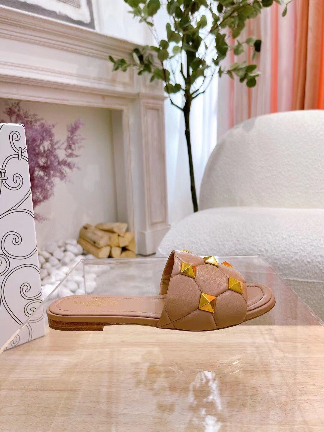 Valentino Roman Stud Flat Slides In Powder Quilted Nappa