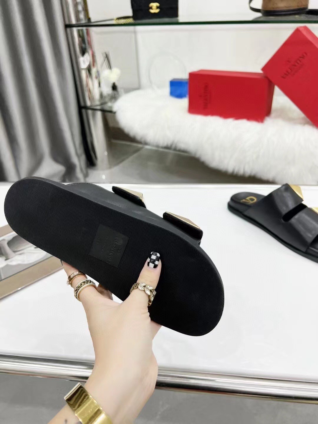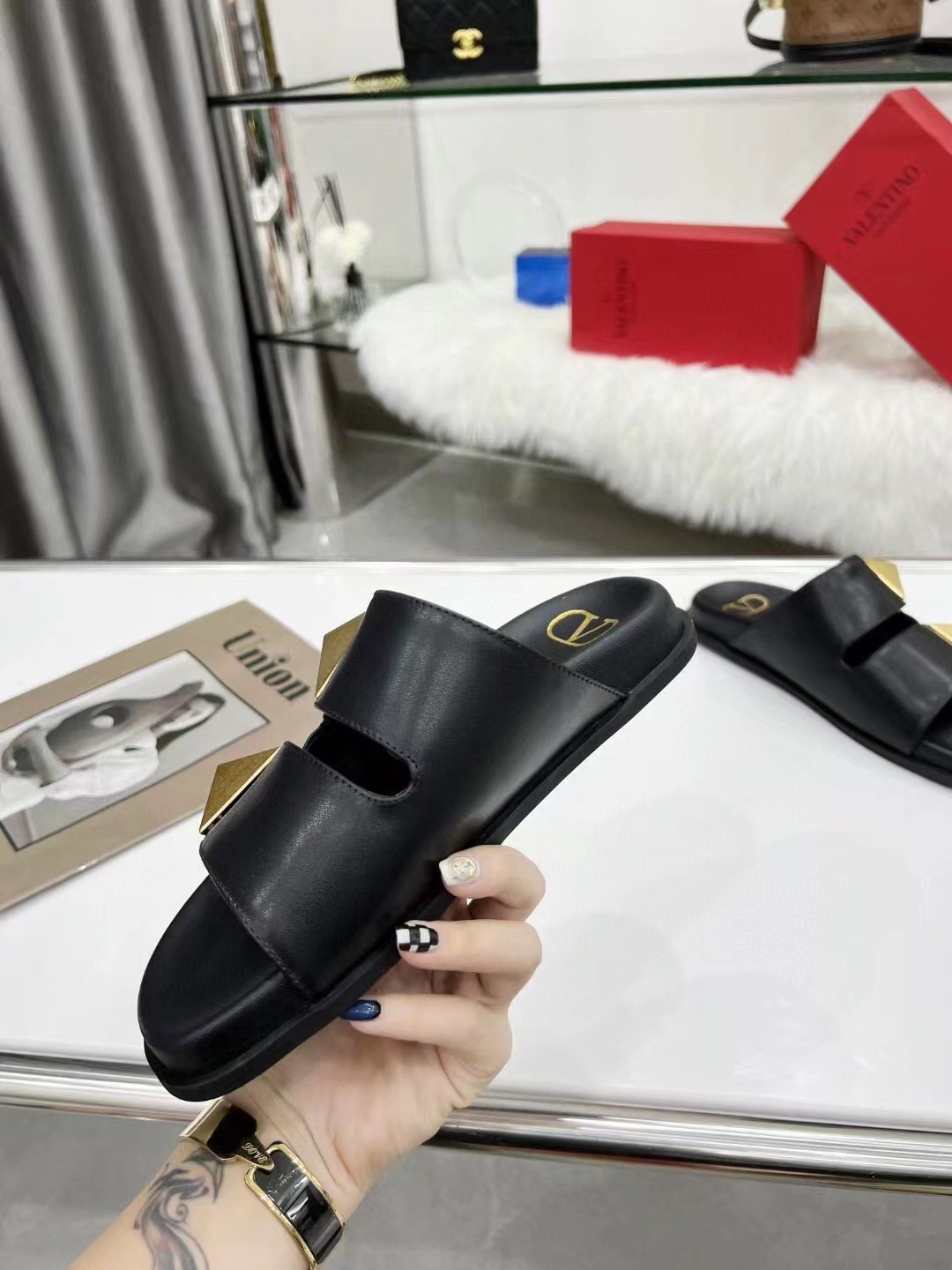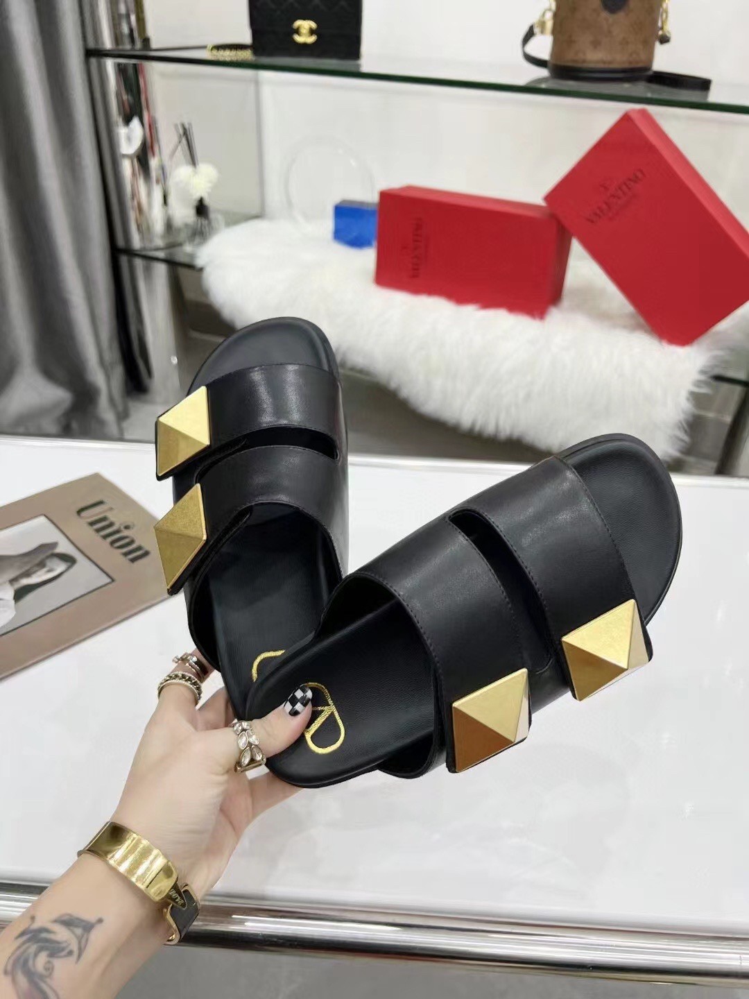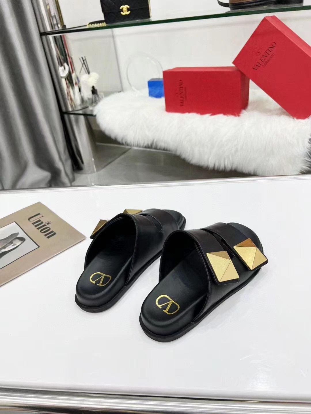 Valentino Garavani One Stud footbed slide sandal in calfskin with maxi stud embellishment. Anatomically-shaped, leather-lined interior footbed. This pair promises to be the perfect partner to your collection of spring/summer dresses.