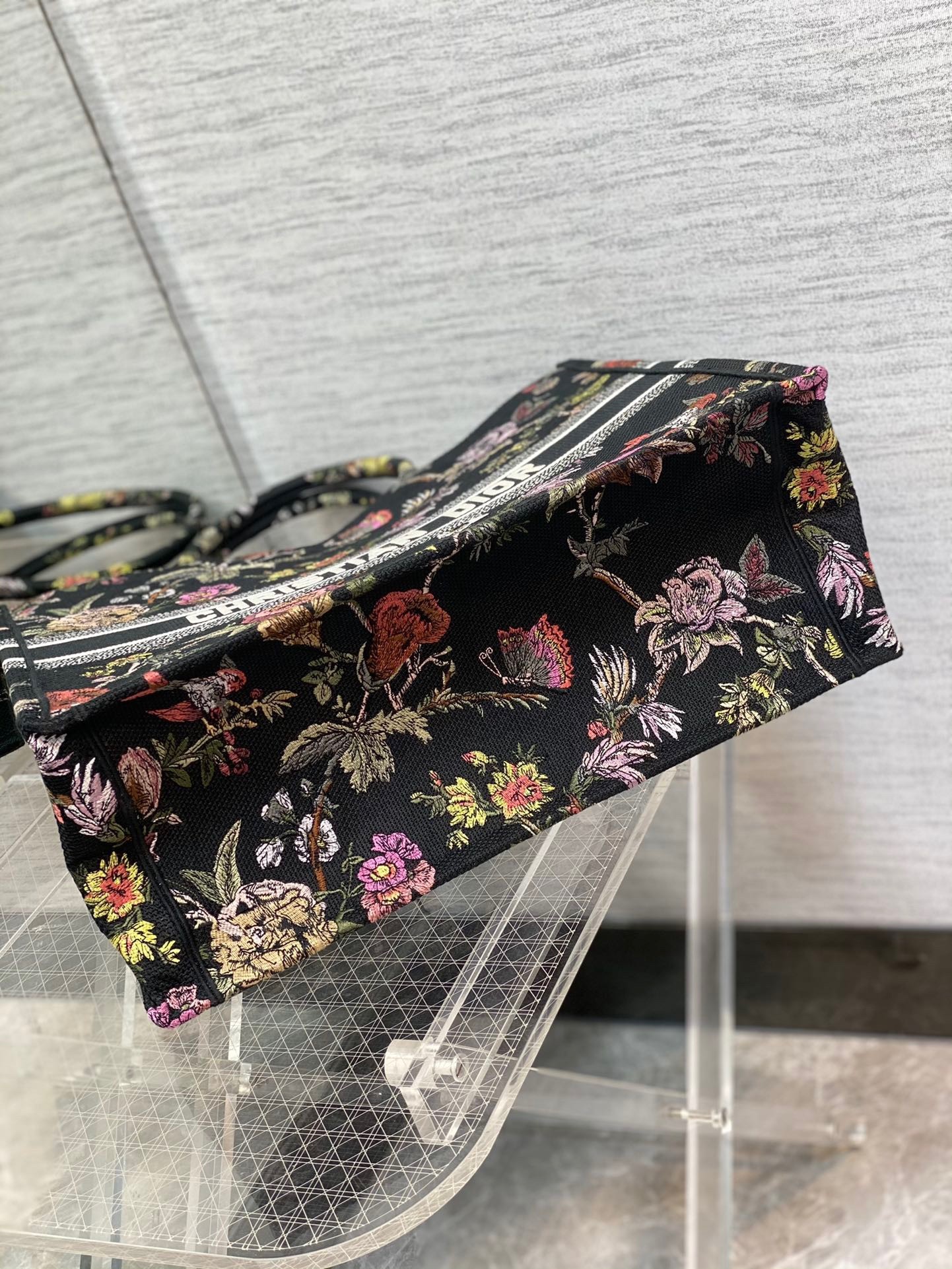 Dior Large Book Tote Bag In Black Multicolor Jardin Botanique Embroidery
