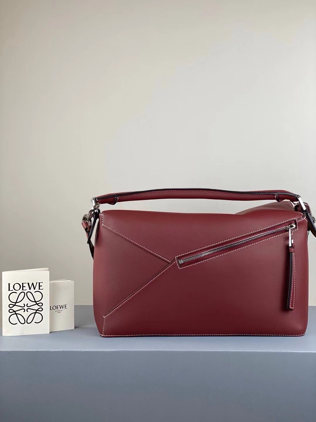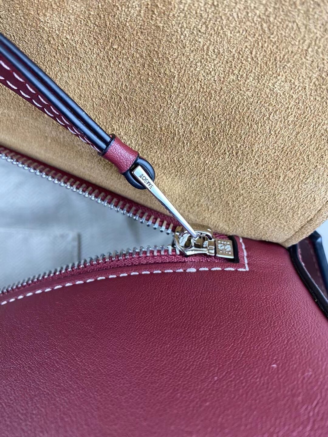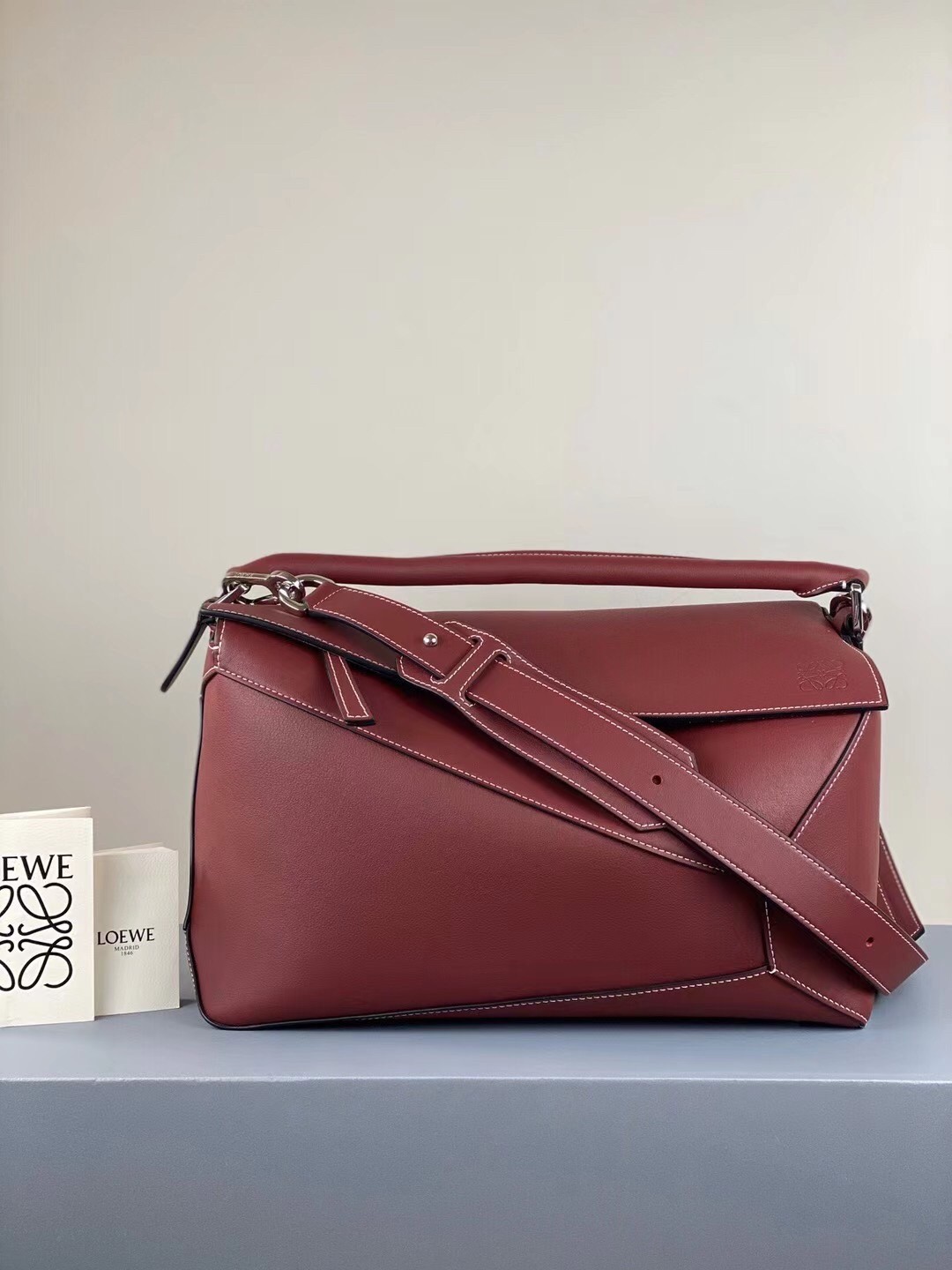 Loewe's large bag is made from smooth leather 'Puzzle' pieces in a 'Warm Desert' hue - the unique construction allows you to wear it in multiple ways, and you can even fold it up so it fits inside other bags. It's subtly debossed with the label's 'Anagram' logo and neatly finished with hand-painted black piping. Use the D-ring at the base to turn it into a backpack.
