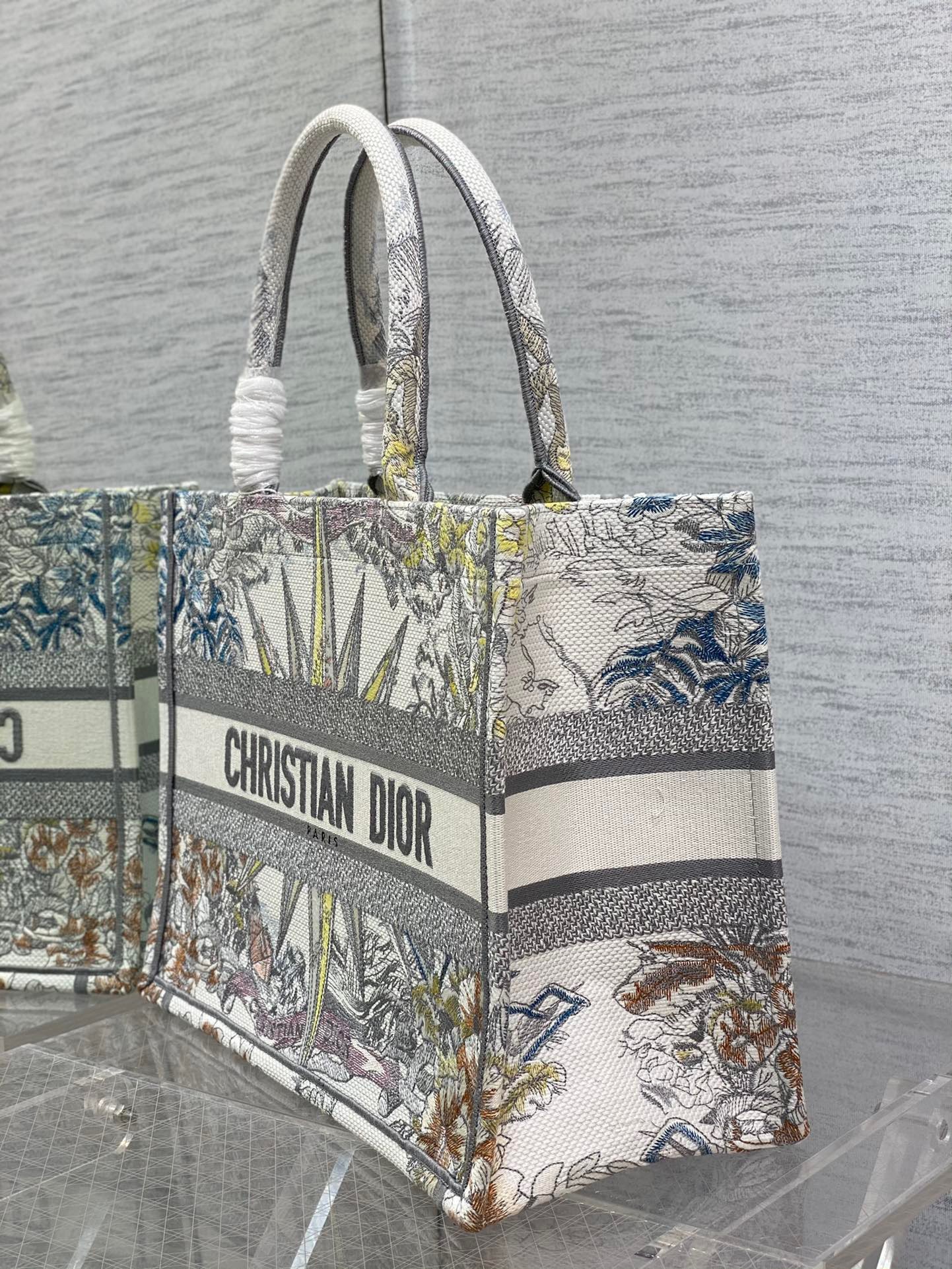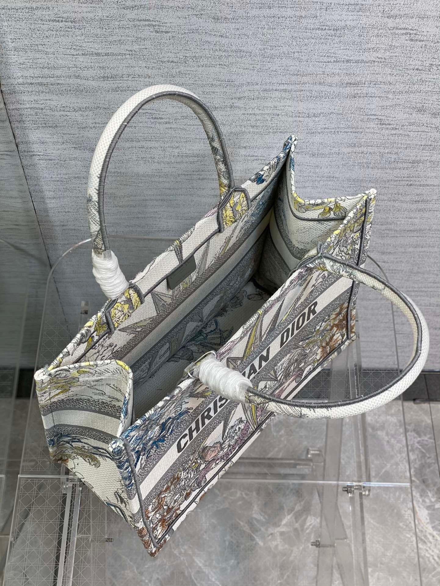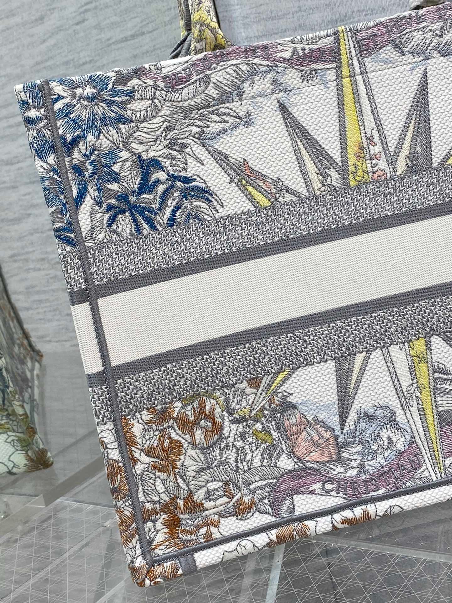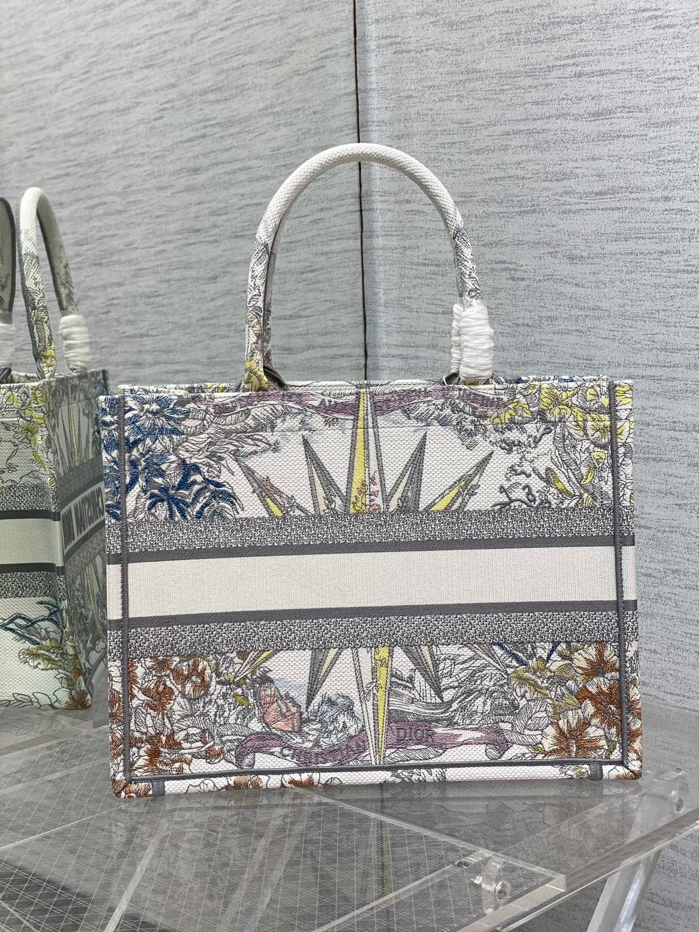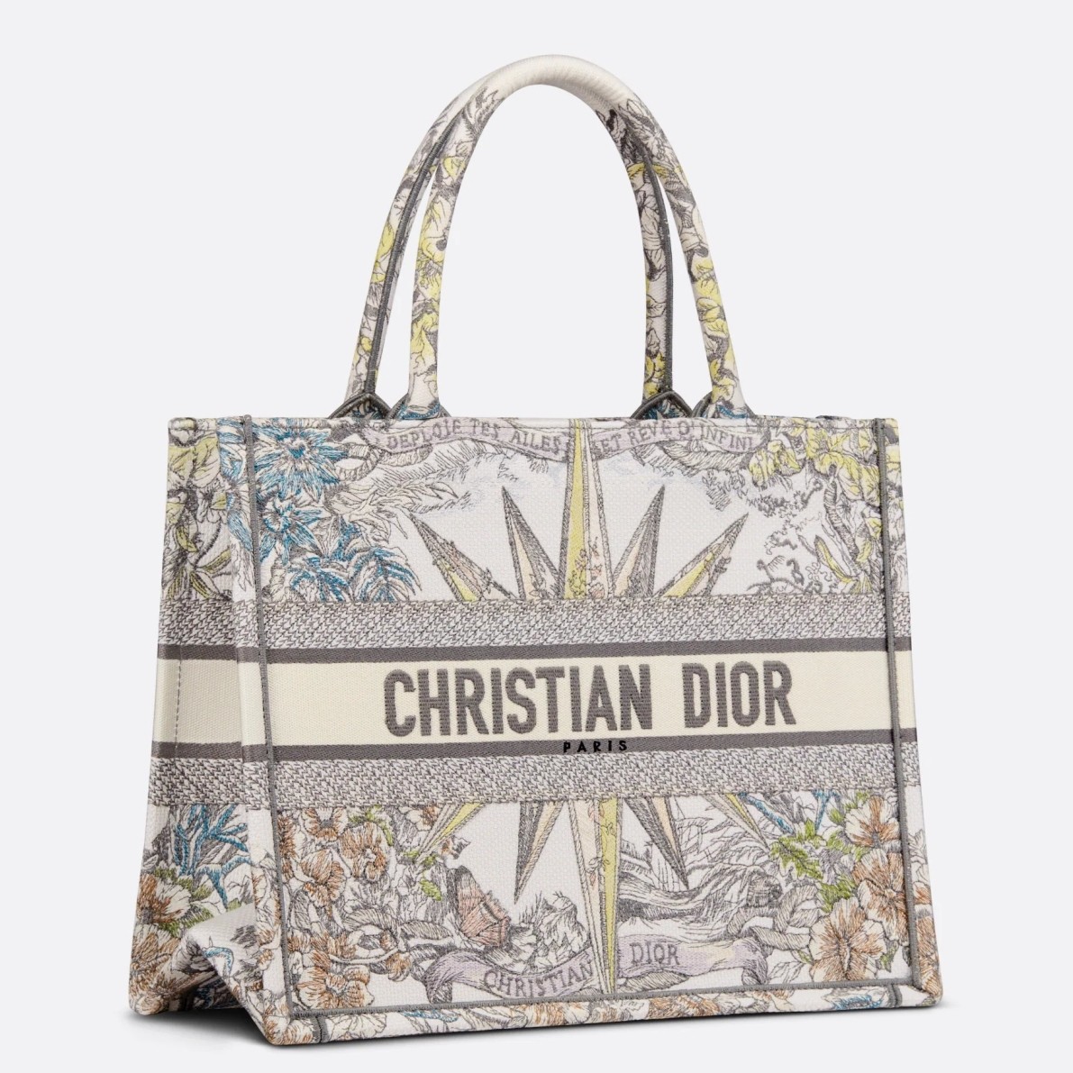 The Dior Book Tote is an original creation introduced by Dior's Creative Director, Maria Grazia Chiuri, and has become a staple of the Dior aesthetic. Designed to hold all the daily essentials, it is fully embroidered with the Rêve d'Infini motif by artist Pietro Ruffo, offering a dreamlike new take on Christian Dior's favorite star symbol and essential House code. Adorned with a 'CHRISTIAN DIOR PARIS' signature on the front, the medium tote exemplifies the House's signature savoir-faire and may be carried by hand or worn over the shoulder.