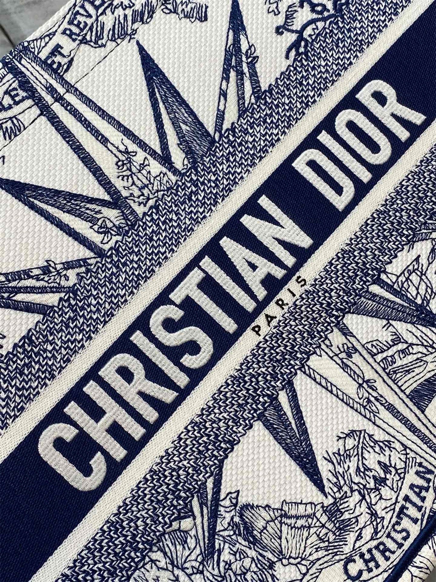 The Dior Book Tote is an original creation introduced by Dior's Creative Director, Maria Grazia Chiuri, and has become a staple of the Dior aesthetic. Designed to hold all the daily essentials, it is fully embroidered with the Rêve d'Infini motif by artist Pietro Ruffo, offering a dreamlike new take on Christian Dior's favorite star symbol and essential House code. Adorned with a 'CHRISTIAN DIOR PARIS' signature on the front, the medium tote exemplifies the House's signature savoir-faire and may be carried by hand or worn over the shoulder.