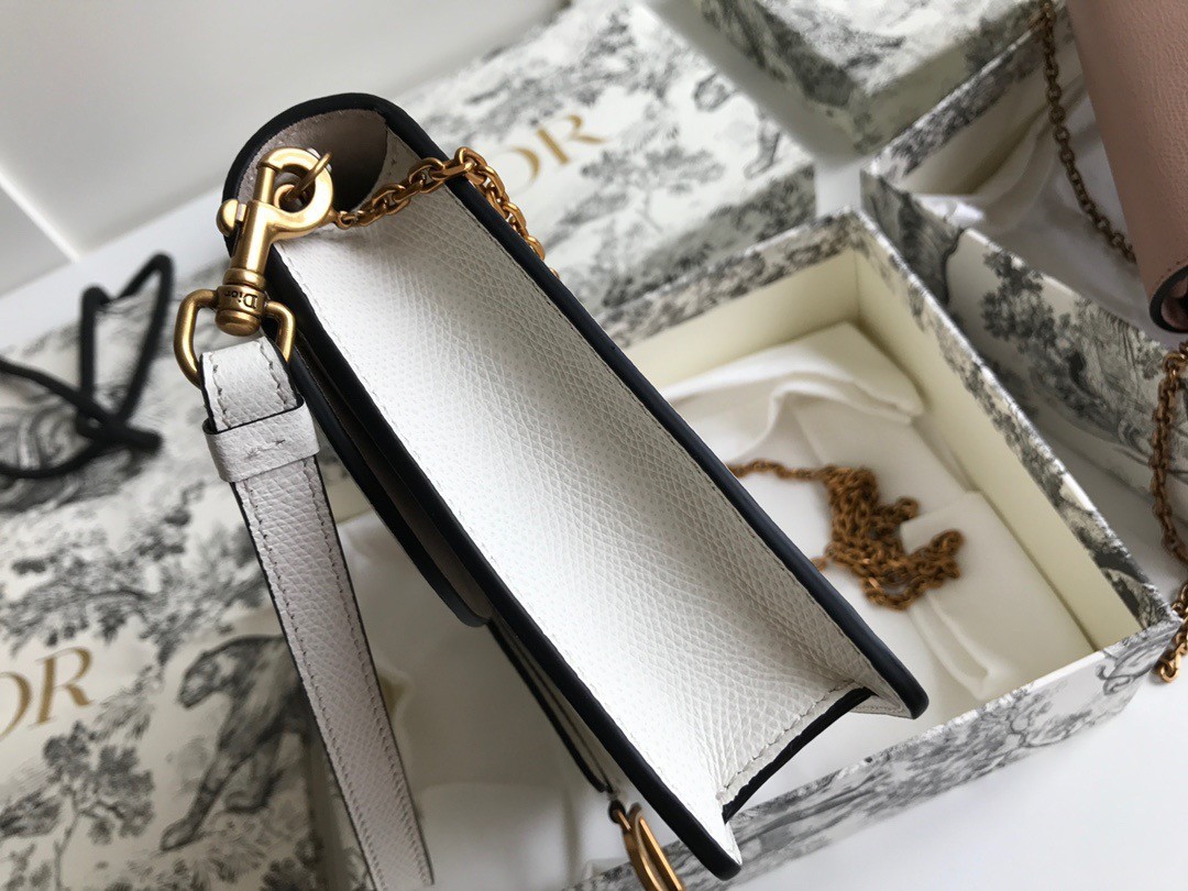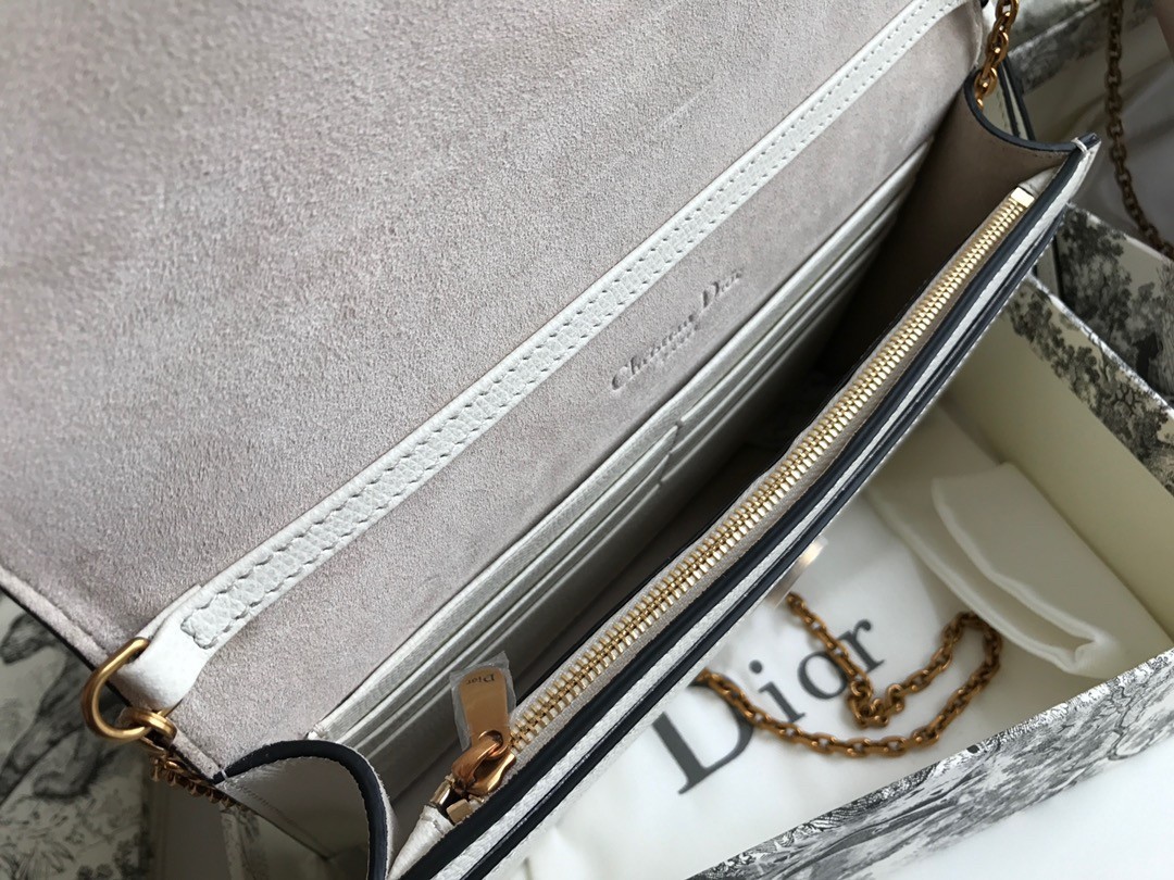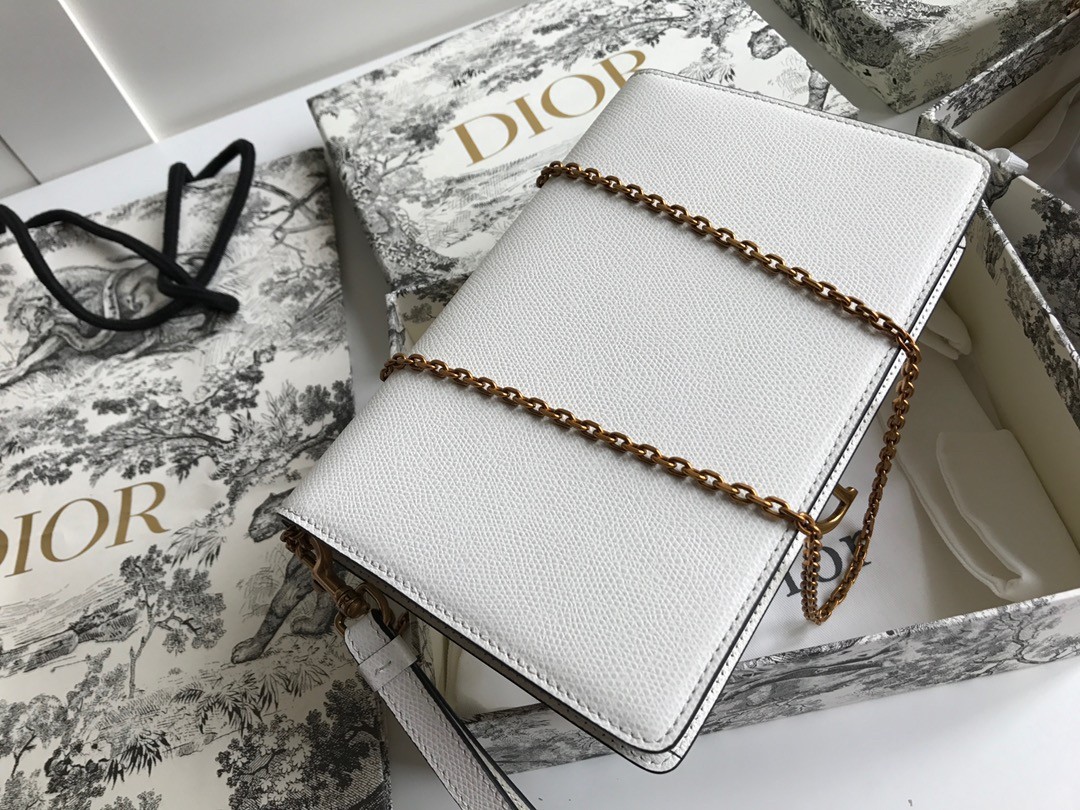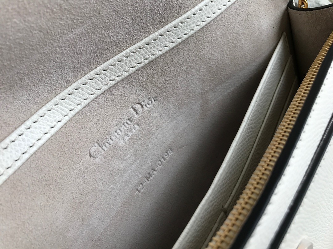 The Saddle pouch presents a modern design crafted in grained calfskin. It pays tribute to the Saddle codes, with its asymmetrical flap and metallic 'D' stirrup magnetic clasp. Featuring a removable chain, the pouch may be carried by hand, worn over the shoulder or crossbody for day or evening attire.