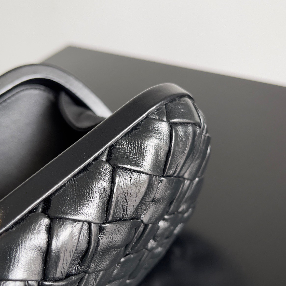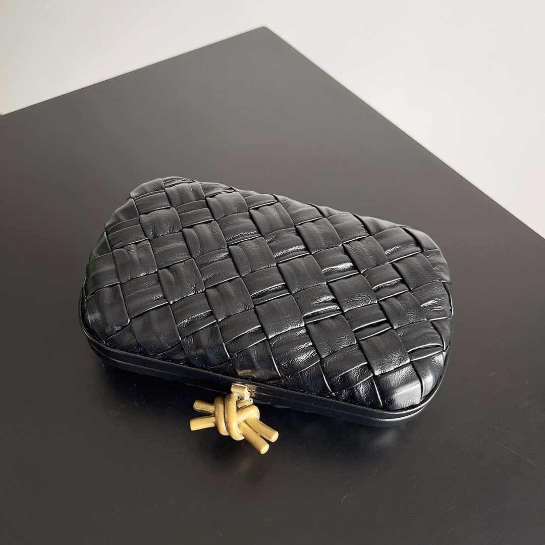 Bottega Veneta Knot Minaudiere Clutch In Black Foulard Intreccio Leather