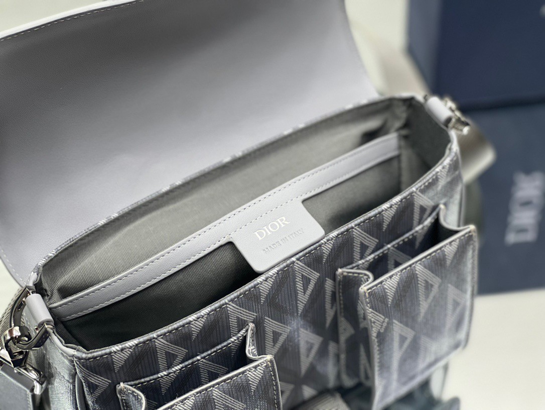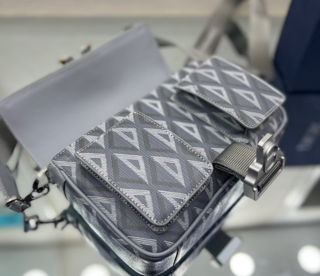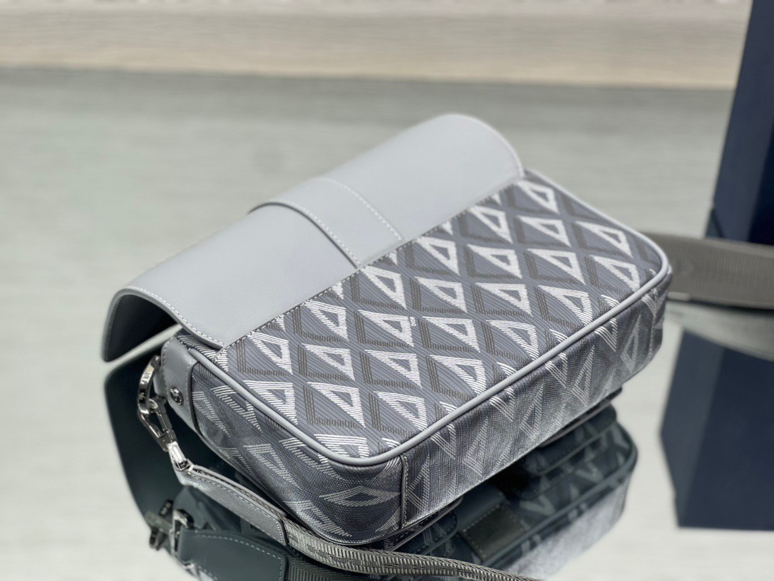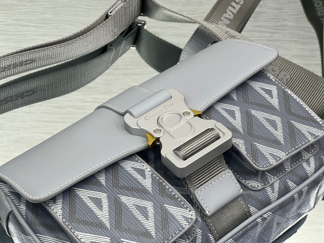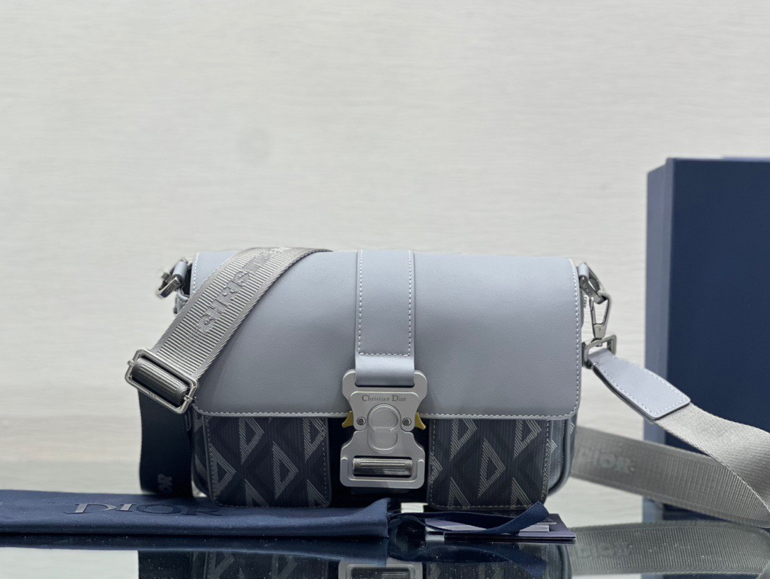 ew this season, the Dior Hit The Road bag with strap combines modernity with the House's couture spirit. Crafted in Dior gray CD Diamond canvas and smooth calfskin, it presents a flap with a Christian Dior aluminum buckle, as well as a spacious main compartment and double front pocket to easily access the essentials. Featuring an adjustable and removable shoulder strap, the functional bag will lend the finishing touch to casual outfits.