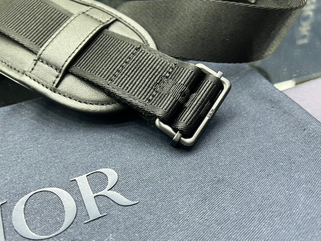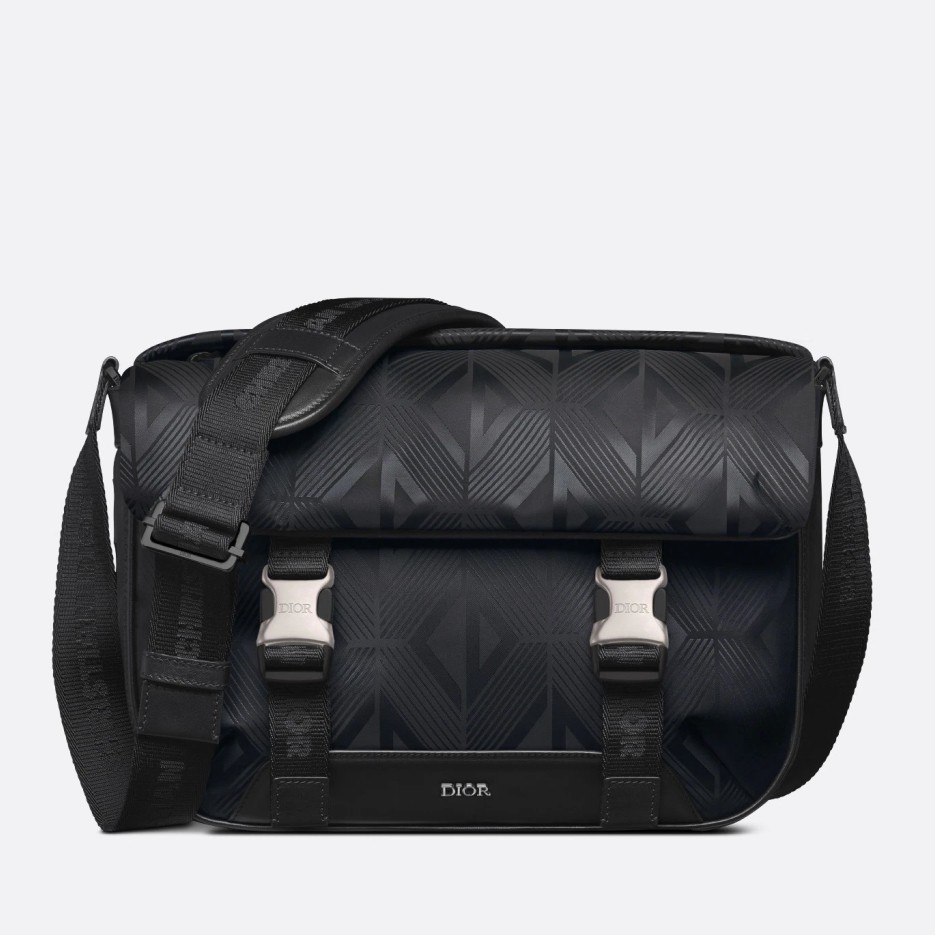 The Dior Explorer bag is inspired by timeless Messenger bag codes revisited in a couture version. Crafted in black CD Diamond Mirage Ski Capsule nylon, it is distinguished by a CD Diamond signature rubber patch on the front. The black grained calfskin flap reveals a zipped pocket, while the main compartment can hold all the essentials. Featuring an adjustable Christian Dior shoulder strap with a padded leather insert, the practical bag will be the finishing touch to all casual outfits.