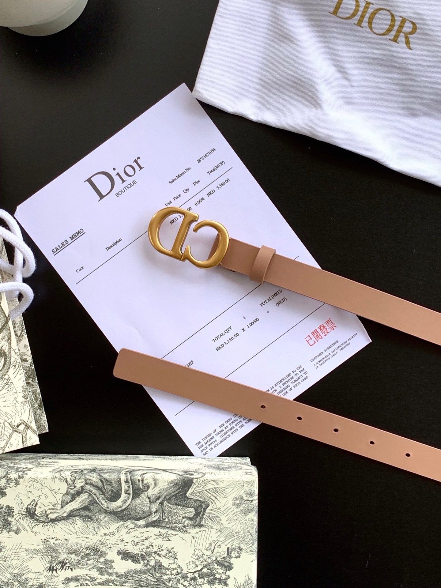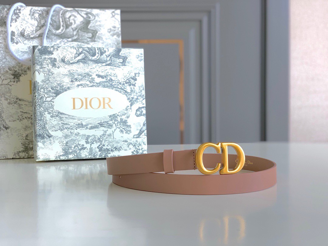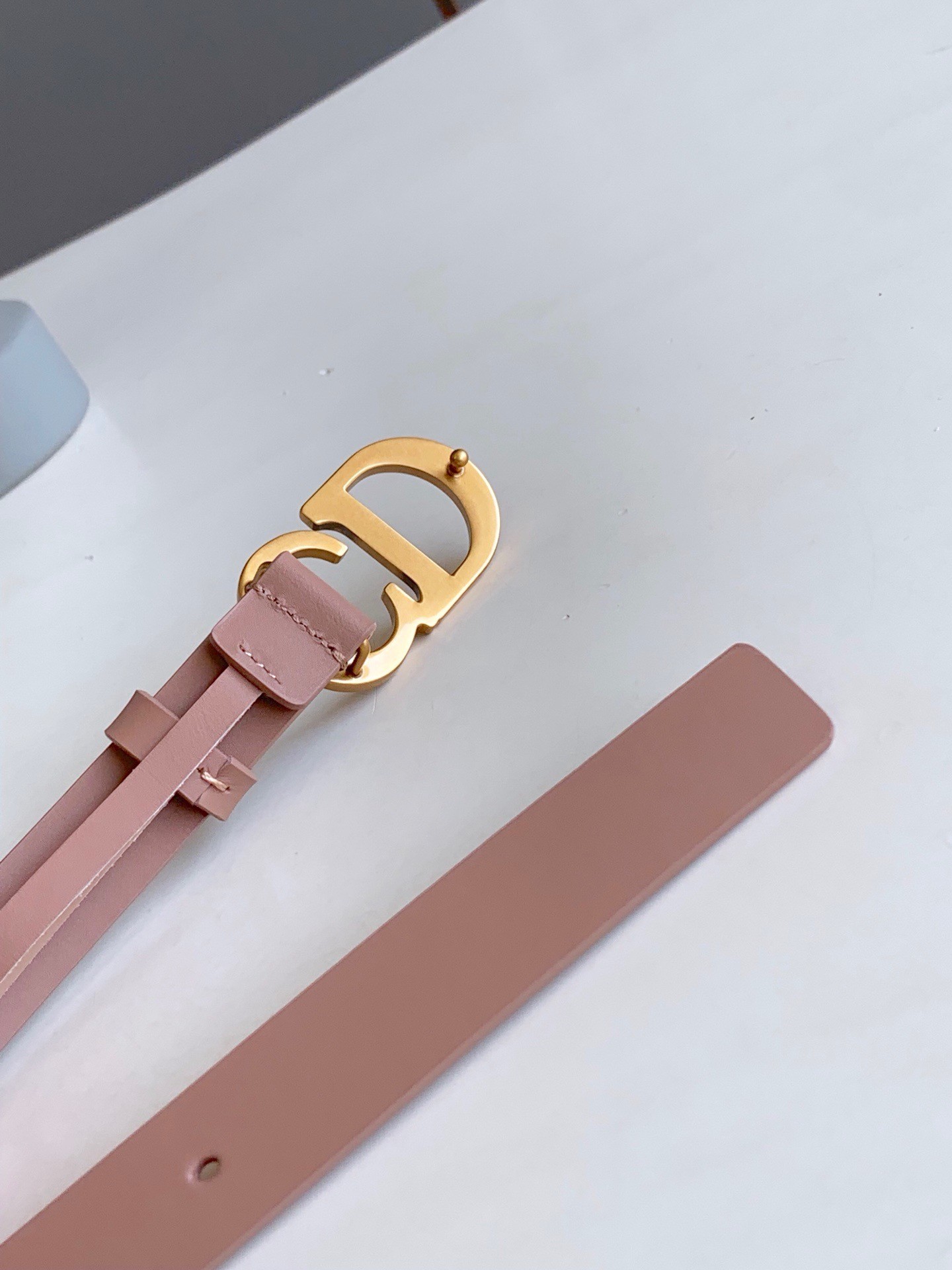 The Saddle Belt has become a House icon and wardrobe classic. Supper calfskin gives it a smooth feel and elegant finish. The style features the CD buckle in antique gold-finish metal and has a slim silhouette that will add shape to a skirt, a dress or pants.