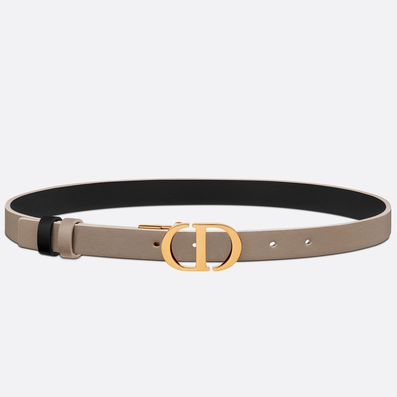 Inspired by the hallmark namesake bag, the 30 Montaigne belt is offered in a reversible variation, thanks to its swivel feature. Crafted in smooth calfskin, it is embellished with the iconic shiny gold-finish metal 'CD' buckle. The design also features two removable loops that can be worn in an either tonal or contrasting fashion. The timeless accessory elegantly highlights the waist and will coordinate well with jeans, a skirt or a dress.