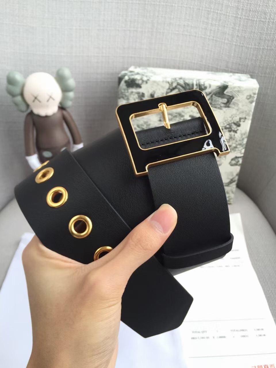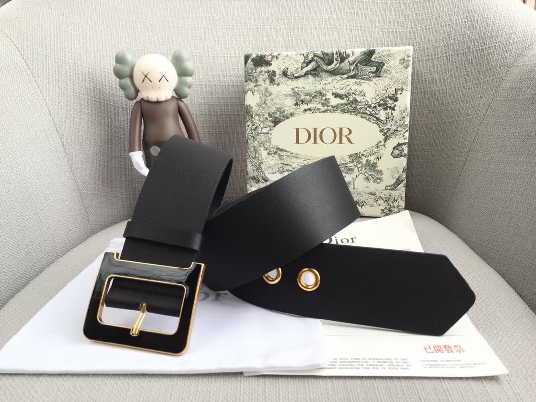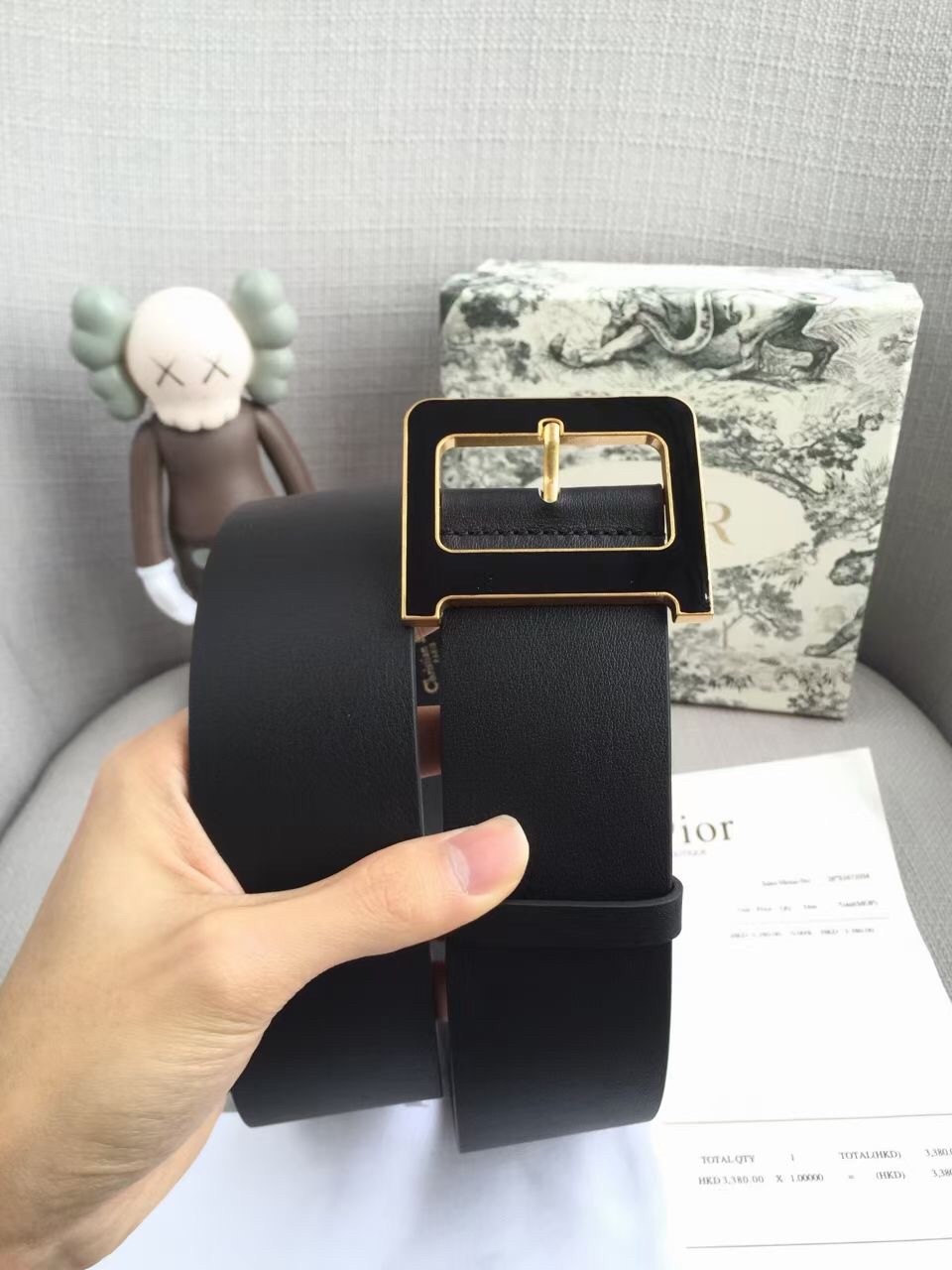 The Diorquake belt is crafted in black smooth calfskin and features the emblematic 'D' buckle in black enamel and gold-finish metal, showcasing a sophisticated look with its shiny finish. A refined style, its wide silhouette will highlight the waist and enhance a skirt, dress or jacket.