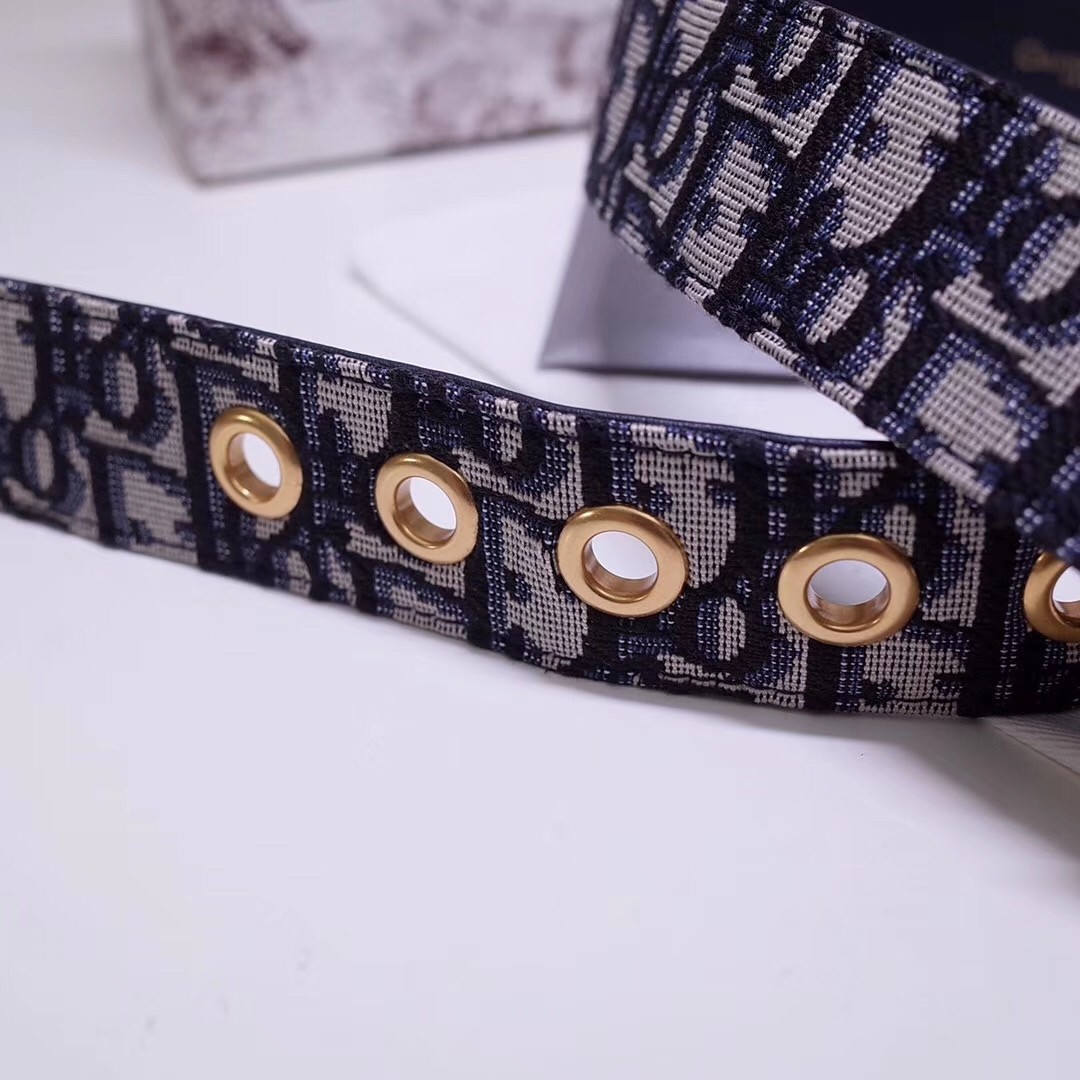 The hallmark Diorquake belt has a bold design. Crafted in Dior Oblique Jacquard, the House classic, it features the iconic 'D' buckle in antique gold-finish metal. A refined style, its thin silhouette will elegantly highlight the waist and enhance a skirt, dress or Bar Jacket.