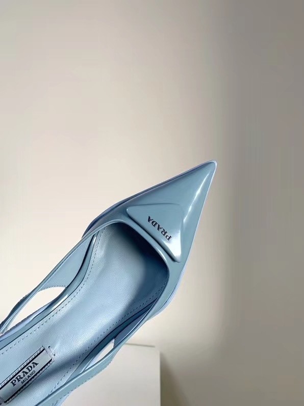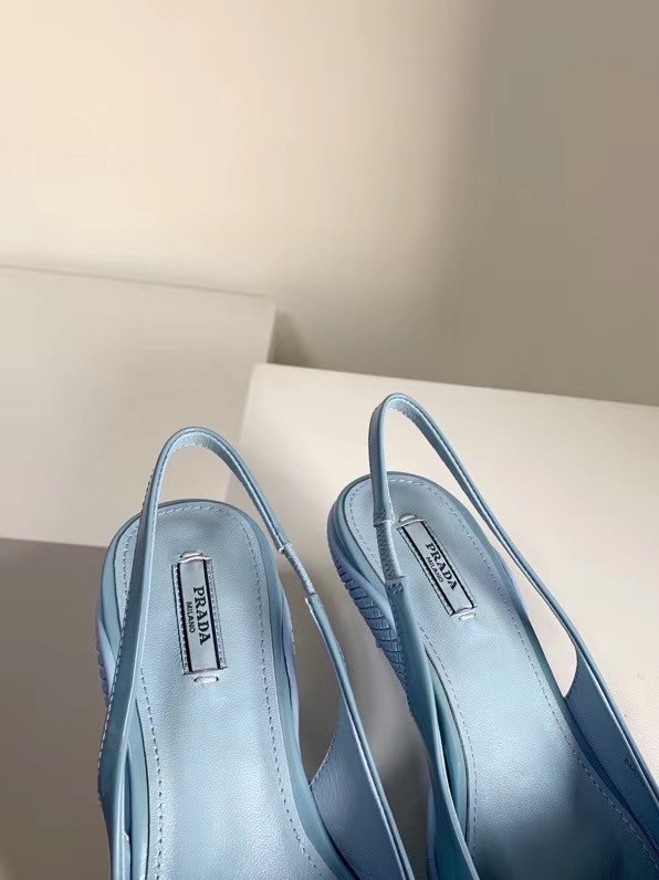 Prada Slingback Pumps In Light Blue Brushed Leather
