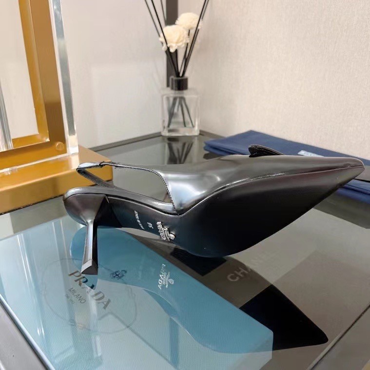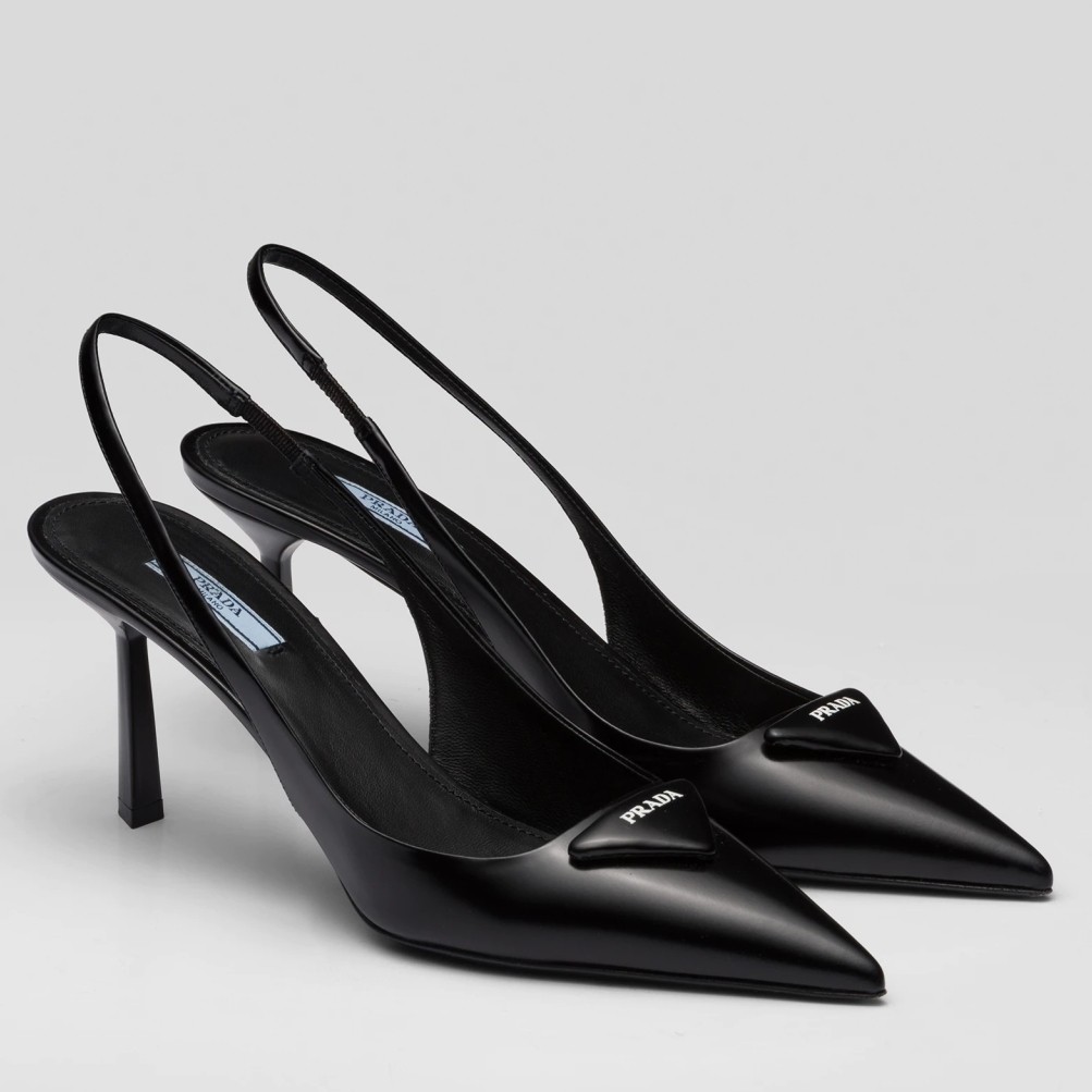 Prada Slingback Pumps 75MM In Noir Brushed Leather
