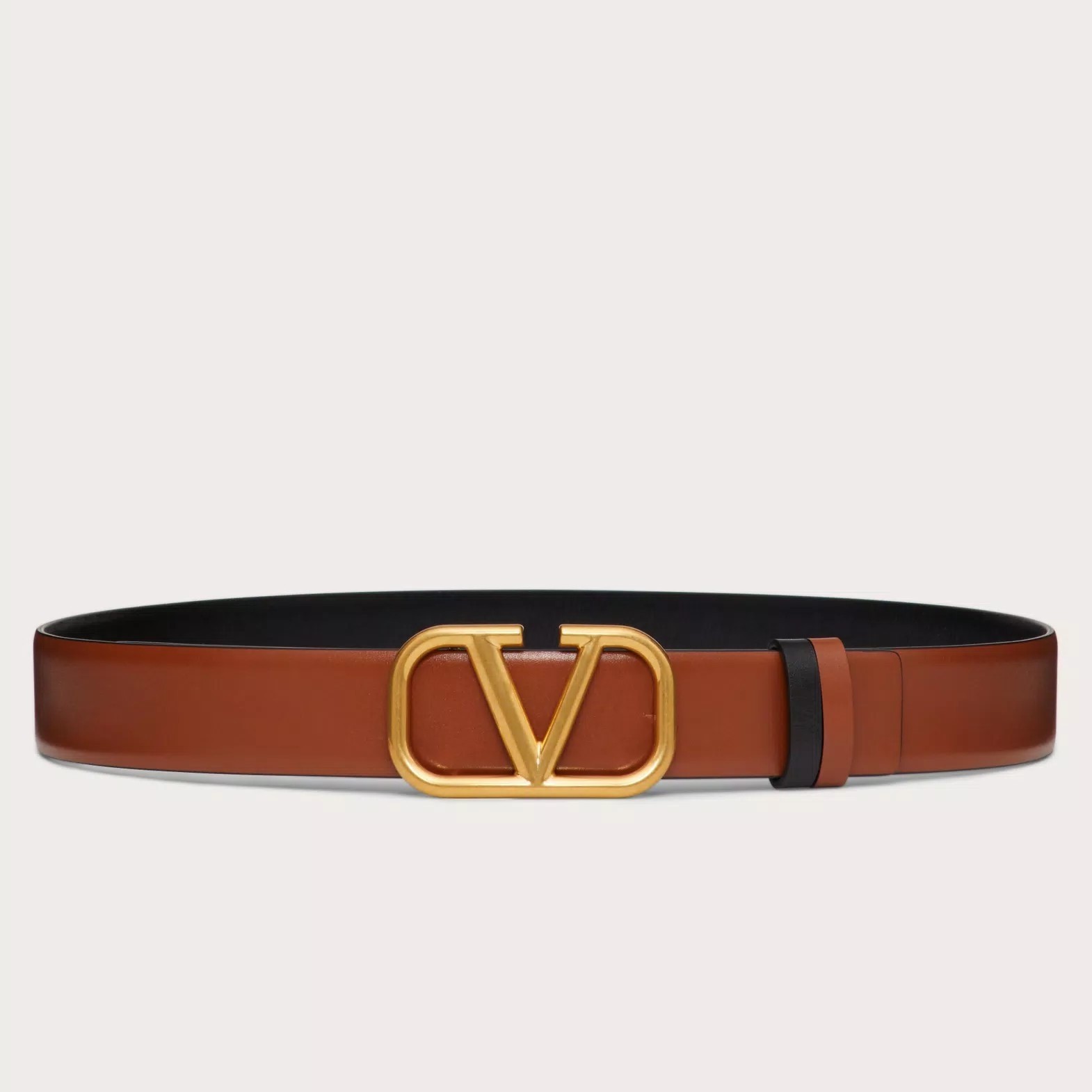 Valentino VLogo Reversible Belt 30mm in Brown and Black Calfskin