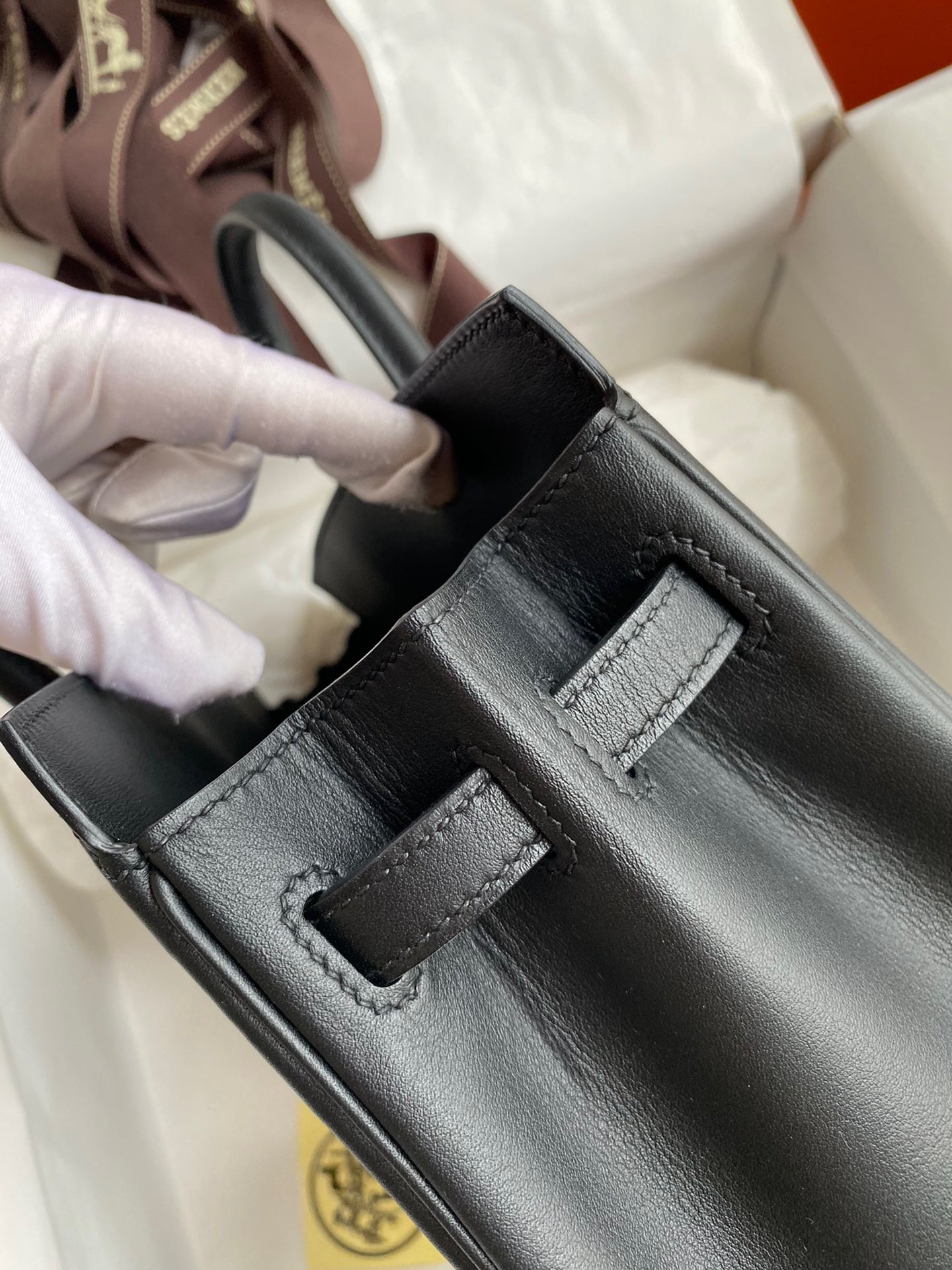 At once dramatic yet understated, the Shadow Birkin was first introduced in 2009 by famed French designer Jean Paul Gaultier. A decade later, Hermès re-released the bag in limited numbers. Gaultier sought to create a trompe-l’œil effect through the illusion of a top flat and sangles, shown casually strewn. In reality, the design is a raised impression, making it the only Birkin to stray from the traditional structure. The simple embossed clochette on the rear of the bag completes the design, along with snap-ended sangles that slide inside the front of the bag to allow for a bit of extra security.