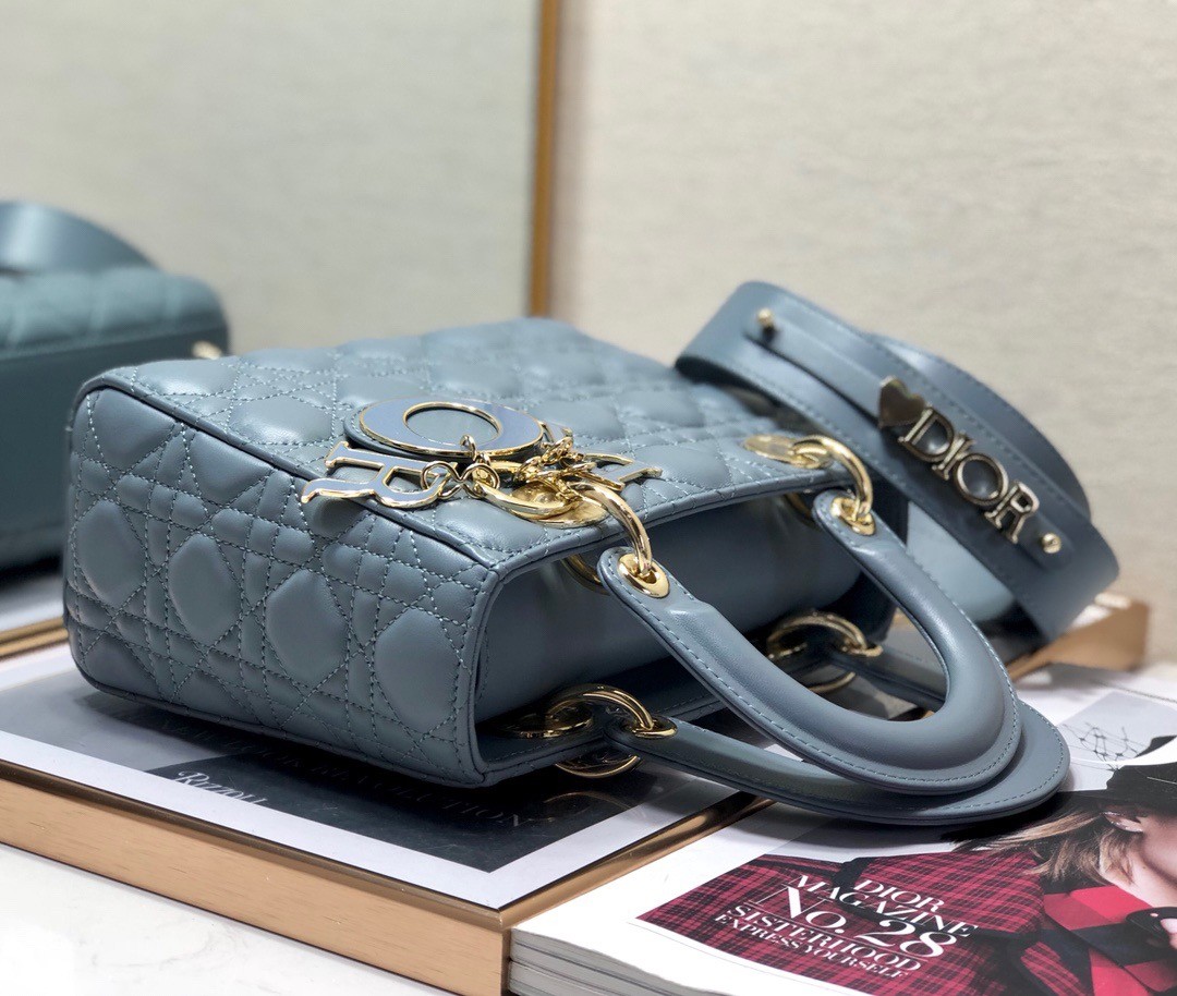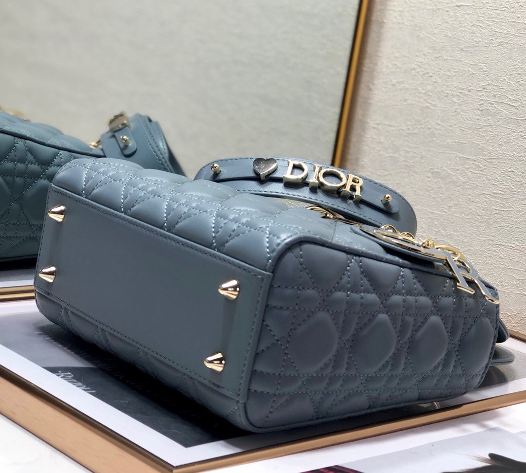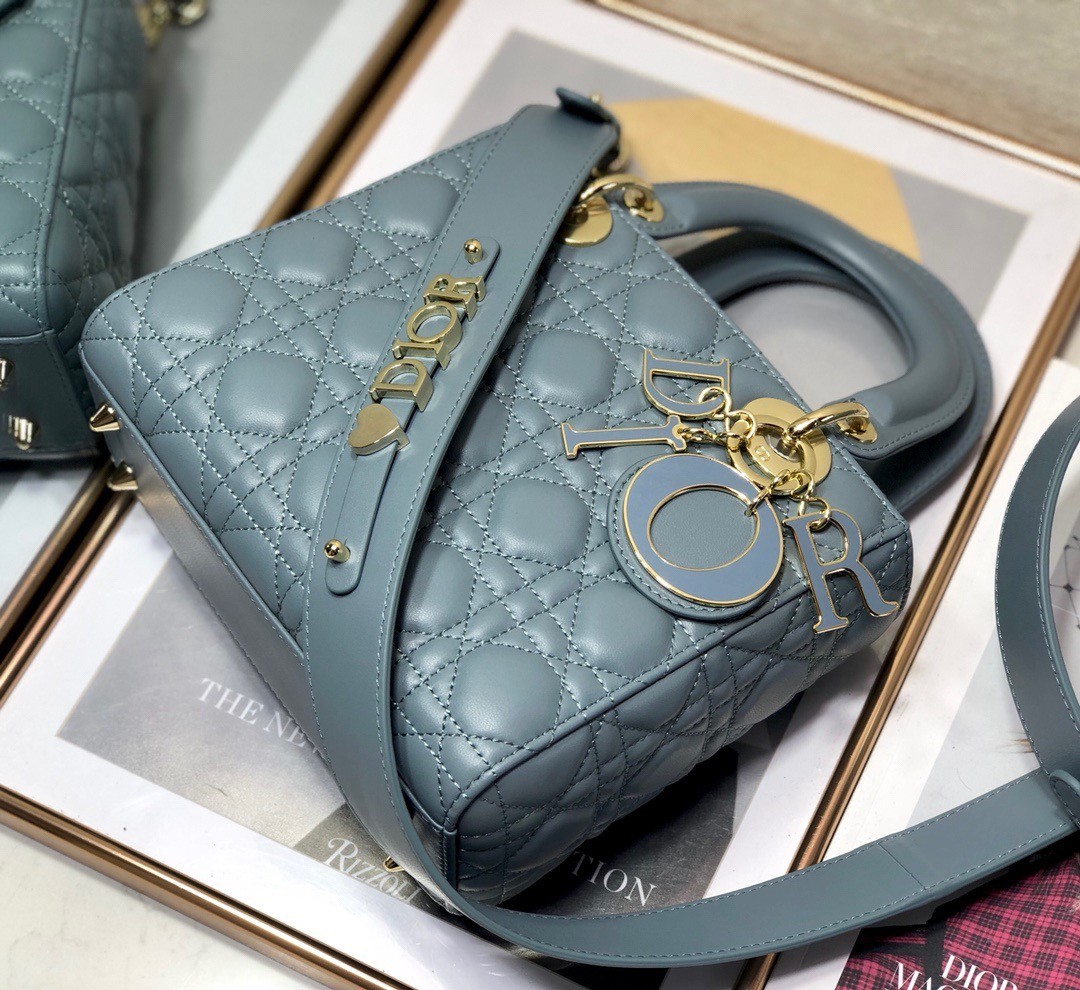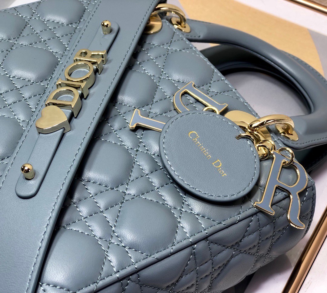 The Lady Dior My ABCDior bag epitomizes Dior's vision of elegance and beauty. Sleek and refined, the timeless style is crafted in lambskin and covered with the iconic Cannage stitching, creating the instantly recognizable quilted texture, while the tonal enamel 'D.I.O.R.' charms further embellish its silhouette. The small, unique design may be personalized with badges placed on its shoulder strap and can be carried by hand or worn crossbody.
