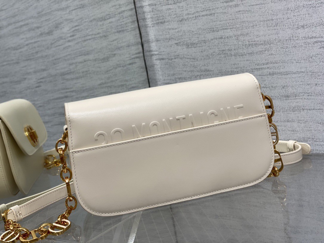 The 30 Montaigne Avenue bag enhances the hallmark line with a timeless and elegant style. Crafted in box calfskin, the rounded flap with delicate curves is punctuated by an antique gold-finish metal CD clasp inspired by the seal of a Christian Dior perfume bottle. The design is completed by other details, like the 30 Montaigne signature embossed on the back and the signature chain alternating gold-finish metal and tonal enamel links that match the leather.