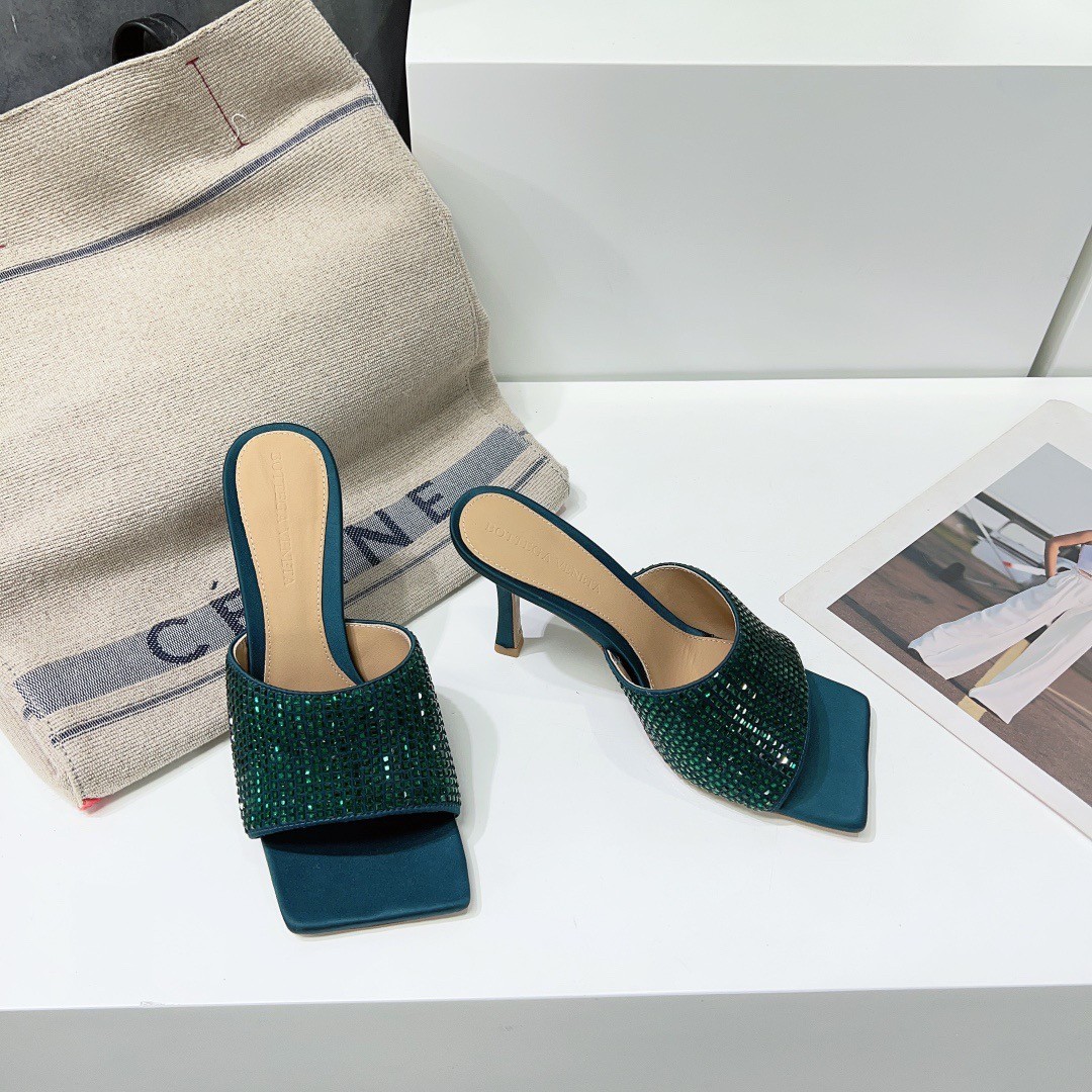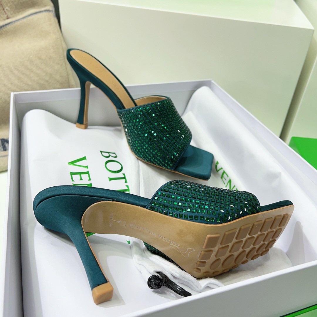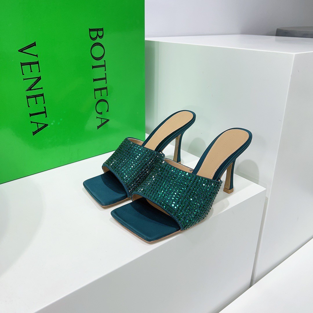 Timeless and glamourous, Bottega Veneta's square-toed mules are the perfect way to add some sparkle to your daytime or evening look. They've been made from lustrous emerald satin punctuated with sparkling crystals. Wear yours with dresses and denim alike.