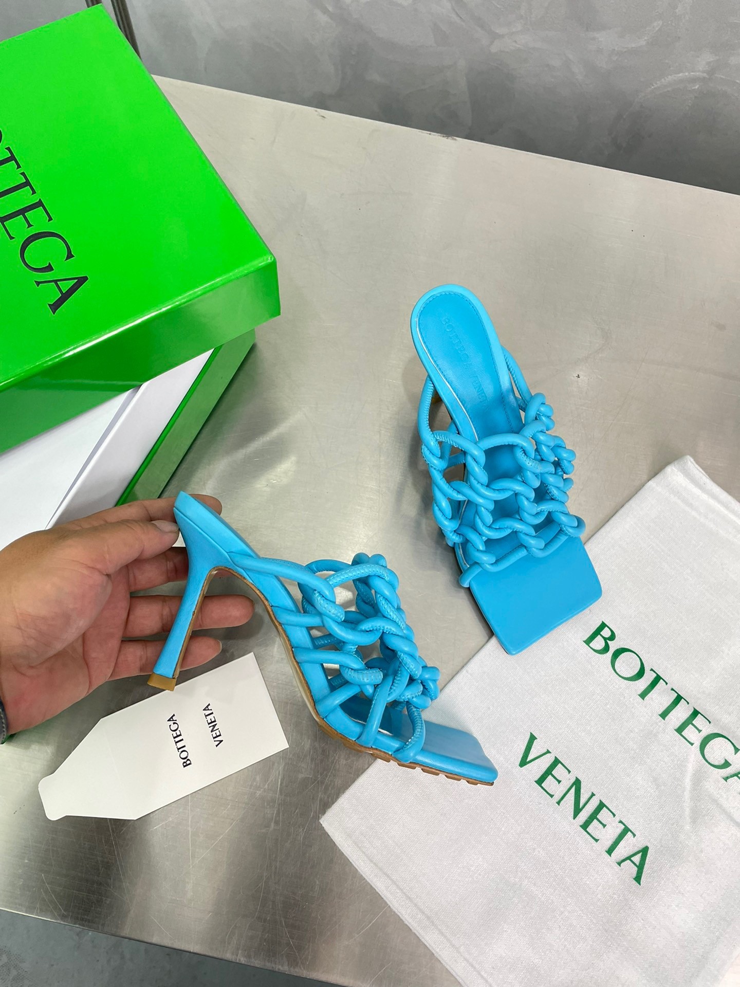 Bottega Veneta is known for its signature intrecciato technique but plays with weaving in a different way for these 'Stretch' mules. Designed with square toes, they've been made from tubes of leather and twisted by hand to achieve the wide, lattice straps.