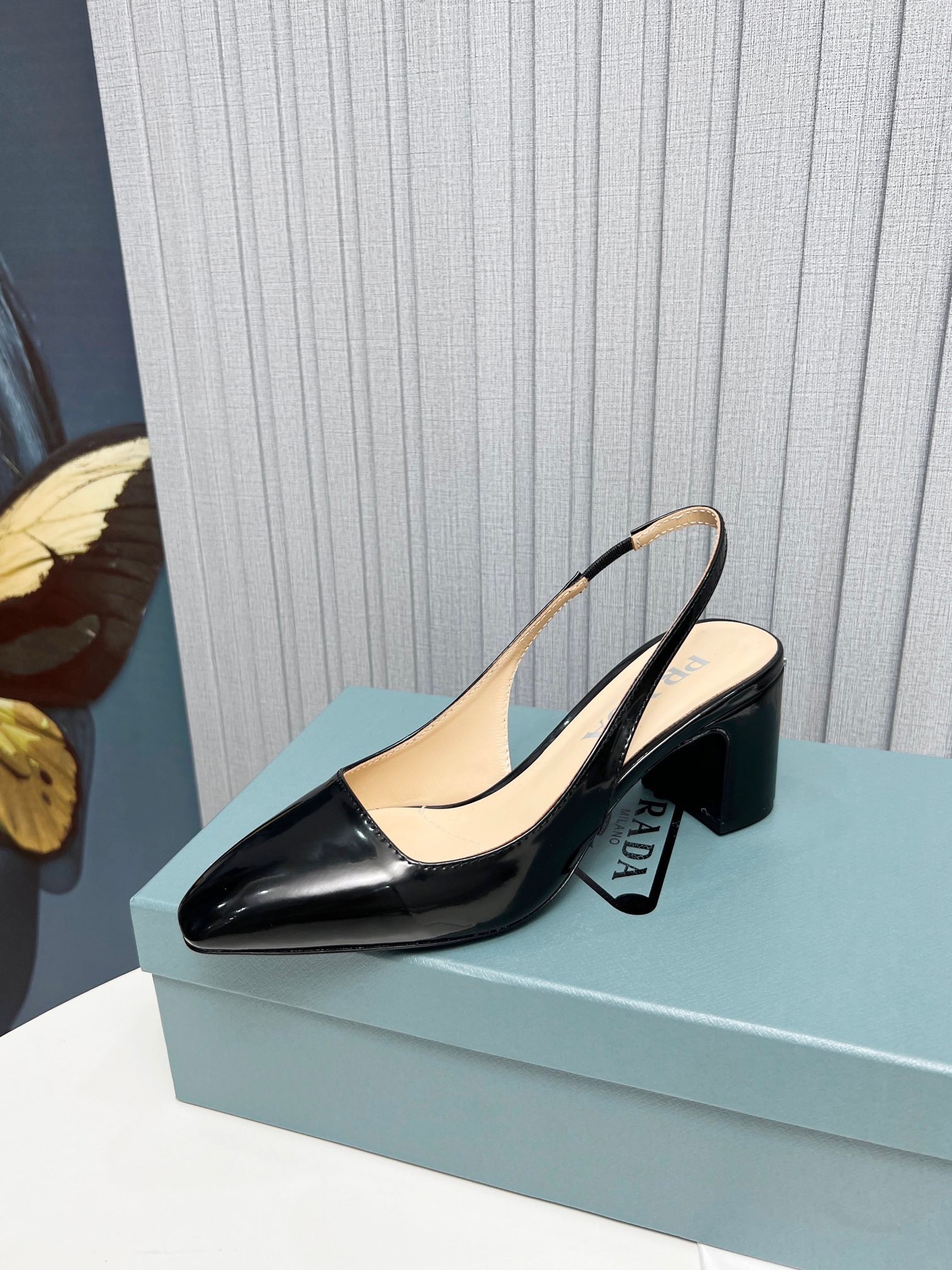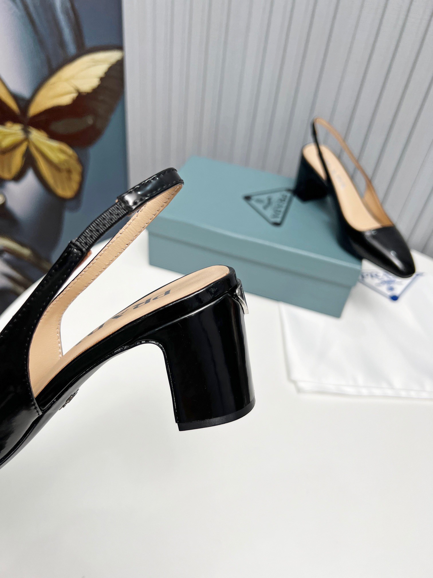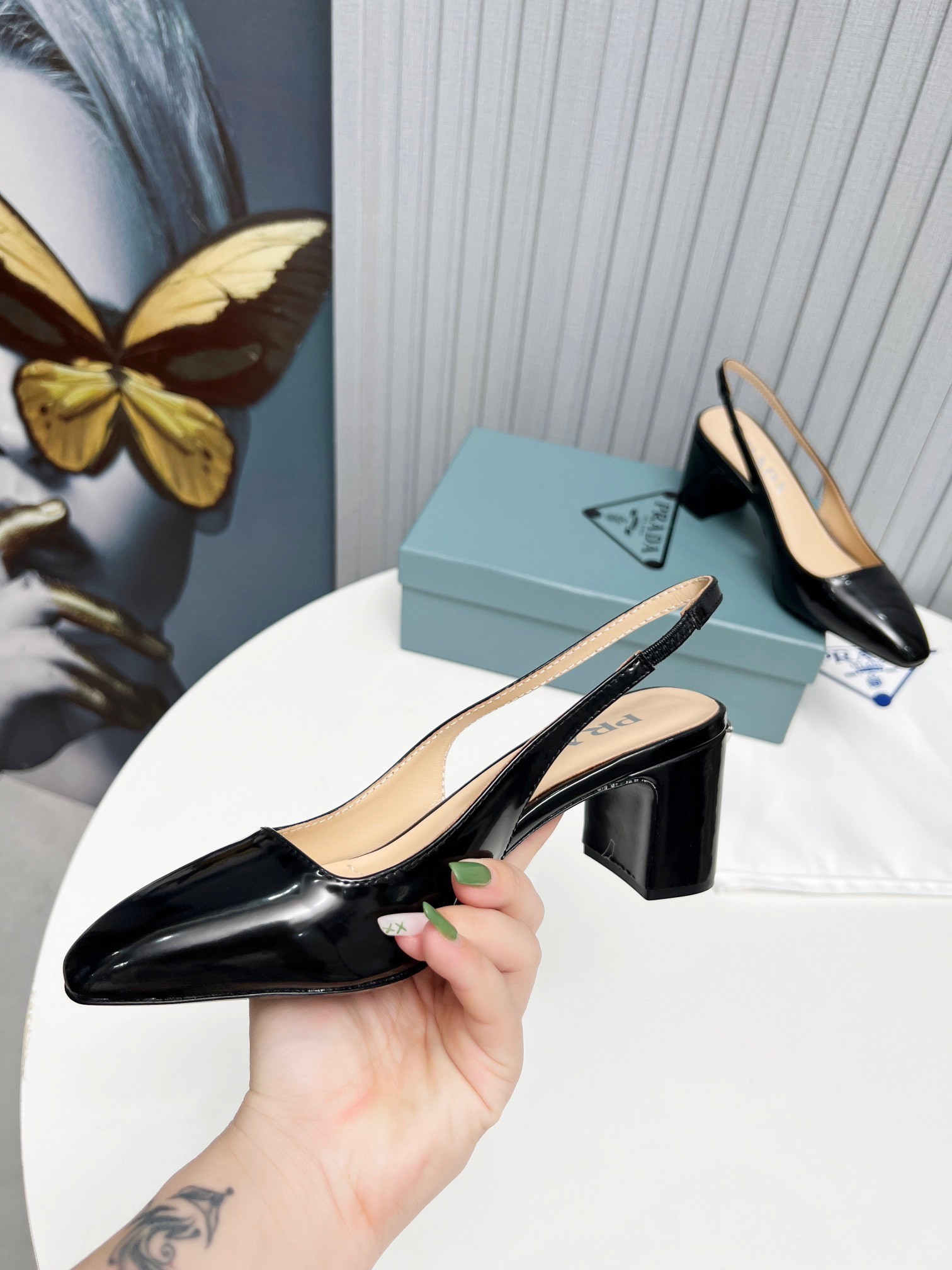 Prada Slingbacks Pumps 65mm In Black Patent Leather