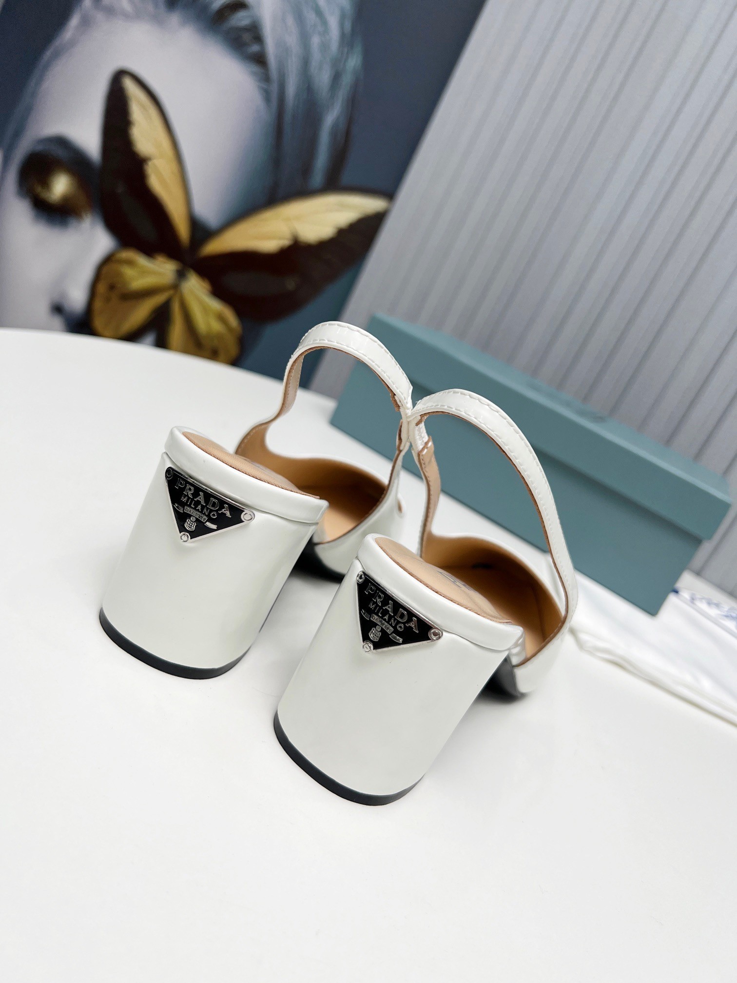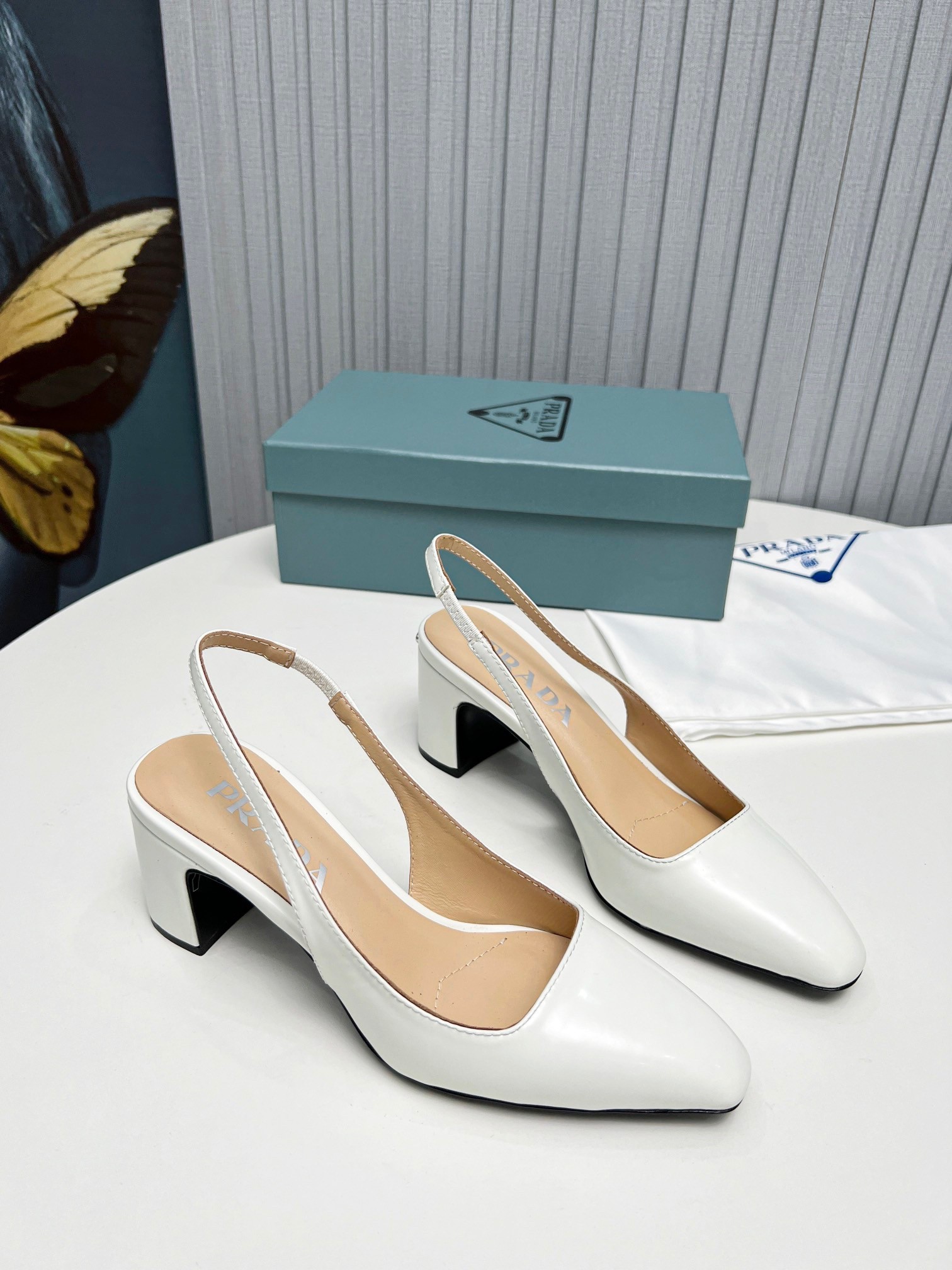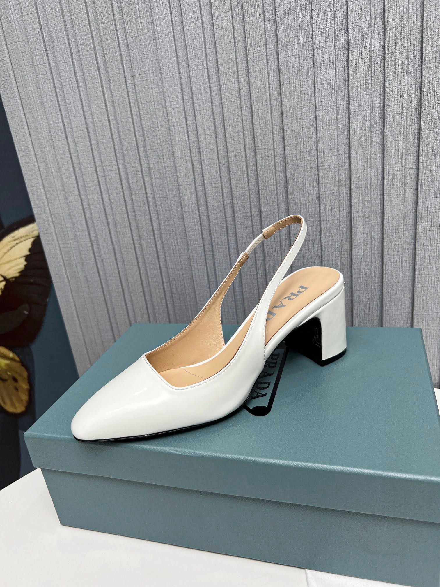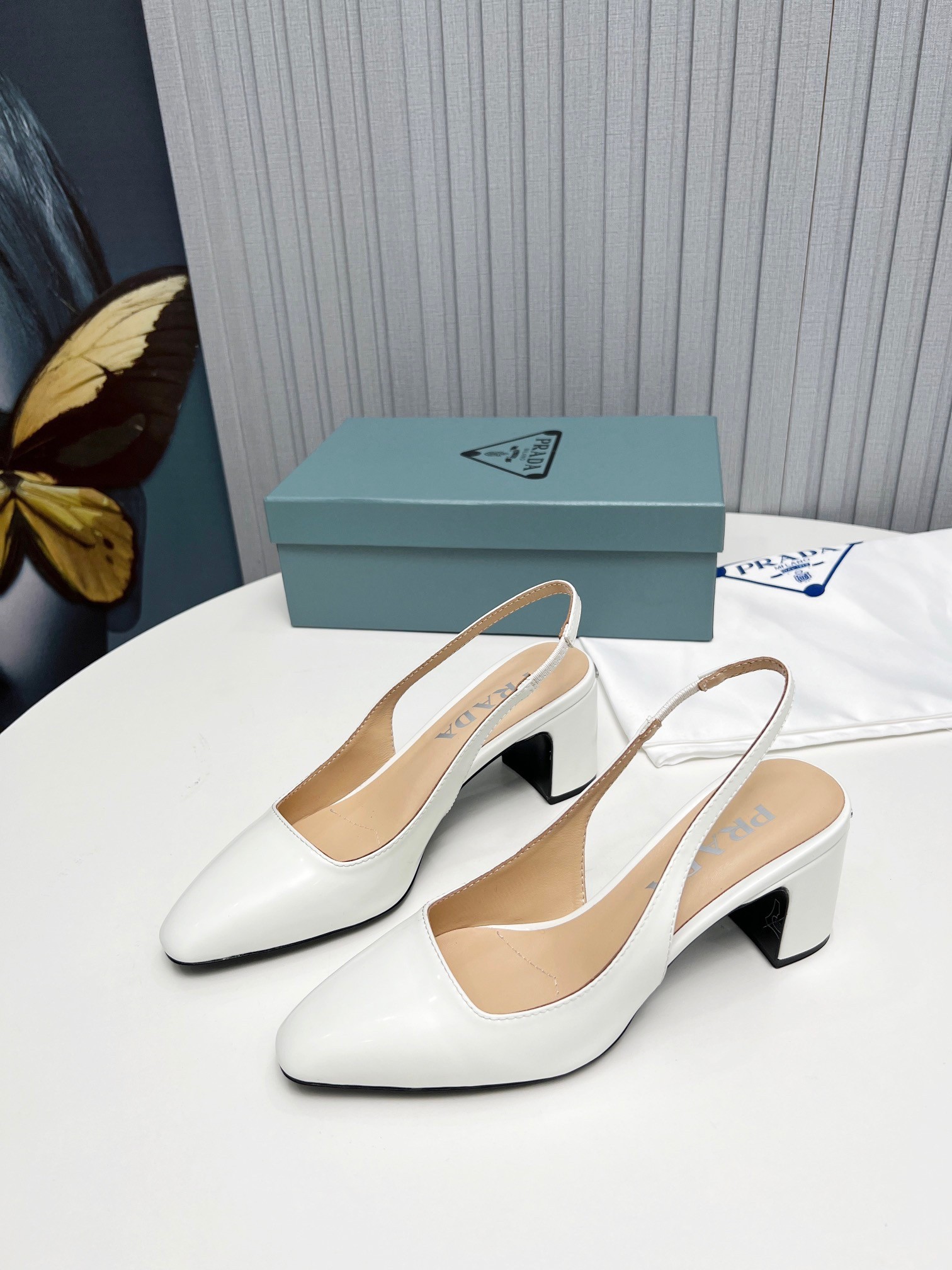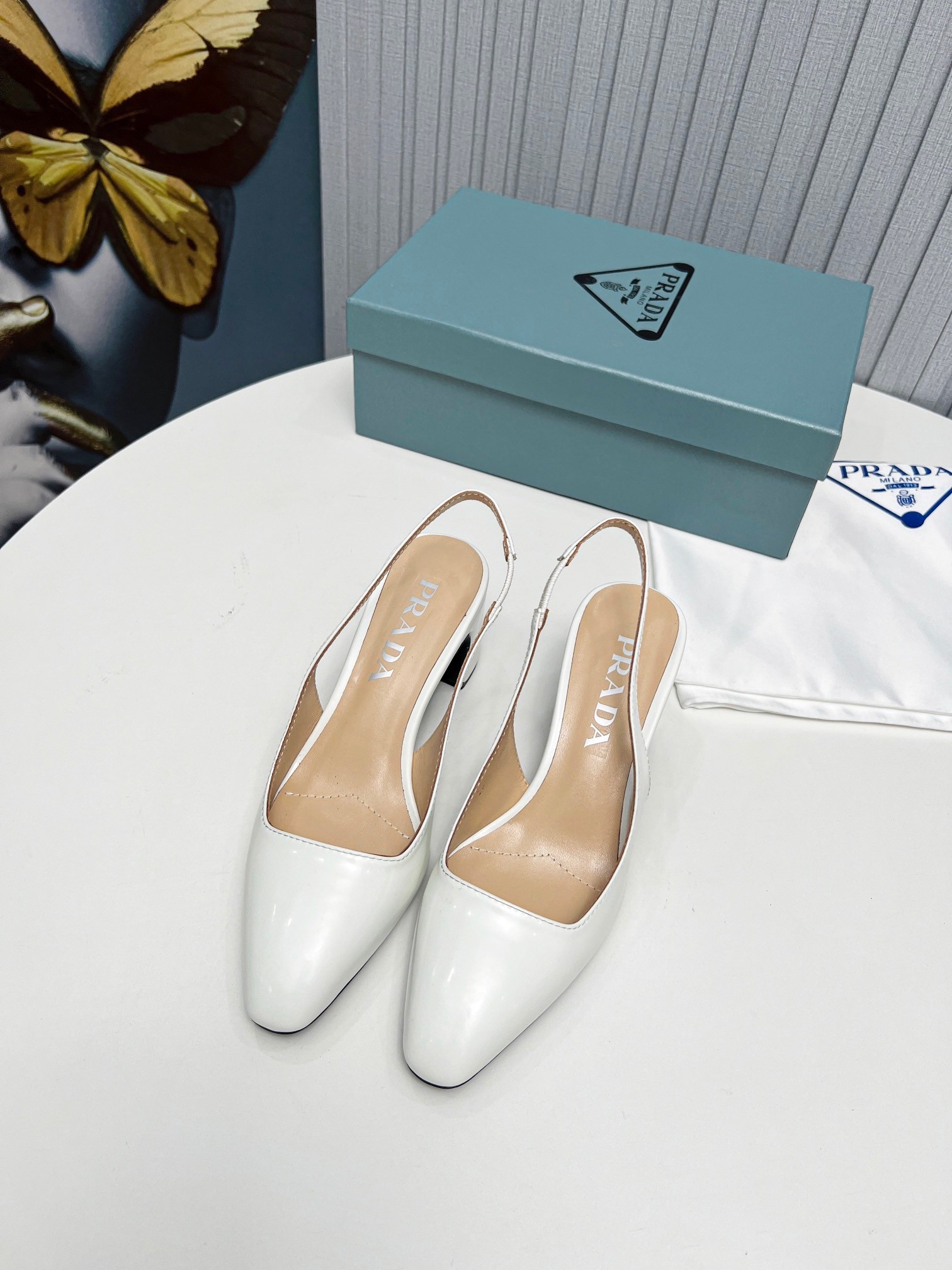 Prada Slingbacks Pumps 65mm In White Patent Leather