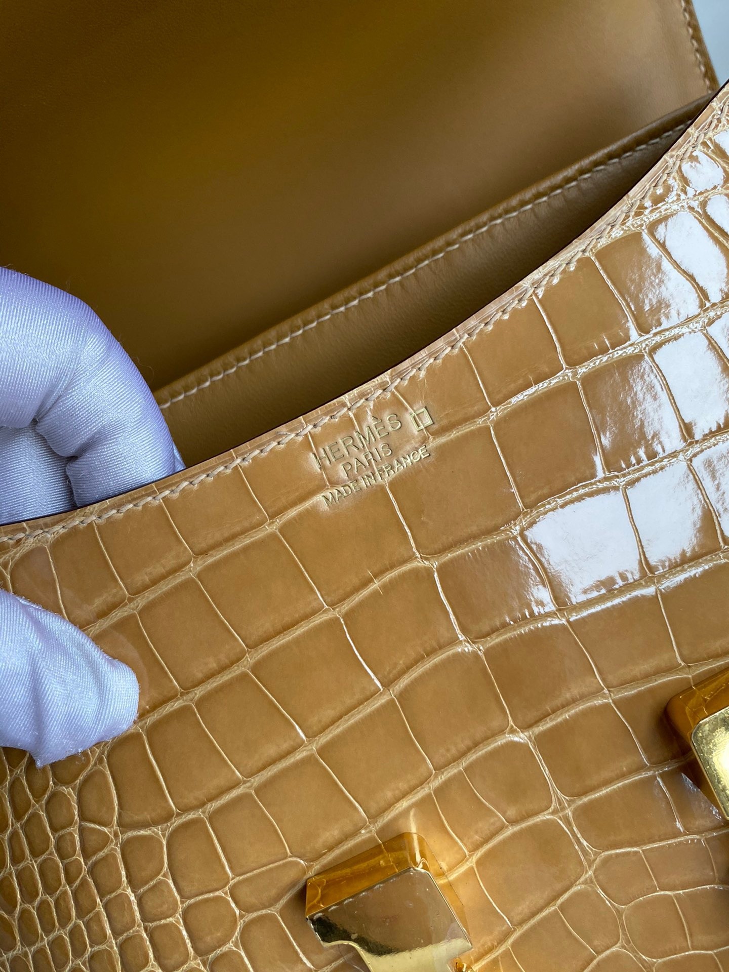Birthed in 1959 along with its designer’s daughter who shares the name, the Constance bag is considered the third side of the handbag pyramid, forever connected to and supported by the iconic Birkin and Kelly bags. The Hermès Constance 24cm bag is a chic shoulder bag unparalleled in style. Thanks to its H lock clasp, making it a perfect accessory for a casual occasion or a dressy evening. Made from sophisticated Alligator skin, a skin that comes from the Mississippi Alligator, this leather is created by polishing the spots with agate for a Shiny finish.
