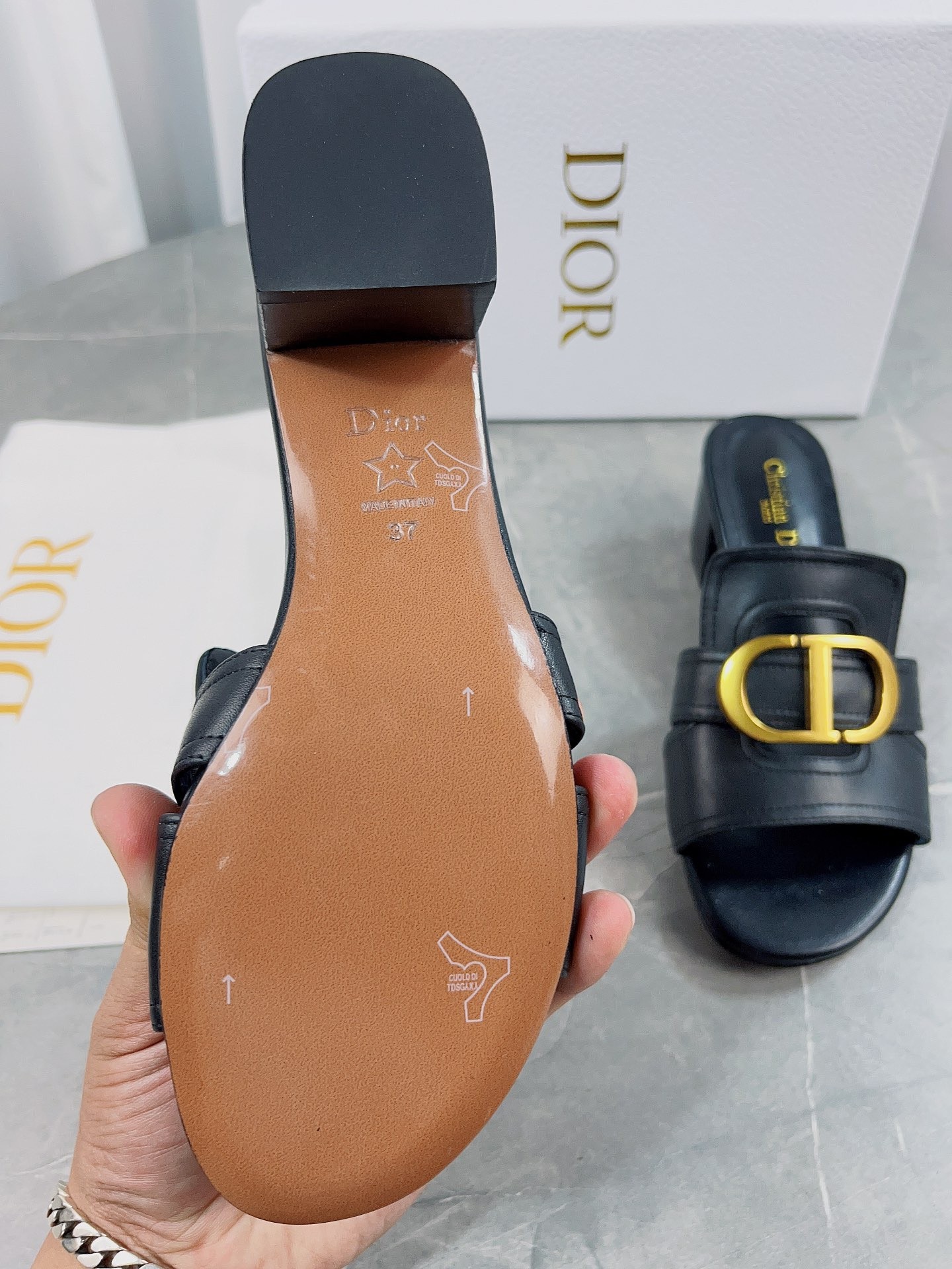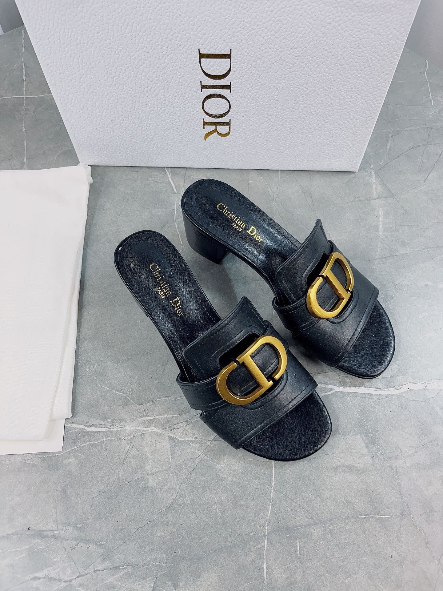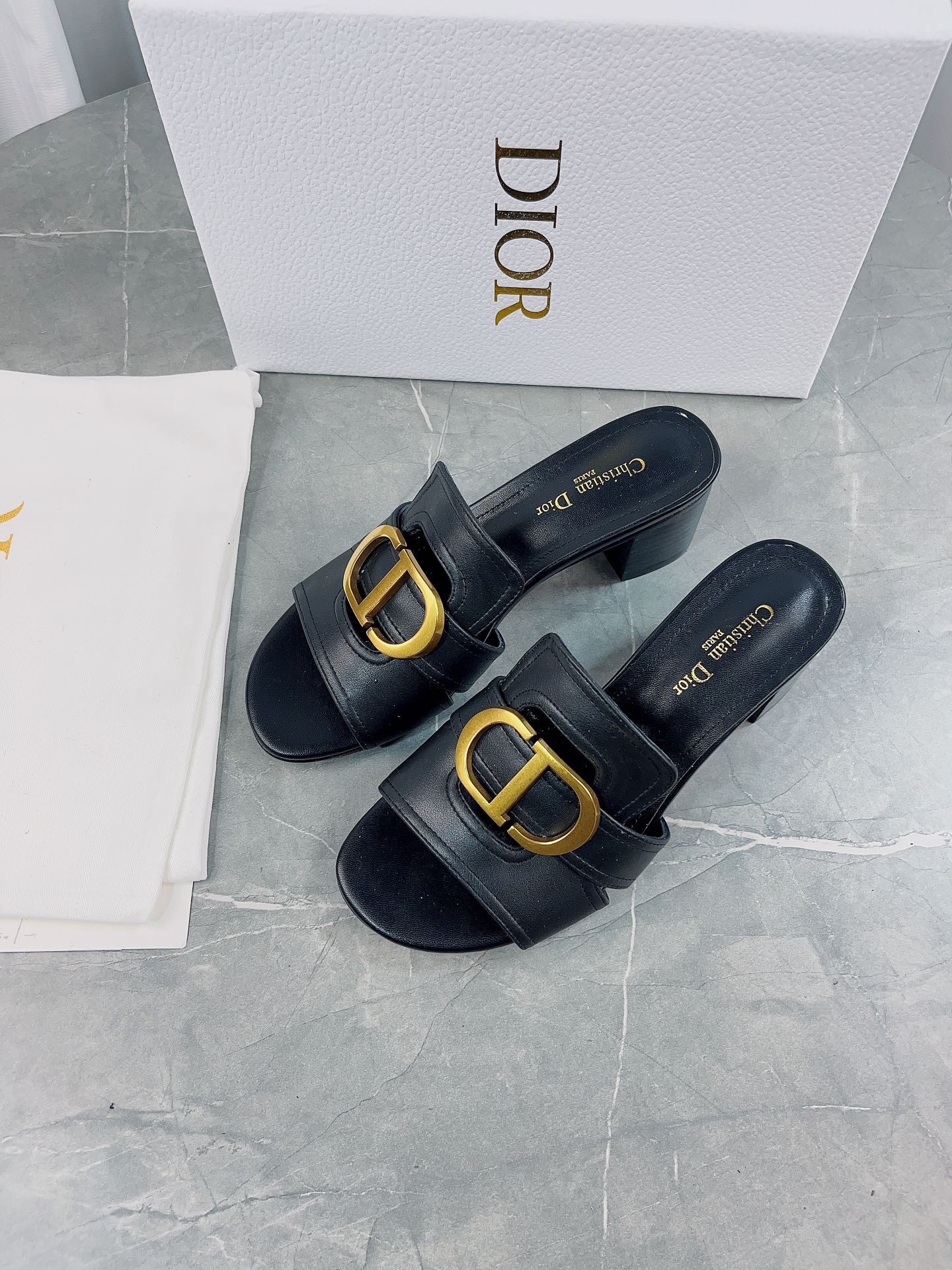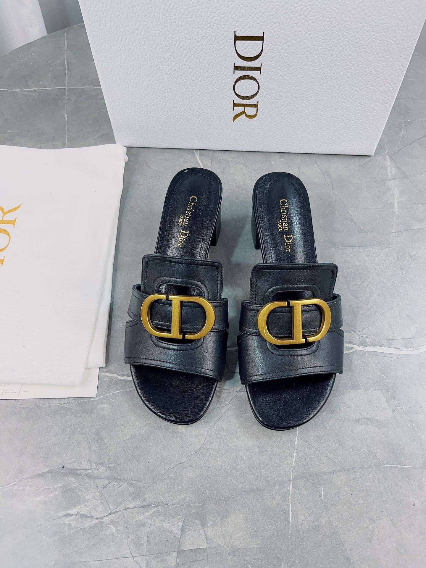 The 30 Montaigne heeled slide is an essential Dior wardrobe piece. The gold-finish metal 'CD' signature highlights the silhouette and contrasts with the calfskin, while the heel ensures an elegant look with a comfortable feel. The timeless and elegant lines complete any attire with ease.