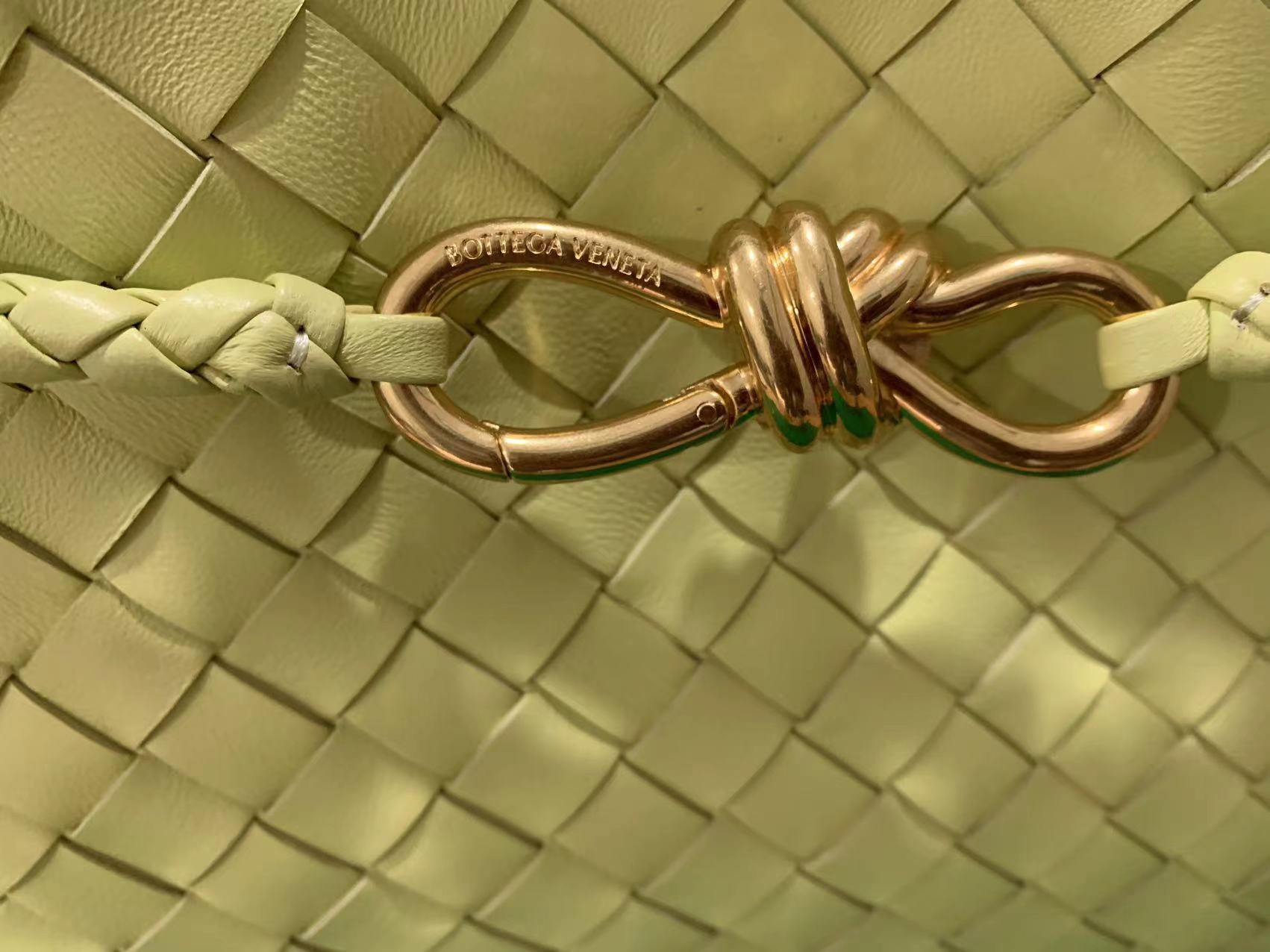 Matthieu Blazy sent his new 'Andiamo' tote down Bottega Veneta's Spring '23 runway in various sizes and colors - there's a style for everyone. This small leather version features a long braided shoulder strap and perfectly fits your wallet and sunglasses case, as well as a makeup pouch. The gold knot is a new signature and marker of the house's craftsmanship.