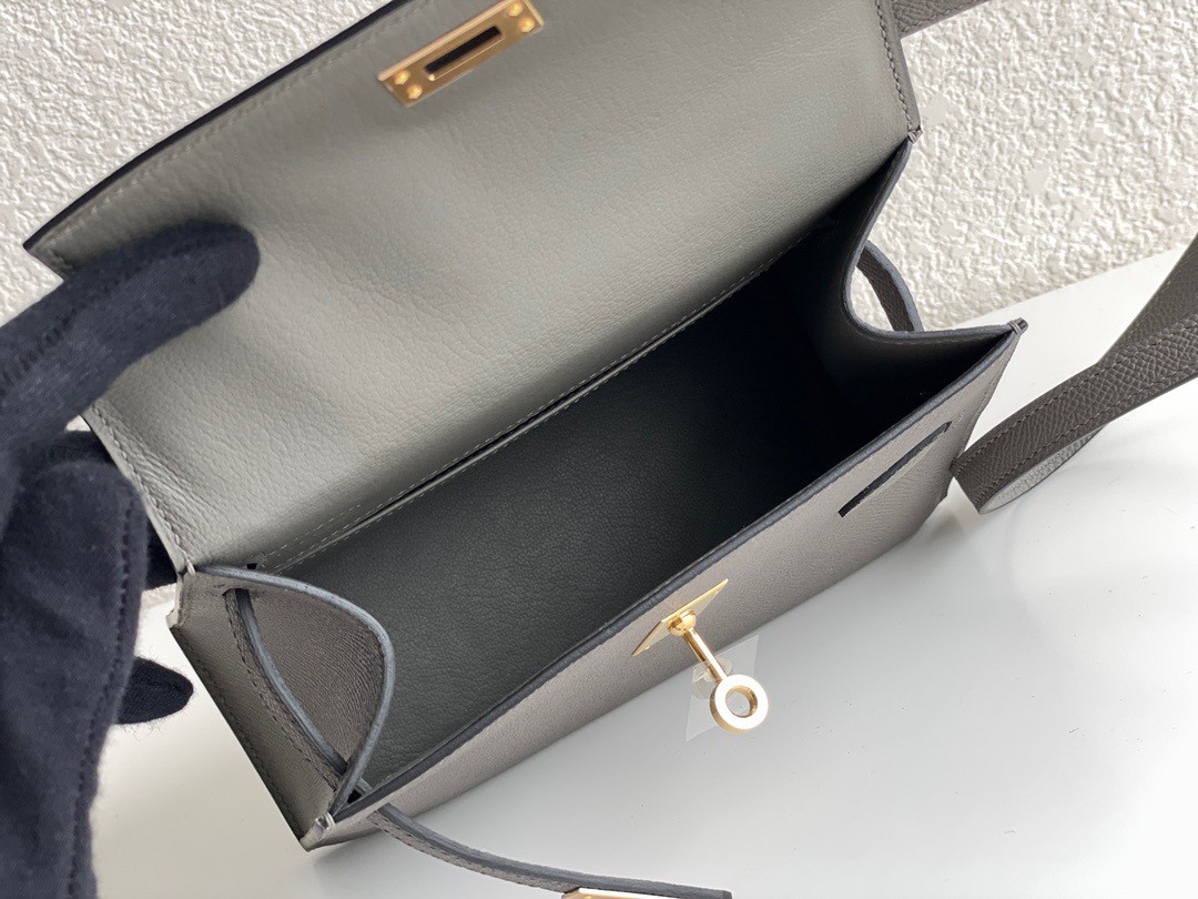 The Kelly en Desordre was first seen on the runway during the Hermès Women's Autumn- Winter 2022 collection, and then the Kelly Desordre 20 has appeared a few auctions in 2023. The bag has exterior openings on both sides, making it a two-in-one Kelly bag. It's unique double sided design has two different angled flaps both with one sangle and iconic turn lock. One flap opens to the main compartment while the other flap opens to a small pouch. The new Kelly Desordre is a modern take on the Vintage Mini Kelly 20 shoulder bag that also had an attached shoulder strap.