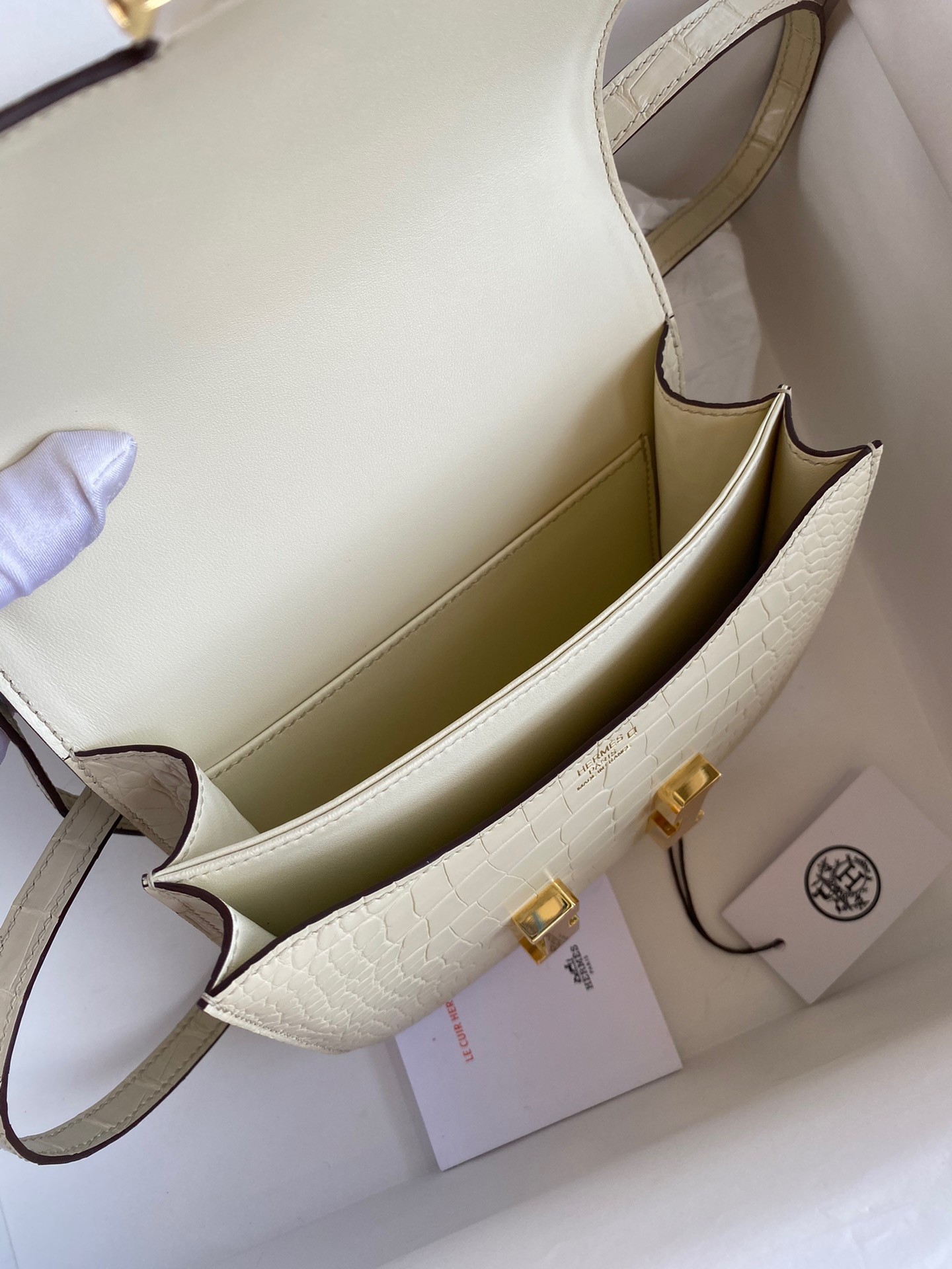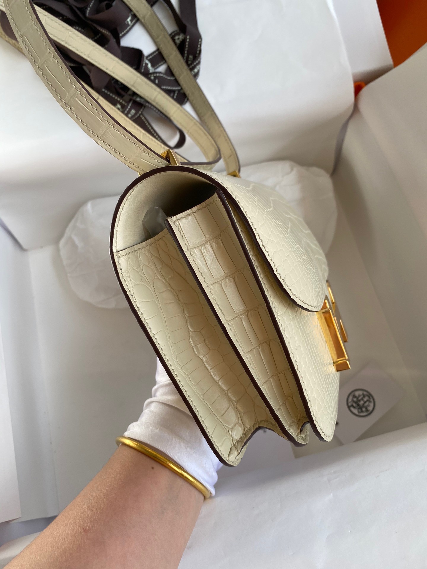 Hermes Constance 18 Handmade Bag In Vanille Matte Alligator Leather