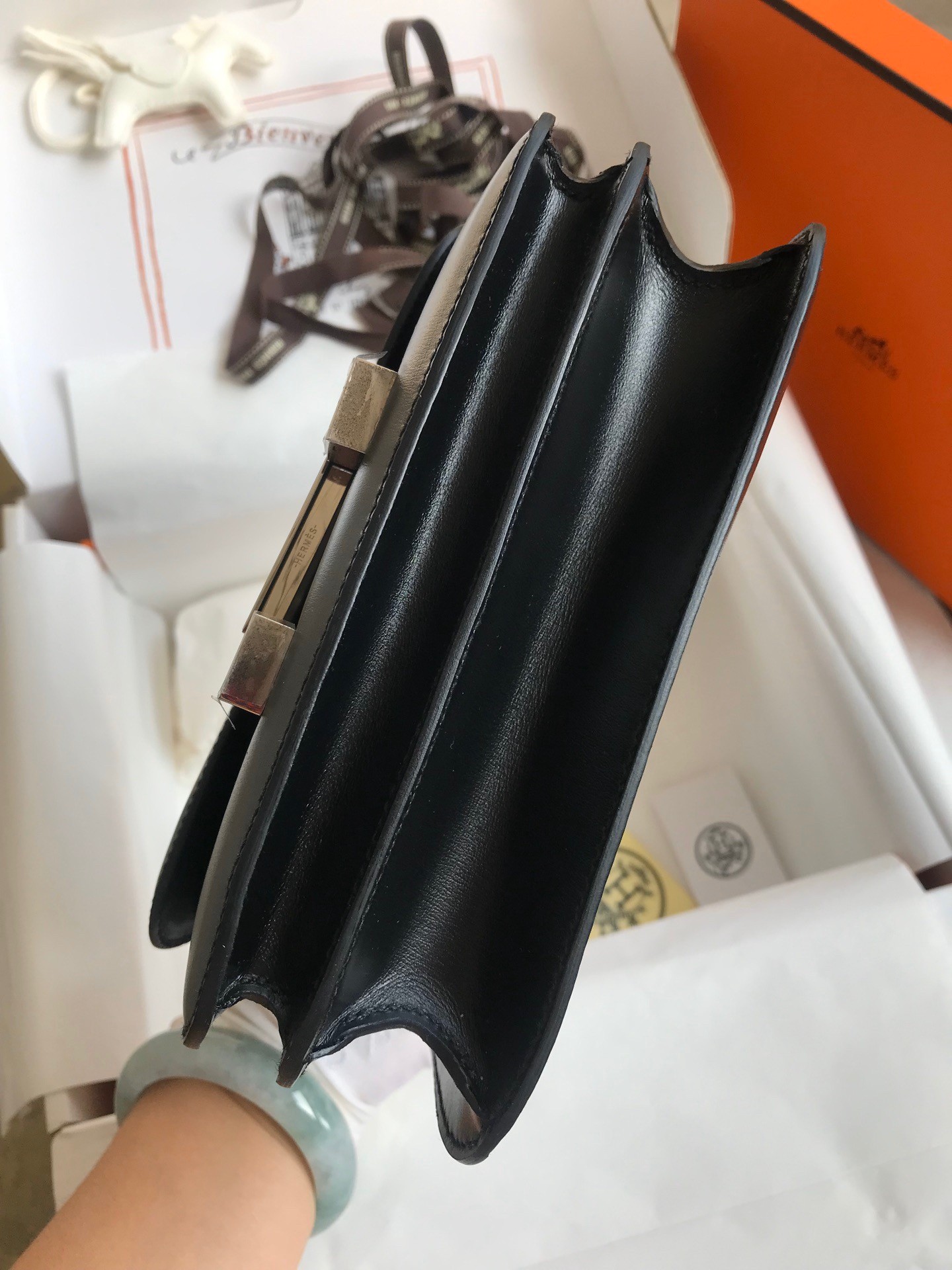 Introduced in 1969, the Hermès Constance quickly became one of the most highly sought-after of the brand’s luxury bags, behind only the Kelly bag and the Birkin. The Hermès Constance 18 is a stylish shoulder bag designed with versatility in mind. The Constance 18, also referred to as the Hermès Constance Mini. The squarish shape and large, prominent “H” closure across the front give this bag a youthful appeal, even when rendered in a sophisticated Box calf leather, the smooth finish offers a sophisticated appearance with scratches and blemishes blended into the material over time with light buffing.