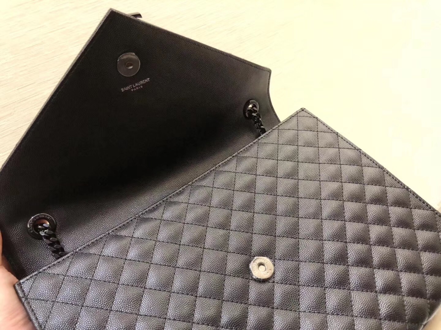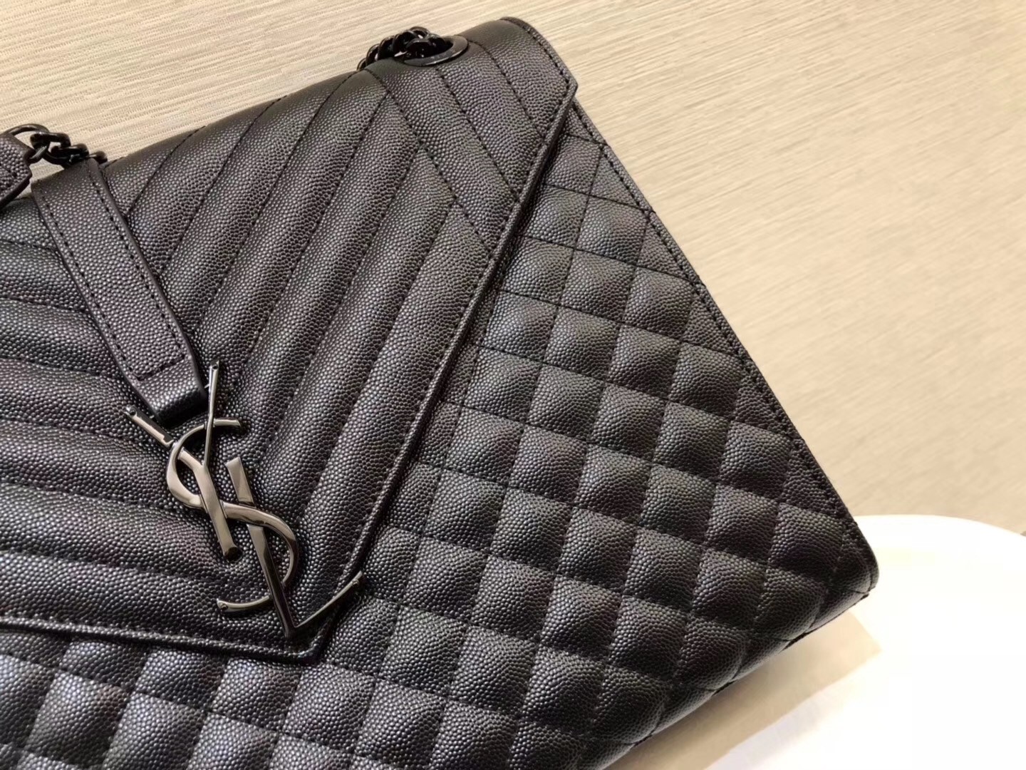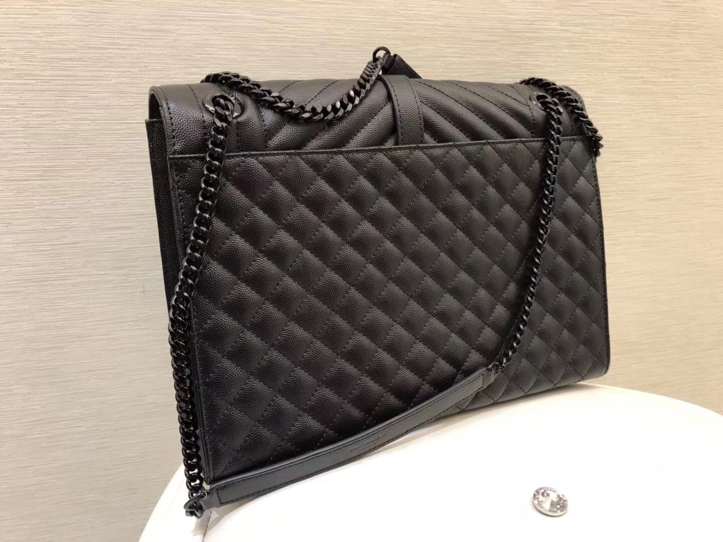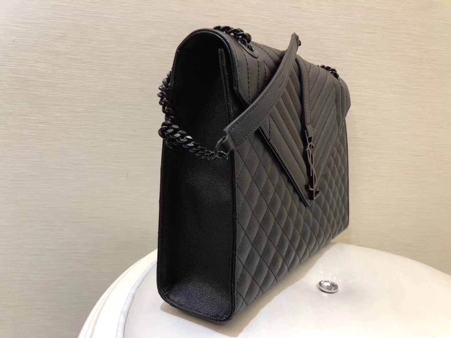 If there was ever a bag that truly embodied classic Parisian chic, it might just be this Saint Laurent Envelope shoulder bag. Switching out black hardware for a luxe matte version in a matching colour, the aura of the piece takes on a new form of luxe, romantic allure. The large size is perfect for all your daily needs, while the chain strap can be worn long or short as part of your street-style edit.