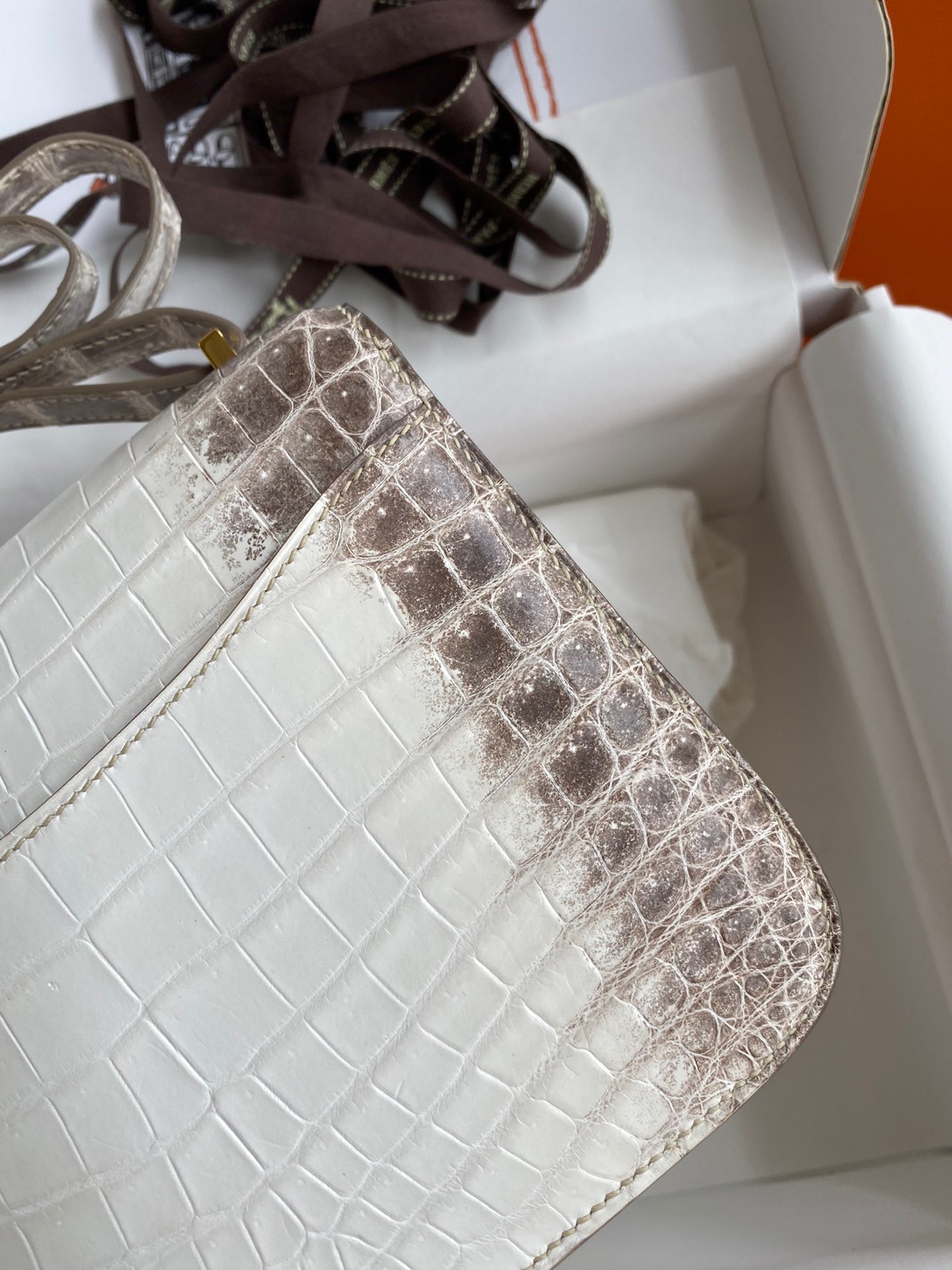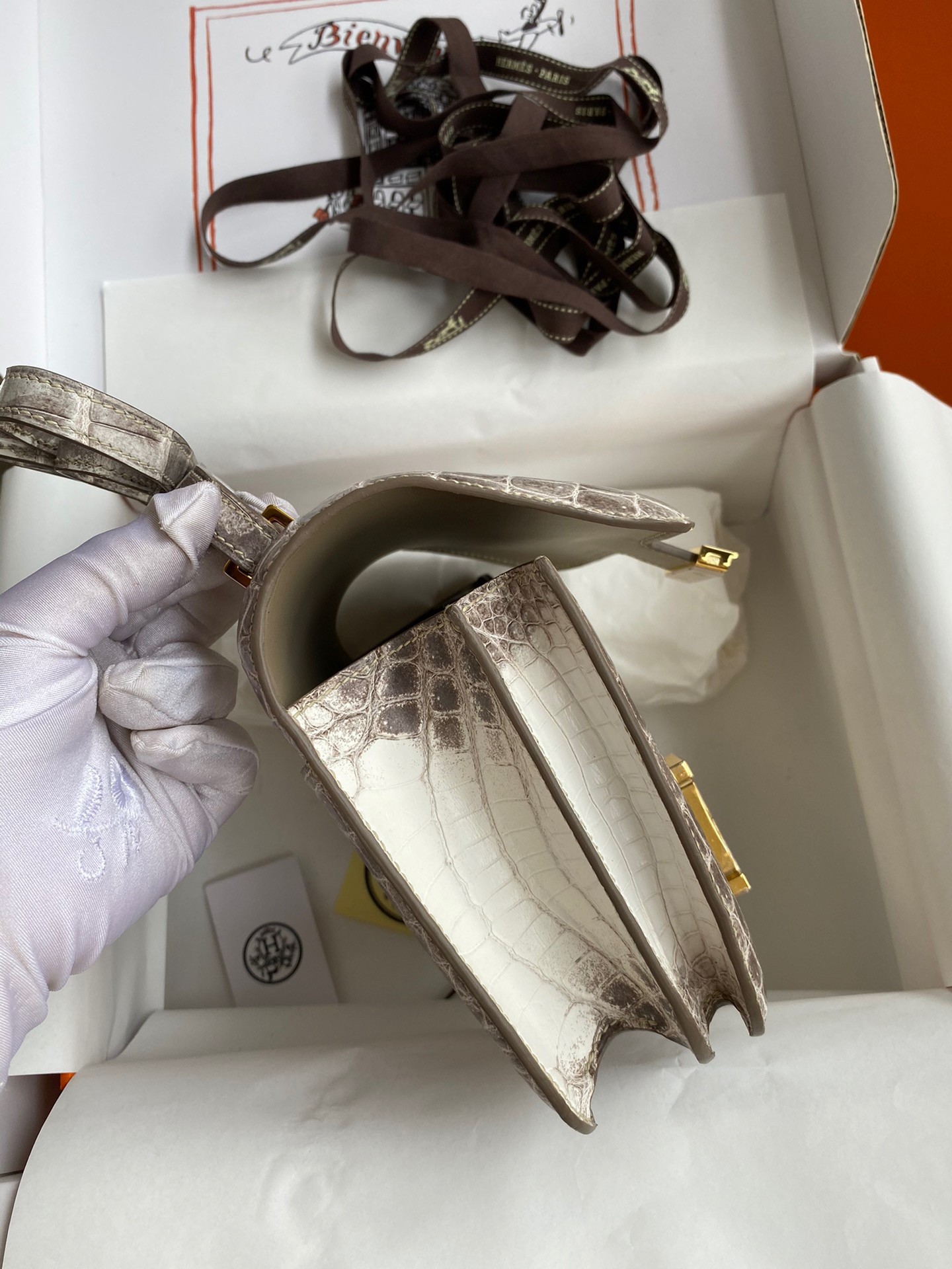 Introduced in 1969, the Hermès Constance quickly became one of the most highly sought-after of the brand’s luxury bags, behind only the Kelly bag and the Birkin. The Hermès Constance 18 is a stylish shoulder bag designed with versatility in mind. The Constance 18, also referred to as the Hermès Constance Mini. The squarish shape and large, prominent “H” closure across the front give this bag a youthful appeal, even when rendered in a sophisticated Crocodile Niloticus skin, coming directly from Africa’s Nile River in a region of Zimbabwe, this skin offers a matte finish and a more distinct pattern.