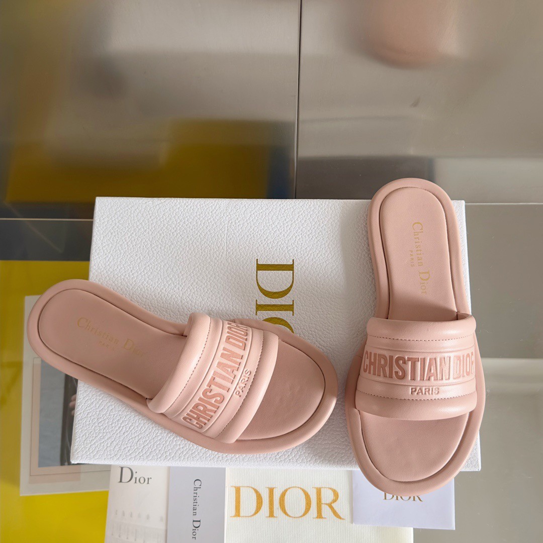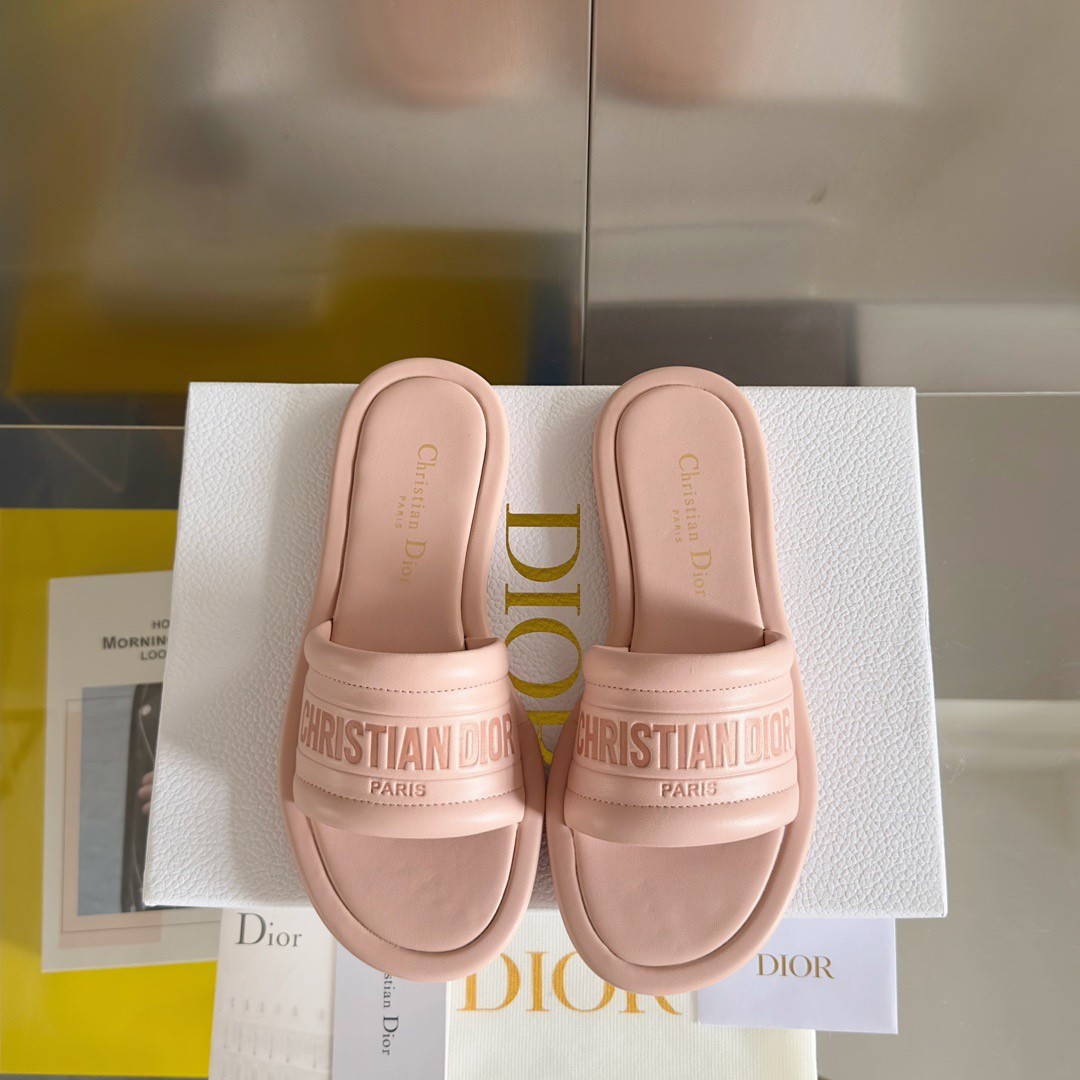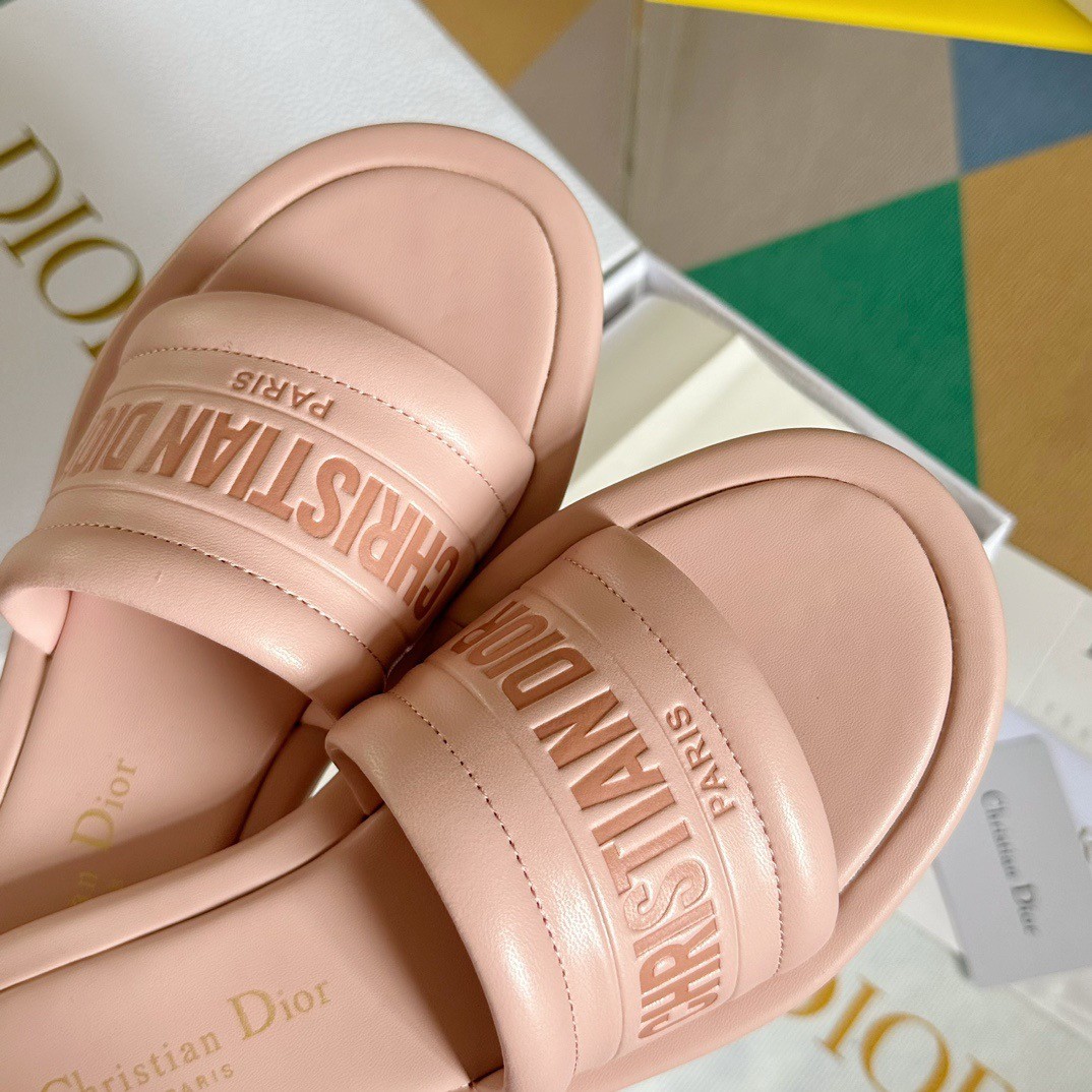 New for Fall 2023, the Every-D slide highlights a streamlined and modern silhouette. Crafted in pink padded lambskin, the upper reveals the tonal embossed Christian Dior Paris signature. Defined by comfort, the slide is fully padded and can complete any of the season's casual looks.