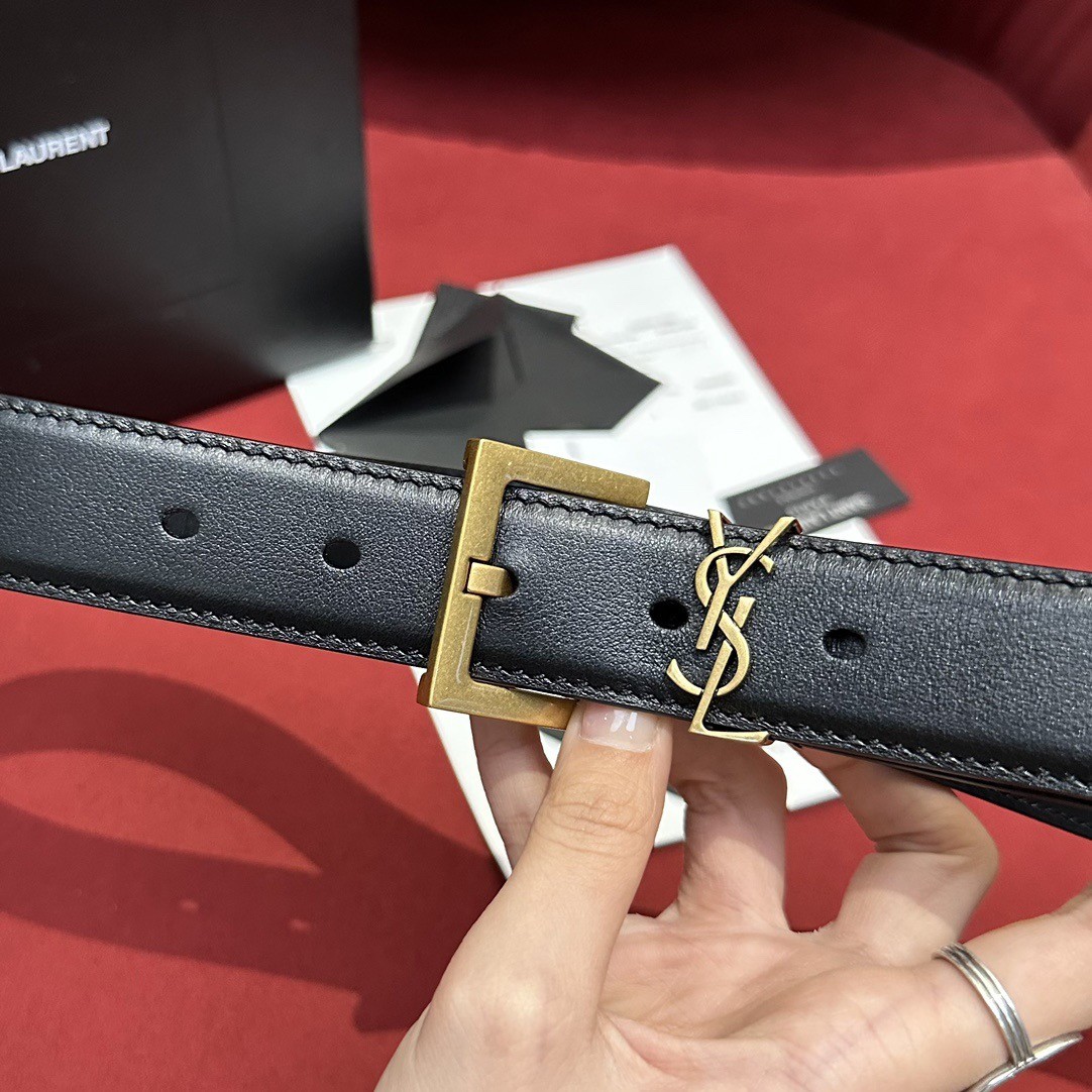 Saint Laurent Cassandre Square Buckle Belt 20MM In Black Leather