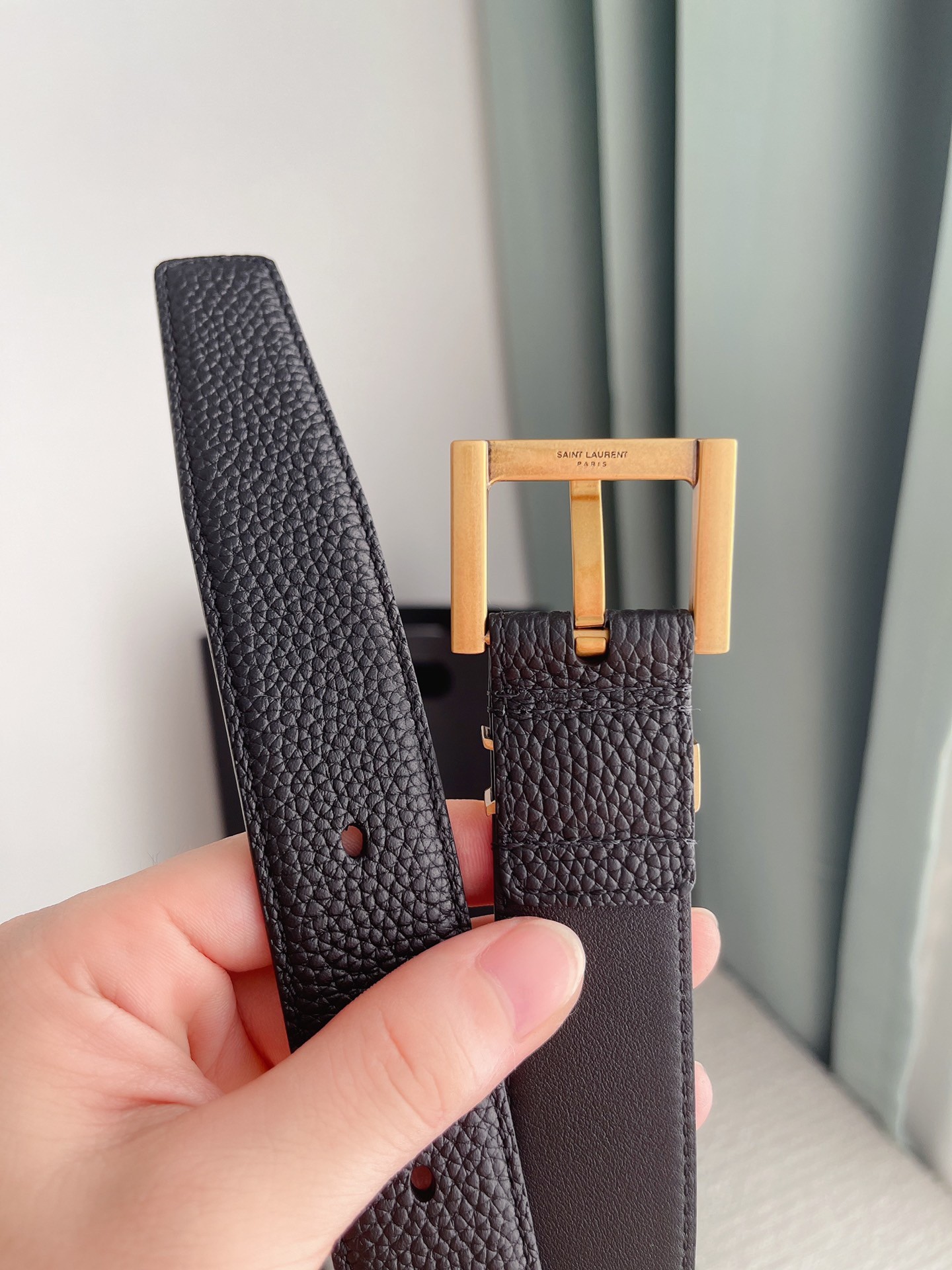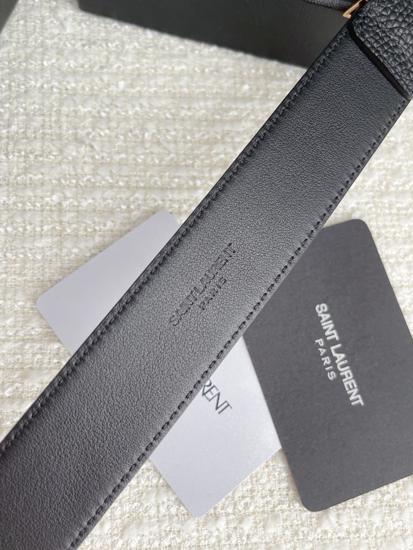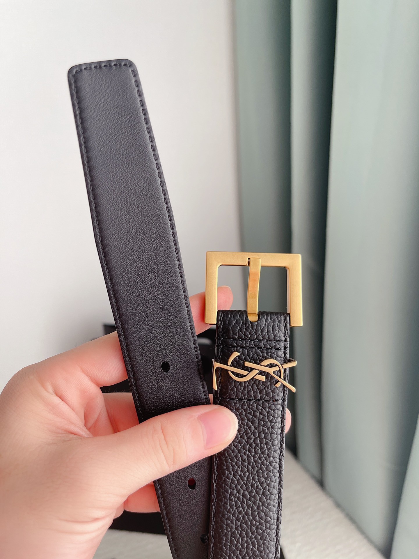 Saint Laurent's Cassandre belt is detailed with iconic 'YSL' hardware in the same gold-tone as the square buckle. It's made from 30 mm width grained leather in a versatile black hue that'll worn wrapped around blazers or slipped through the loops of dark jeans.