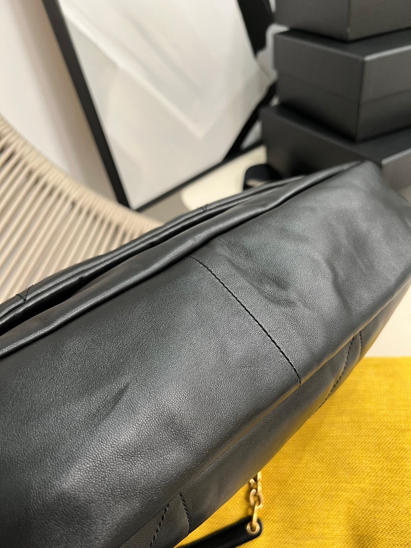 Named for a renowned Parisian antique shopping district, the Carré Rive Gauche pattern from Saint Laurent is made with a quilted overstitching technique that showcases the brand’s remarkable craftsmanship, backed by a rich heritage of construction and design. Featured here in a sleek and elegant shoulder bag, the stitching elevates the classic silhouette and colourway to a new level of luxury.