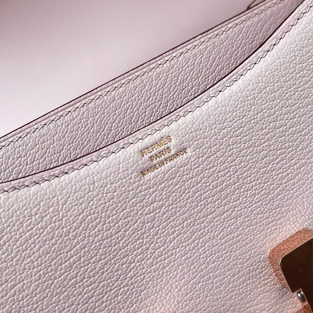 Introduced in 1969, the Hermès Constance quickly became one of the most highly sought-after of the brand’s luxury bags, behind only the Kelly bag and the Birkin. The Hermès Constance 18 is a stylish shoulder bag designed with versatility in mind. The Constance 18, also referred to as the Hermès Constance Mini. The squarish shape and large, prominent “H” closure across the front give this bag a youthful appeal, even when rendered in a sophisticated Chevre Mysore leather, this leather is also made from goathide and completely resistant