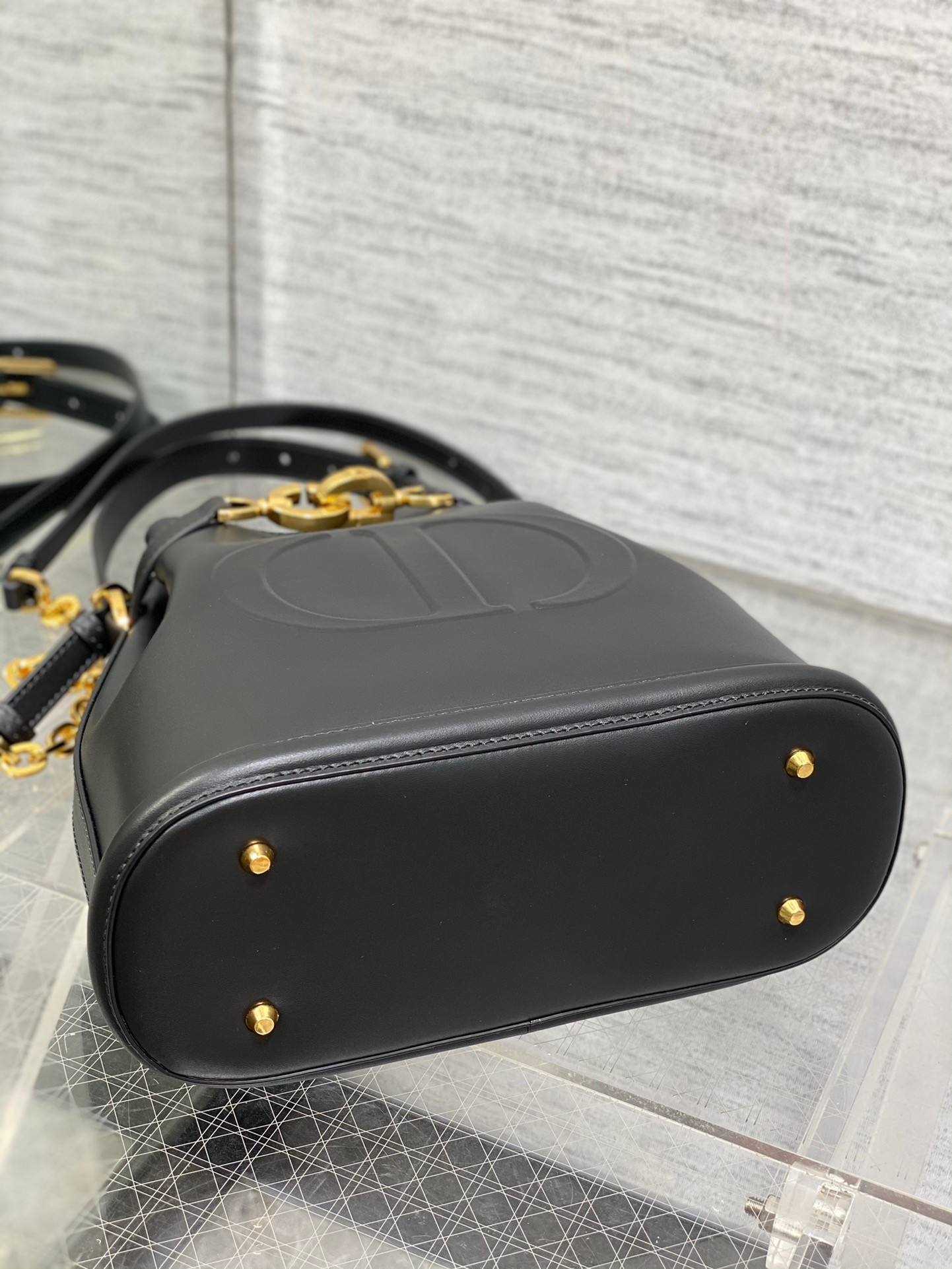 New for Fall 2023, the C'est Dior bag is an elegant and timeless creation. Crafted in saddle calfskin, it is distinguished by the embossed CD signature on the front in tribute to the House's savoir-faire. Thanks to its CD Lock closure with a twisting letter D, the bucket bag can keep the essentials secure. A top handle and adjustable, removable chain strap with a leather insert allow the medium bag to be comfortably carried by hand or worn over the shoulder.