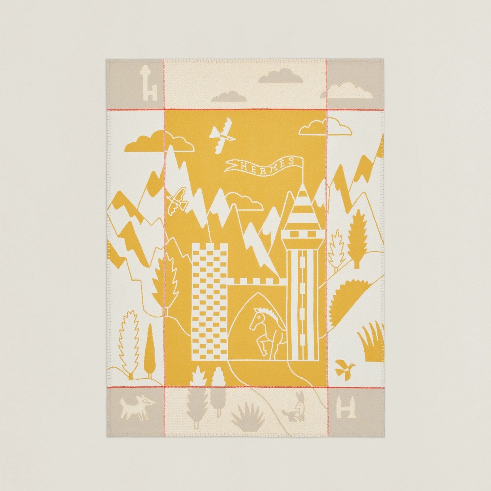 The Epopee design by Jan Bajtlik takes us right into the heart of an enchanted world in which horses, unicorns and dragons reign supreme. Mythical and real creatures evolve through a fantastical landscape composed of snow-capped mountains, splendid castles, magical forests and rivers. Jan Bajtlik tells an enchanting, playful story filled with graphic and colorful details in a range of textile accessories and a porcelain pieces that are guaranteed to captivate all ages.