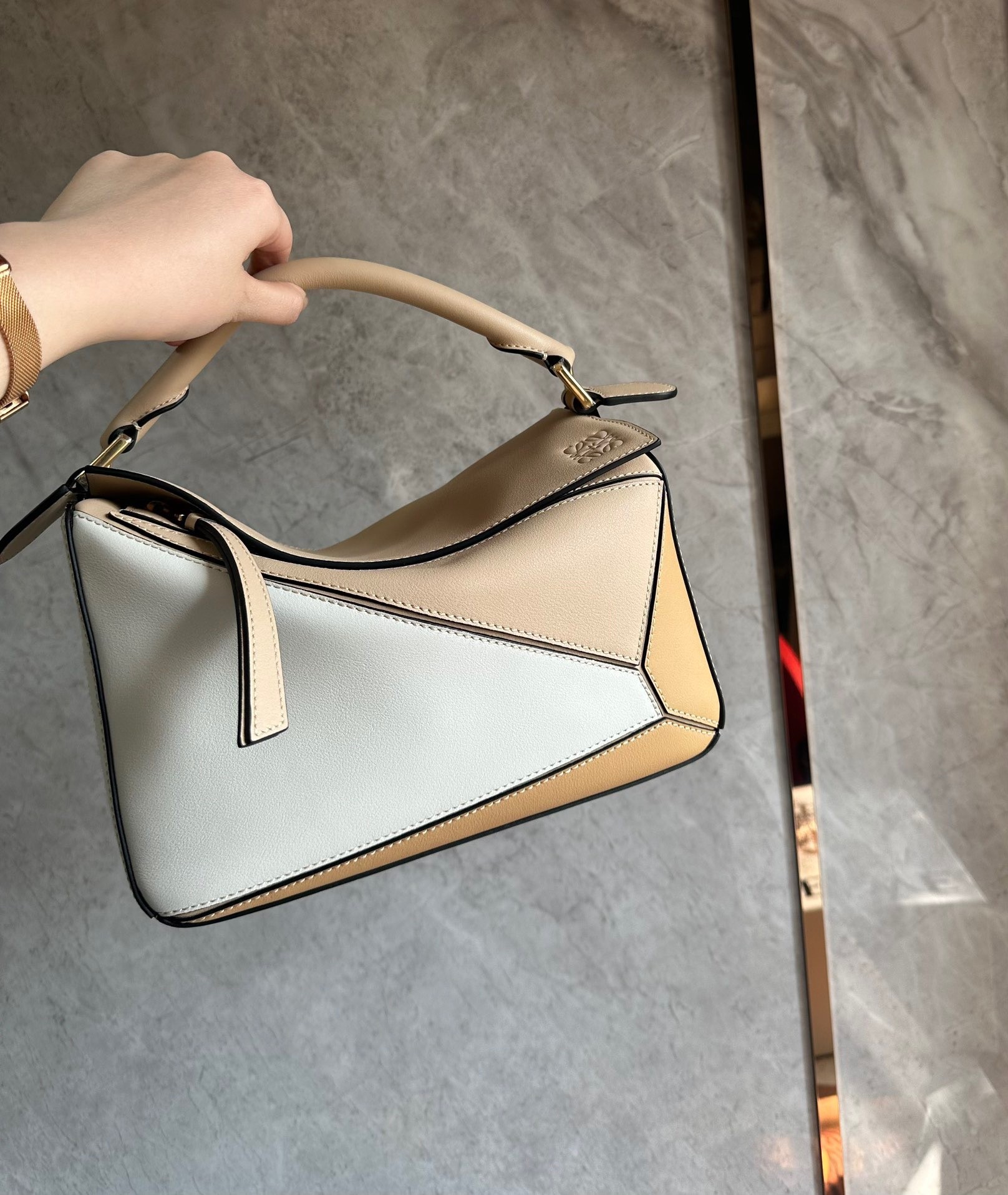 Under Creative Director Jonathan Anderson, Spanish house Loewe has carved out a highly distinctive identity; an amalgam of cutting-edge cool and centuries-old leather craft. The Puzzle bag is one of the iconic results, this color-block small version is working equally well as a shoulder bag or slouchy clutch, the origami-like folds allow it fold completely flat. Ideal for packing away when travelling, although obviously letting go of this beauty would be strictly be a last resort.