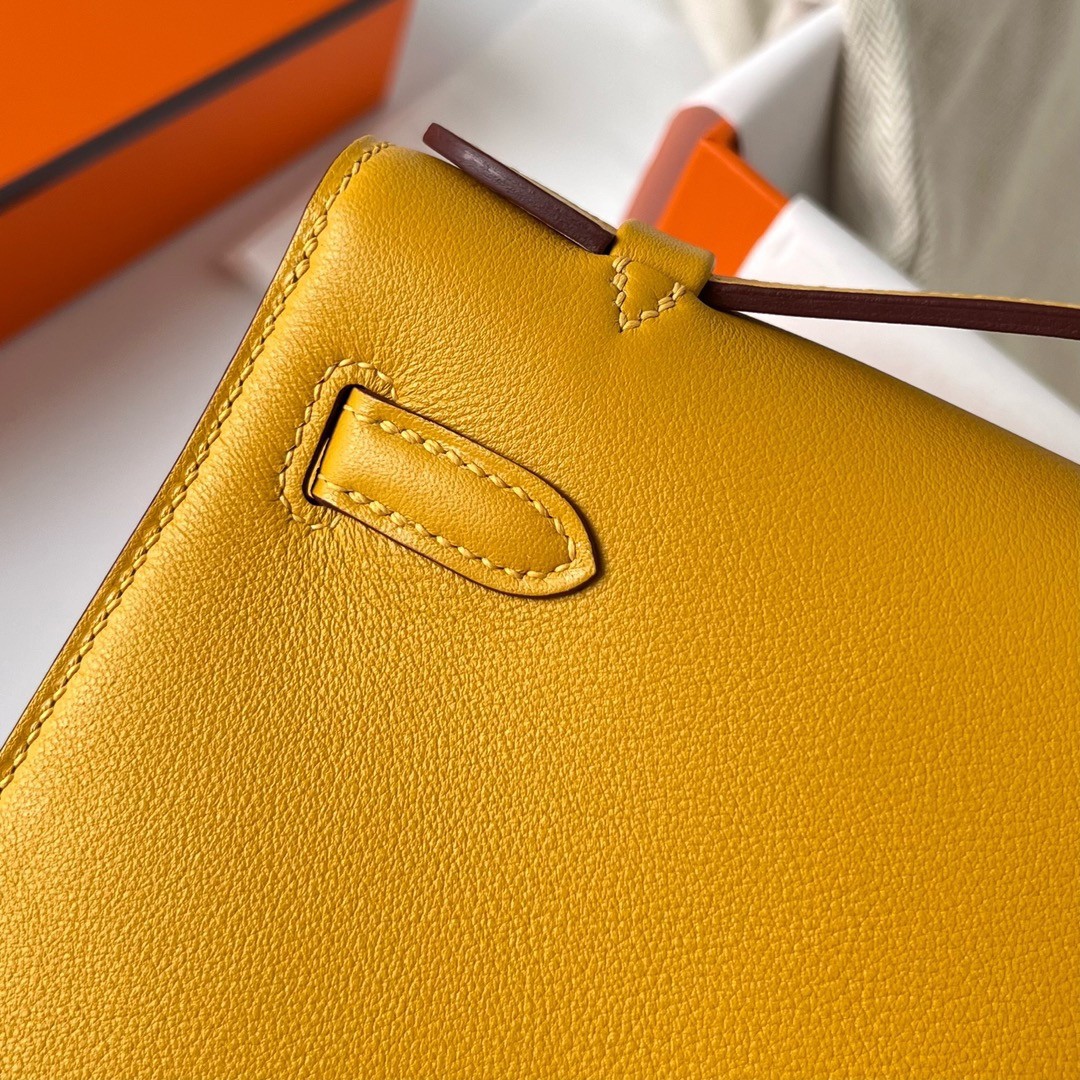 The Kelly Pochette was Jean-Paul Gaultier's clutch interpretation of the classic Kelly bag. Introduced on the fall runway of his first collection for the House in 2004, the Kelly Pochette was an instant hit. Crafted from Swift calfskin, this extremely supple, sophisticated leather is named after Jonathan Swift, the author of Gulliver's Travels. The pochette is a true clutch with neither feet nor shoulder strap, It opens to a matte interior that is more than sufficient to hold your i-phone, makeup, cards, cash, and sunglasses and so on.