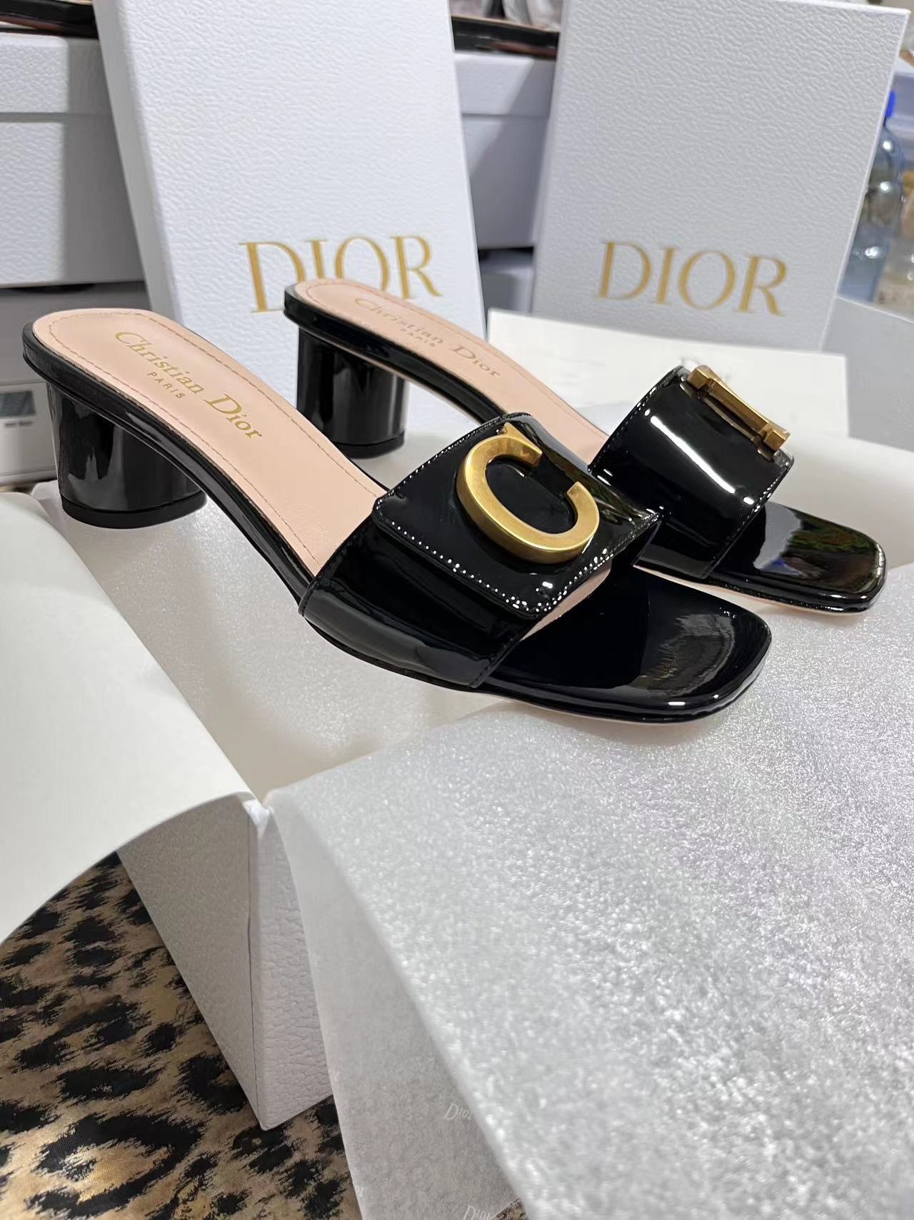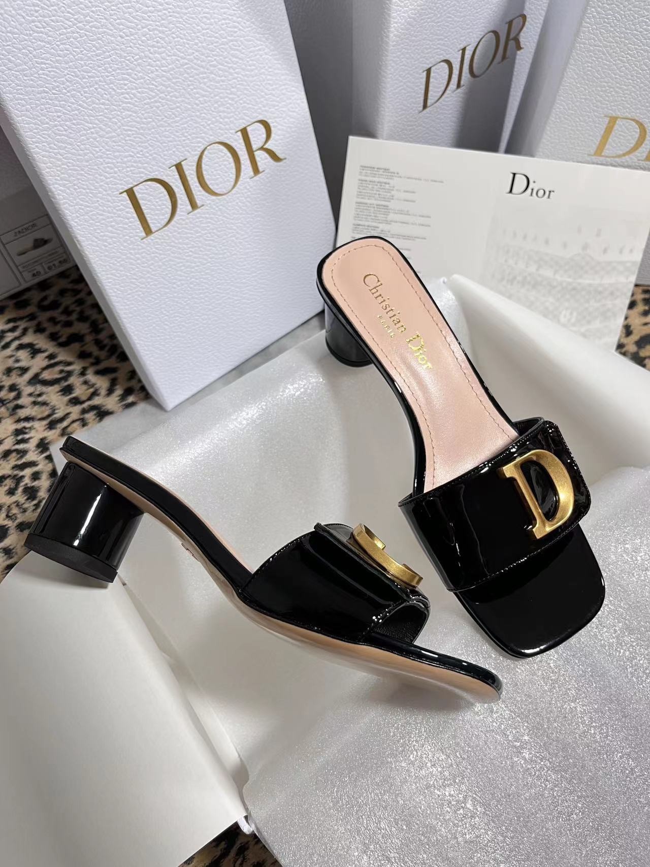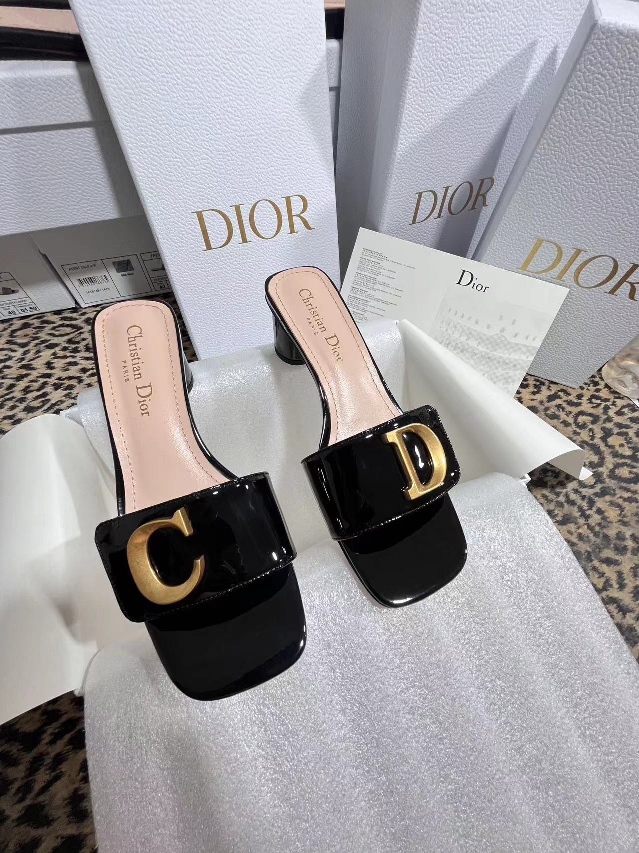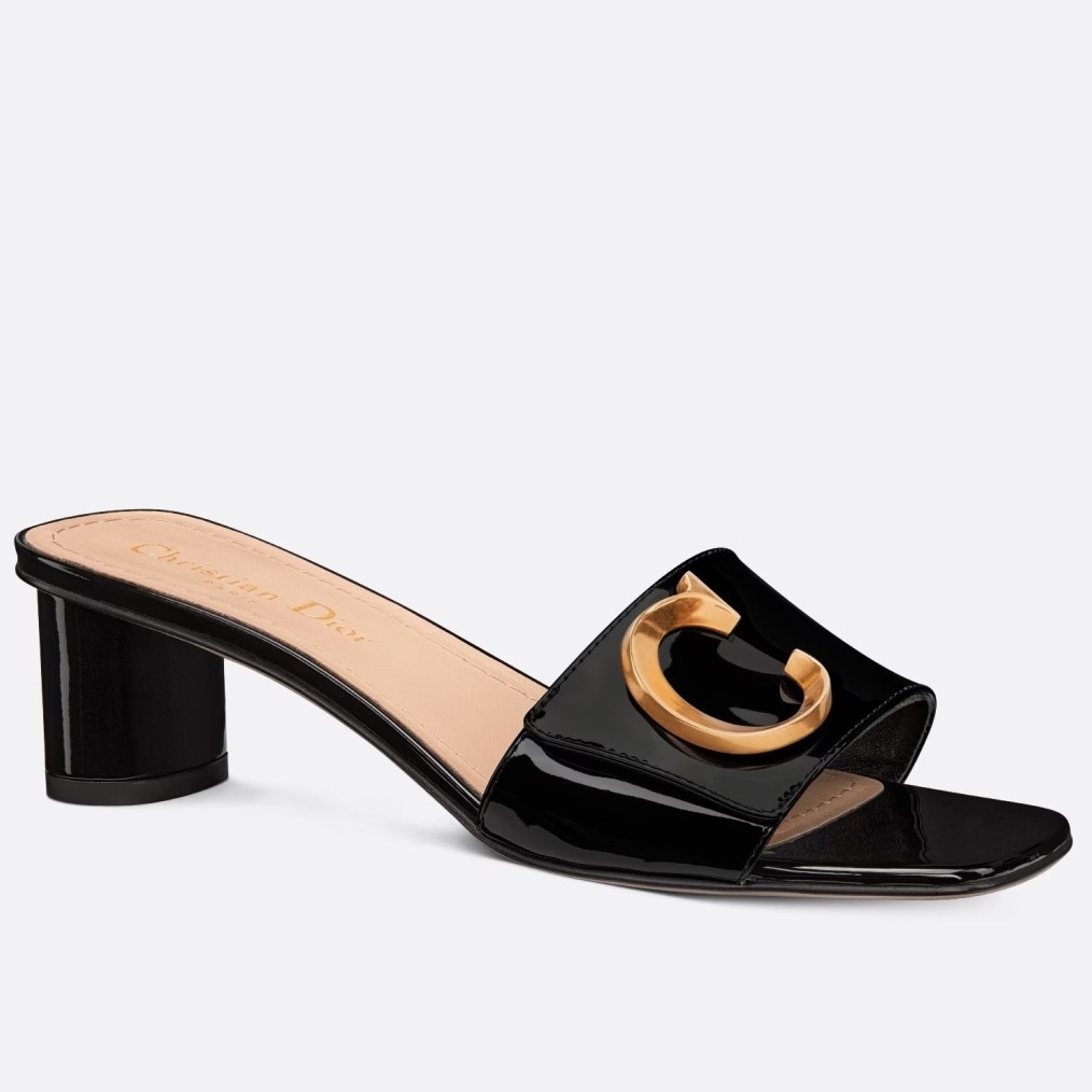 New for Fall 2023, the C'est Dior slide is an elegant and modern creation. Crafted in patent calfskin, the streamlined style is enhanced by gold-finish metal C and D letters, inspired by House archives. Completed by a square toe with a modern look, as well as a 5 cm cylindrical heel, the graceful slide will lend a refined touch to any outfit.