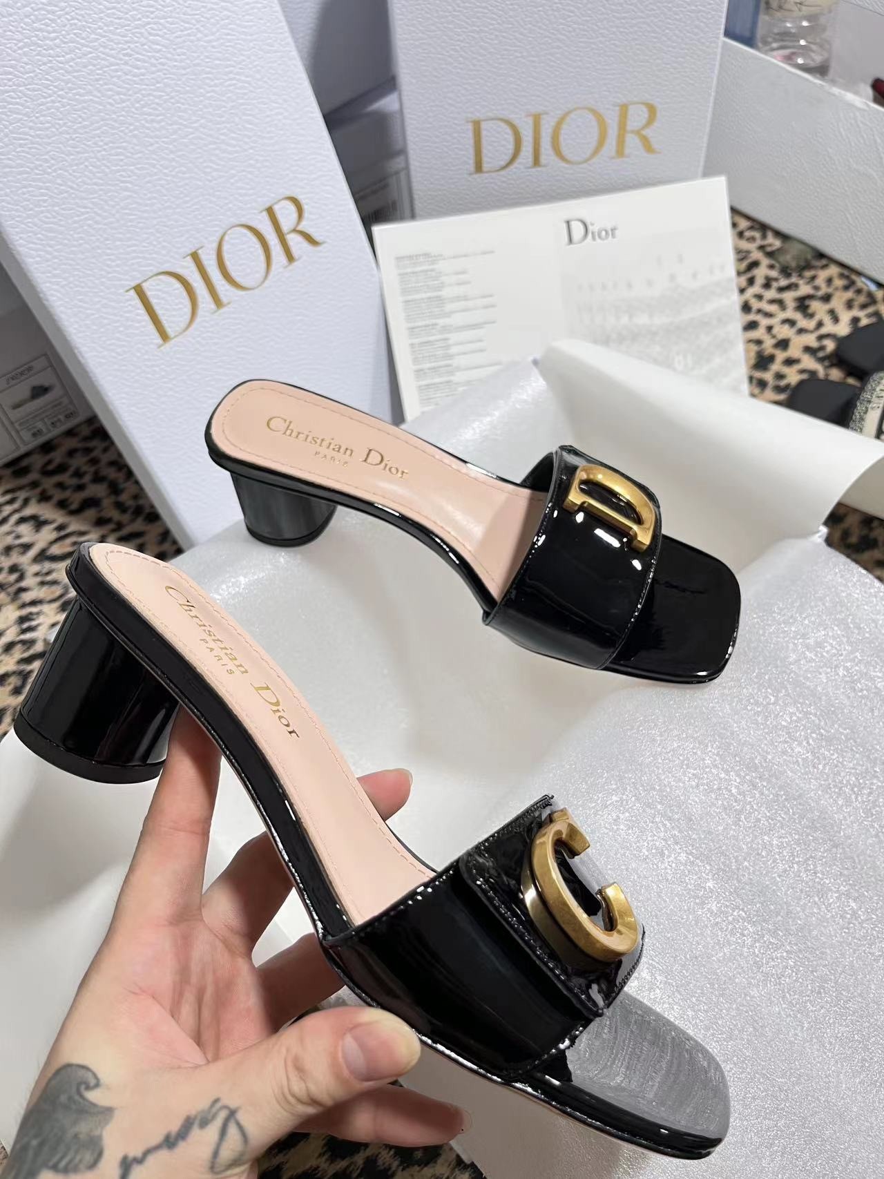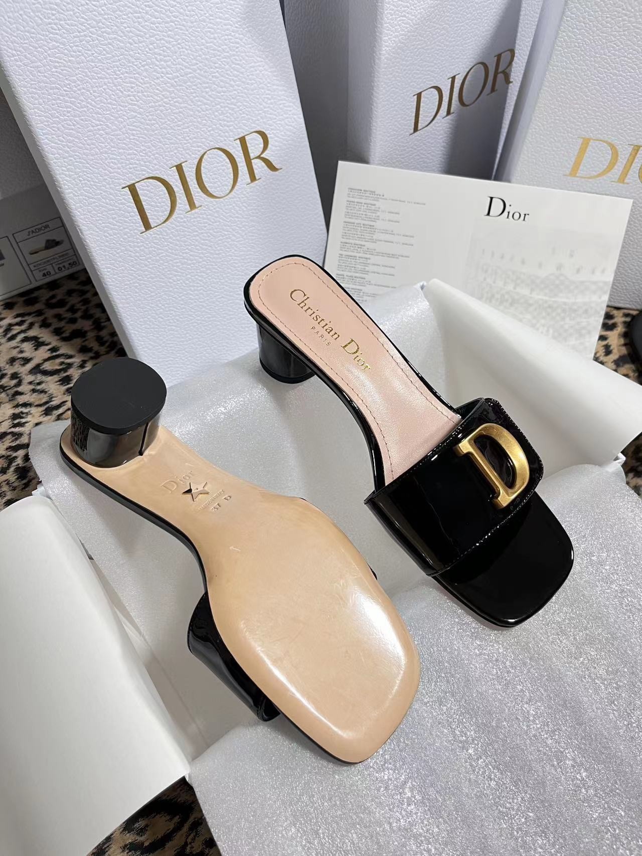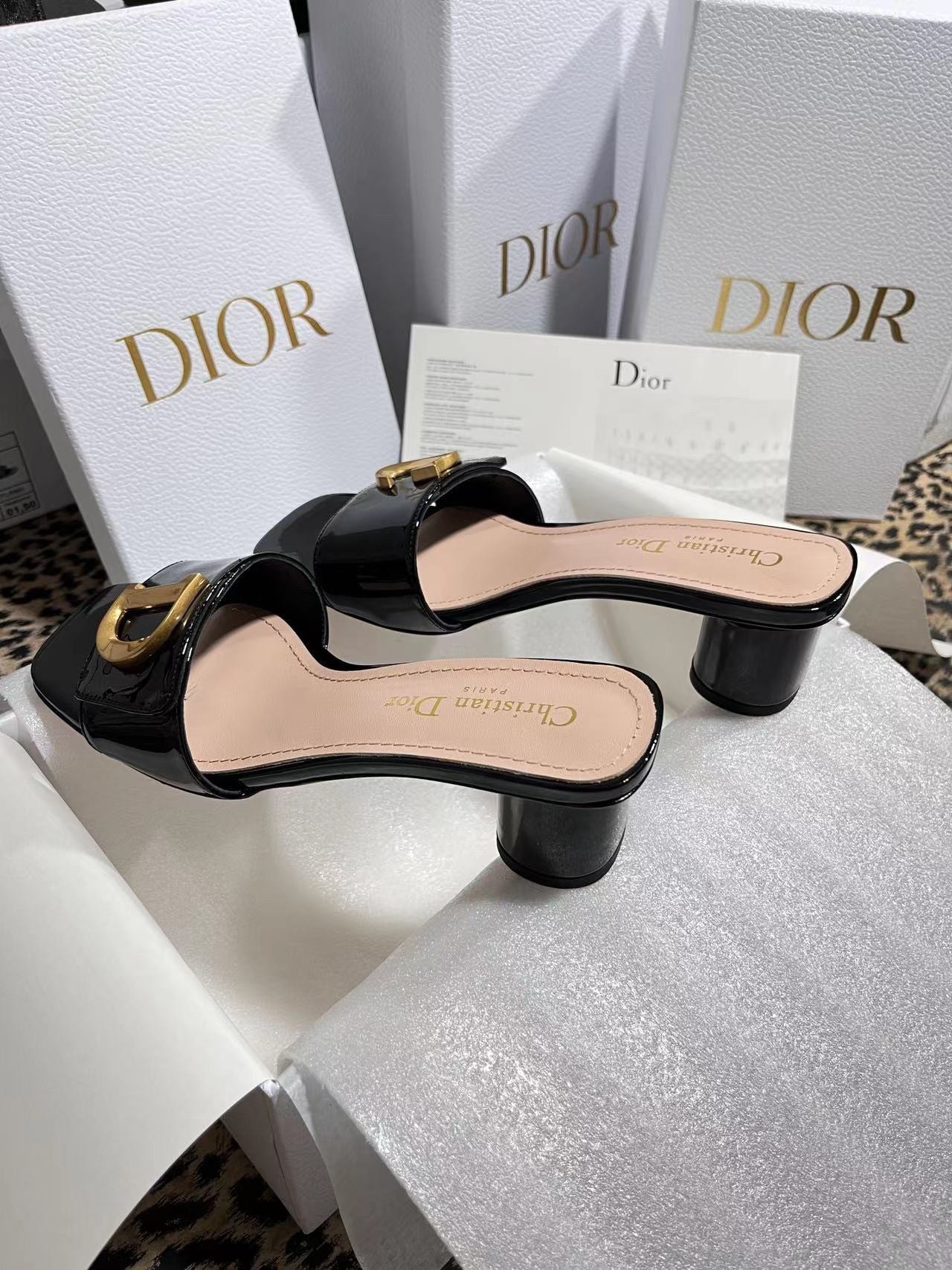 New for Fall 2023, the C'est Dior slide is an elegant and modern creation. Crafted in patent calfskin, the streamlined style is enhanced by gold-finish metal C and D letters, inspired by House archives. Completed by a square toe with a modern look, as well as a 5 cm cylindrical heel, the graceful slide will lend a refined touch to any outfit.