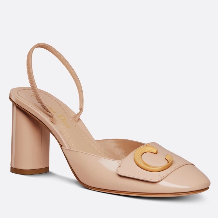 New for Fall 2023, the C'est Dior slingback pump is an elegant and modern creation. Crafted in patent calfskin, the streamlined style is enhanced by gold-finish metal C and D letters, inspired by House archives. Completed by an 8 cm cylindrical heel, the pump will lend a refined touch to any outfit.