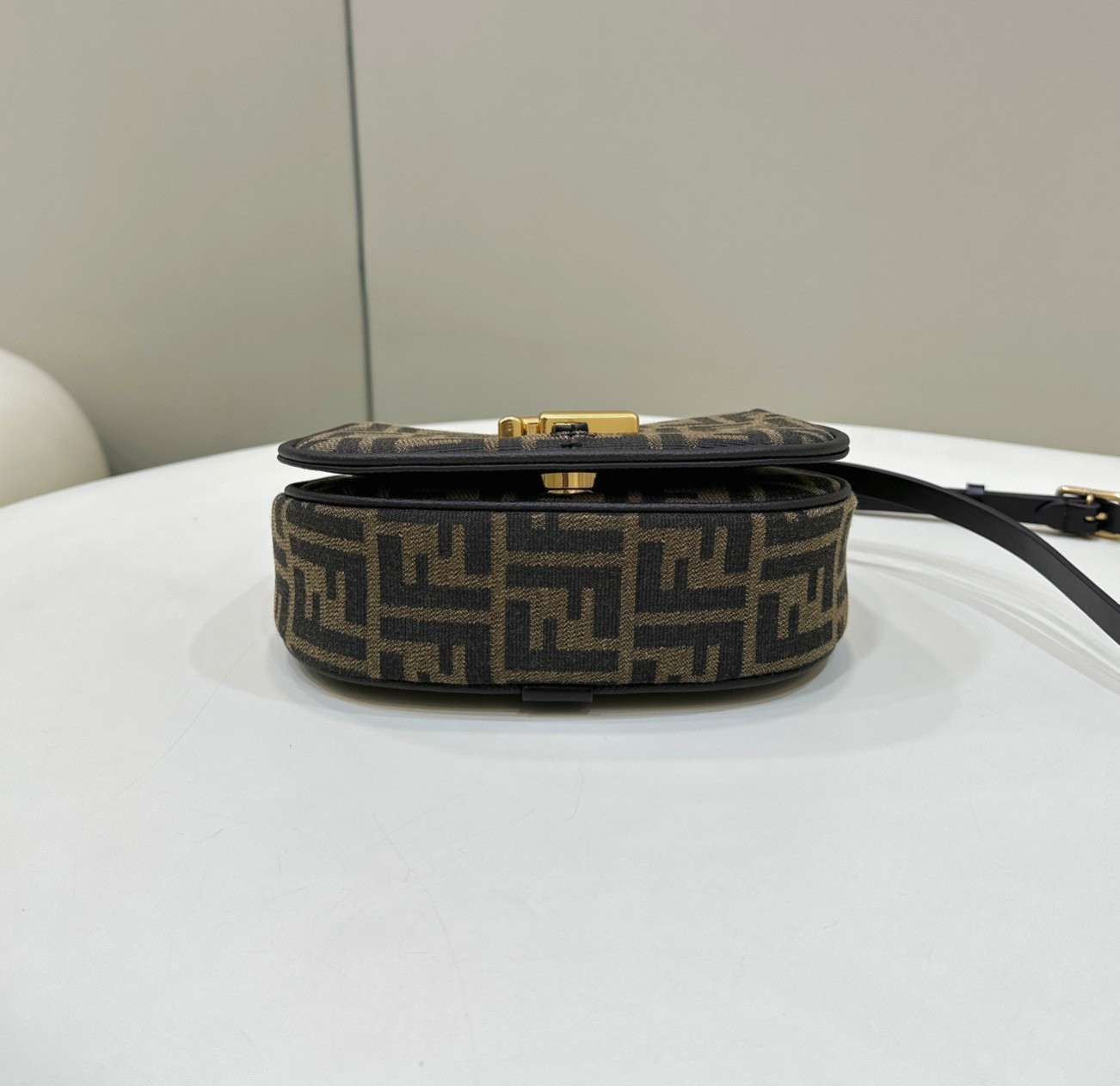 The Fendi C’mon is a satchel-style shoulder bag with feminine, curved lines. It oozes the same elegant simplicity felt throughout the collection and is described as a versatile ode to pure sophistication. This small style is beautifully crafted with FF jacquard fabric. Timeless with a powerful identity, the FENDI C’mon smoothly transitions from day to night thanks to its sleek aesthetic and versatile appeal.