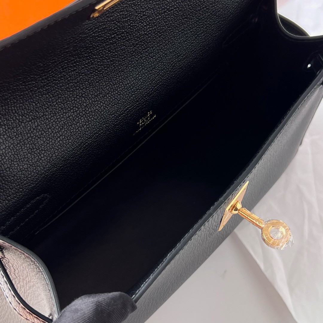 The Kelly Pochette was Jean-Paul Gaultier's clutch interpretation of the classic Kelly bag. Introduced on the fall runway of his first collection for the House in 2004, the Kelly Pochette was an instant hit. This handbag is made from Chevre Mysore leather. The Kelly pochette is a true clutch with neither feet nor shoulder strap. It is remarkably roomy, holding more than the Kelly cut or the mini Kelly.