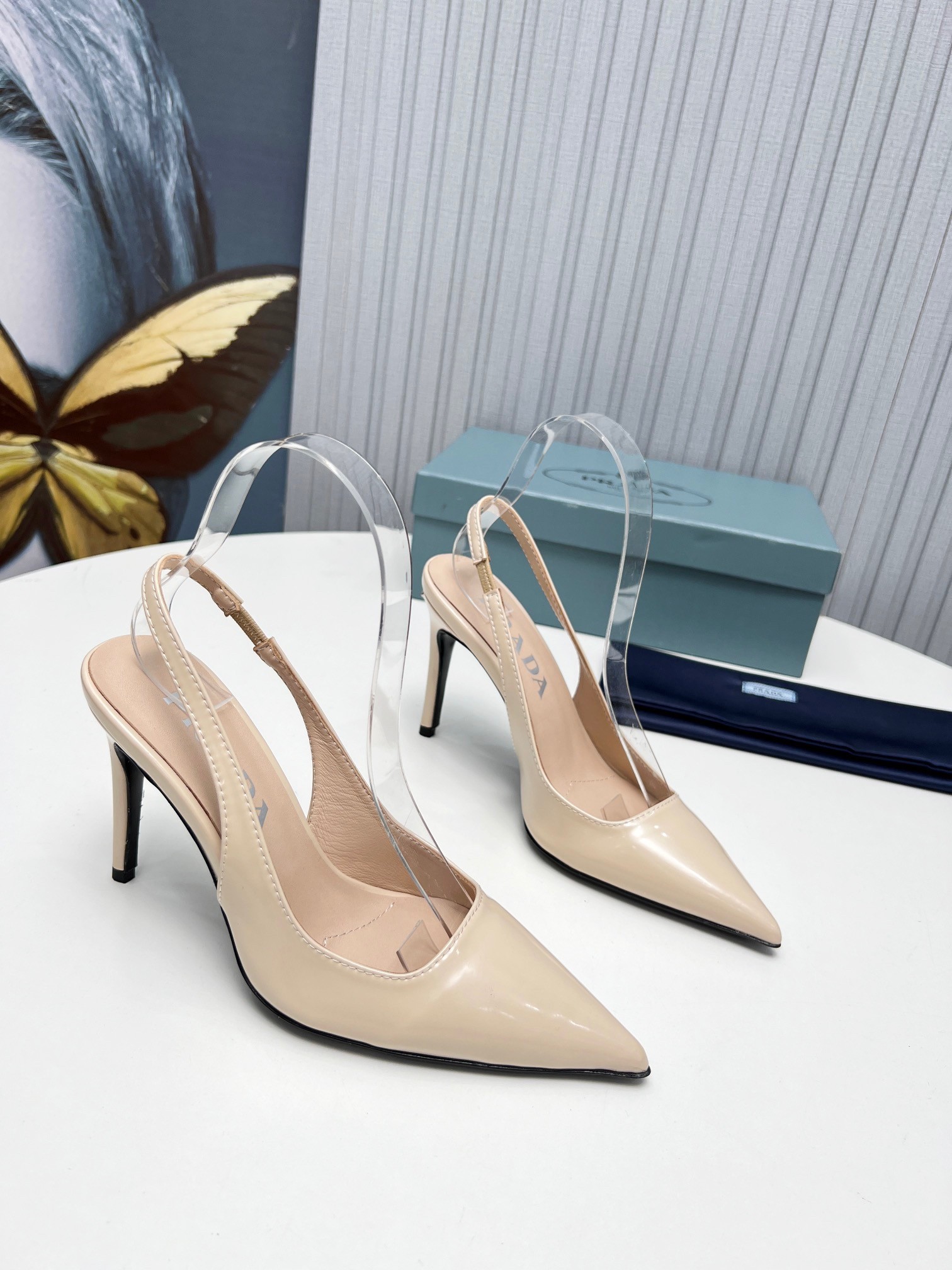 Prada Slingbacks Pumps 95mm In Powder Pink Patent Leather
