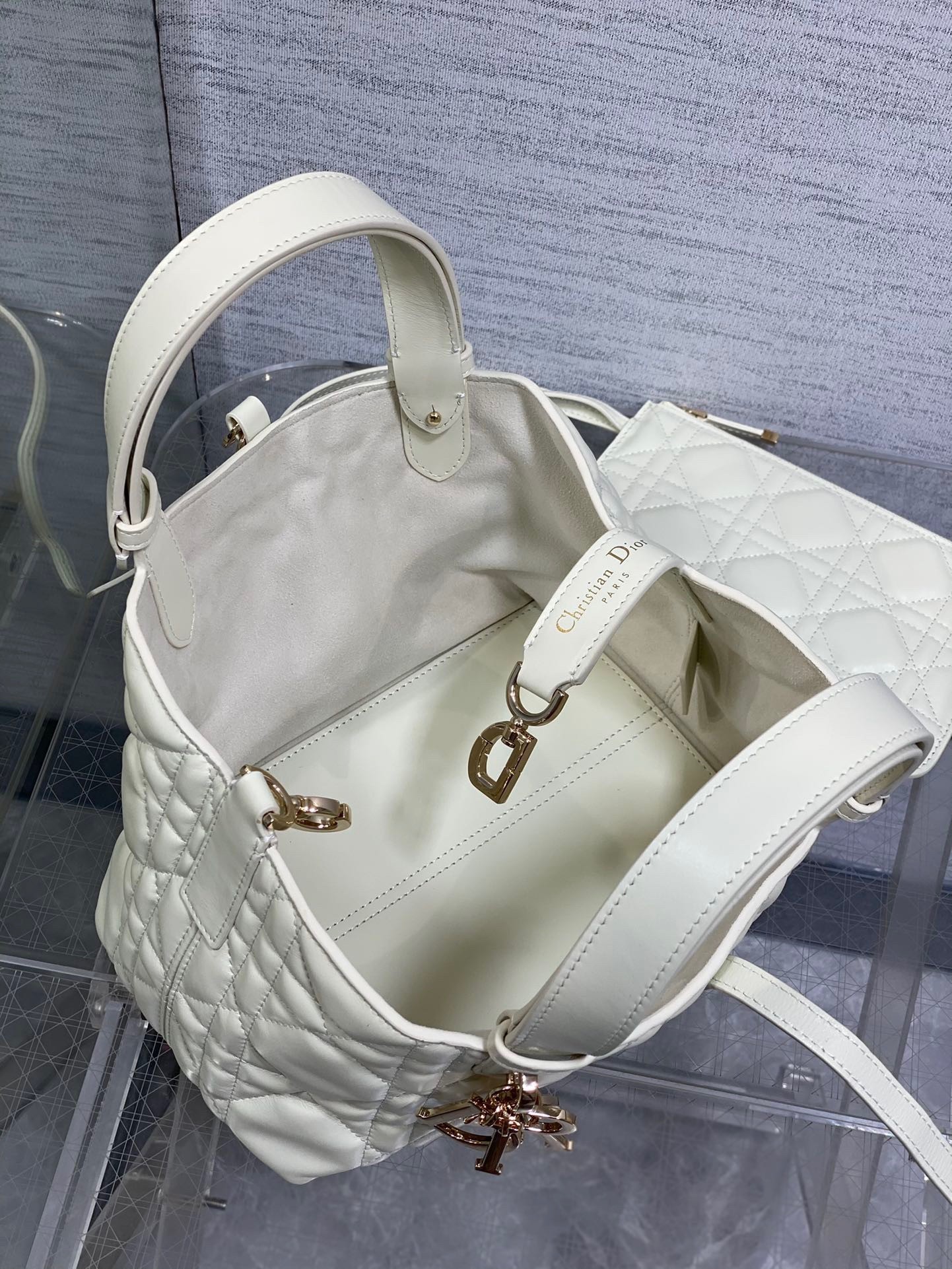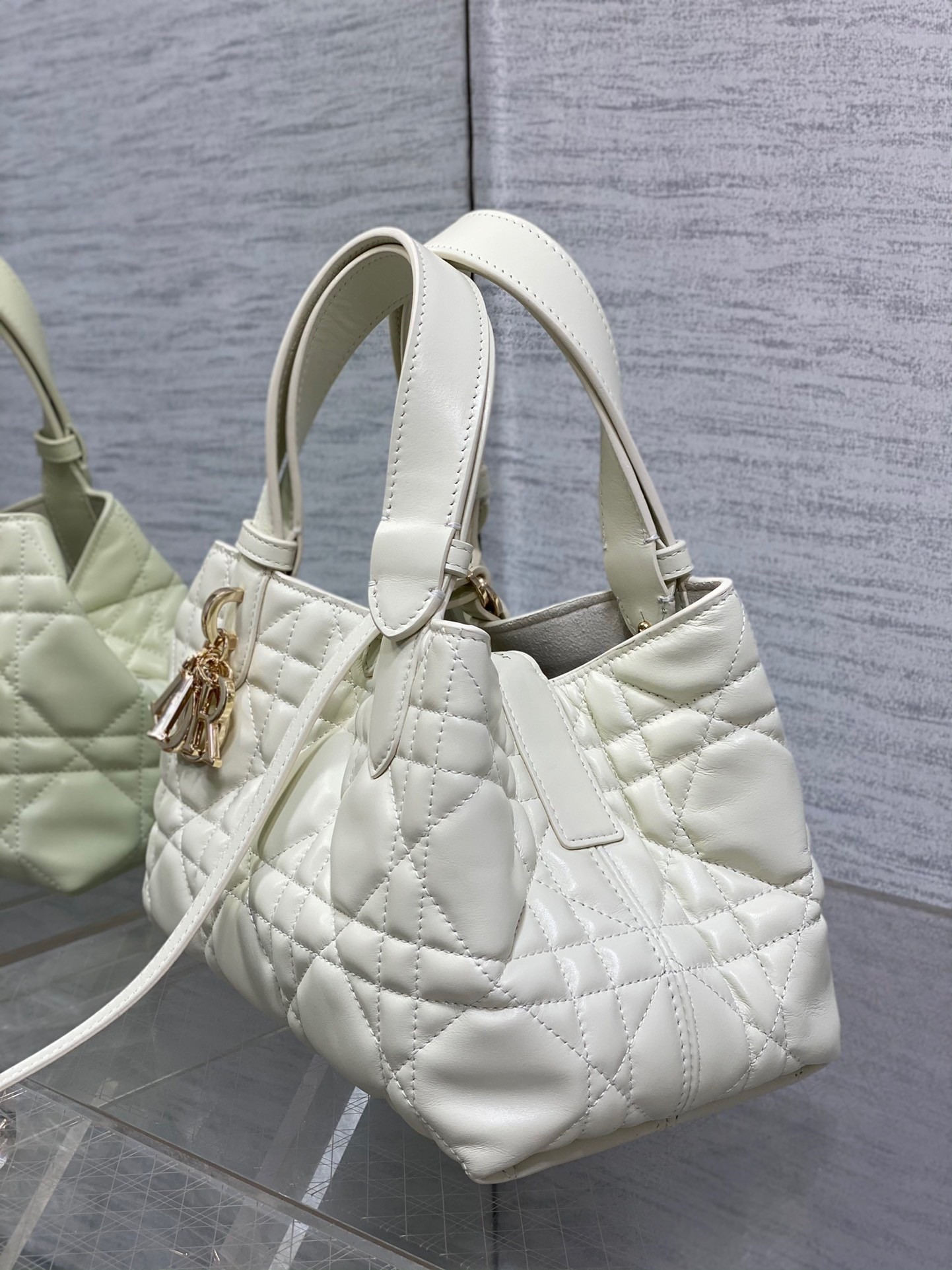 Unveiled at the Spring-Summer 2023 fashion show, the Dior Toujours bag is distinguished by a casual and practical design. Crafted in calfskin with Macrocannage topstitching, it showcases a spacious interior compartment with a matching pouch to organize essentials. Its leather strap closure keeps items secure while the D of the CD Lock closure twists to adjust the sides and enhance the bag's silhouette. Equipped with leather handles that can be adjusted using the small notches, the small bag can be effortlessly carried by hand.